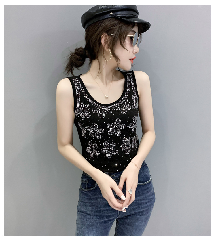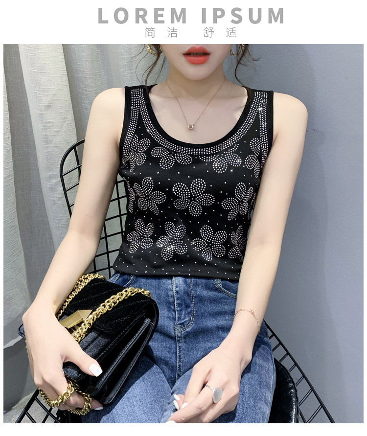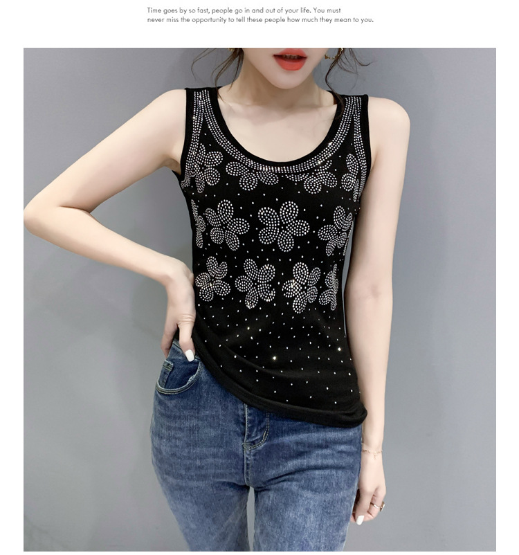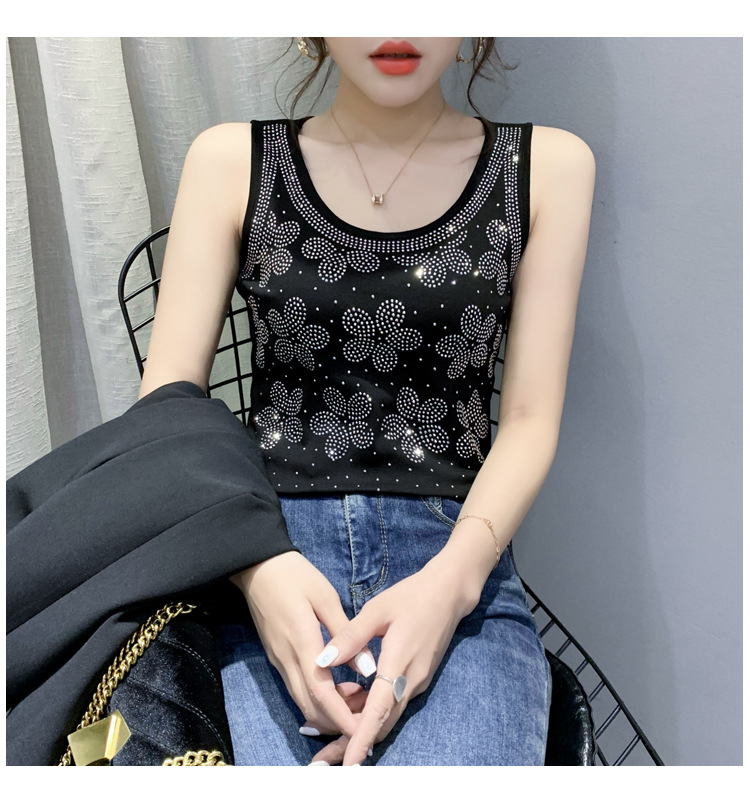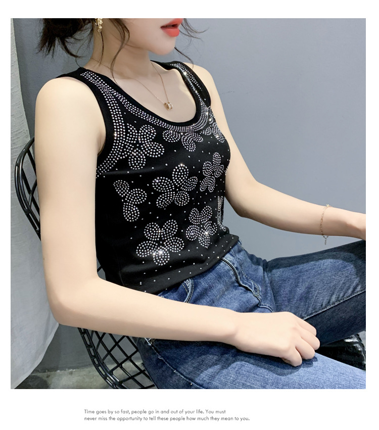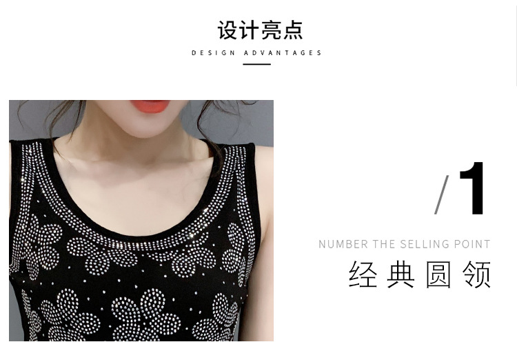 2025夏季新款圆领T恤女无袖背心洋气烫钻百搭上衣潮