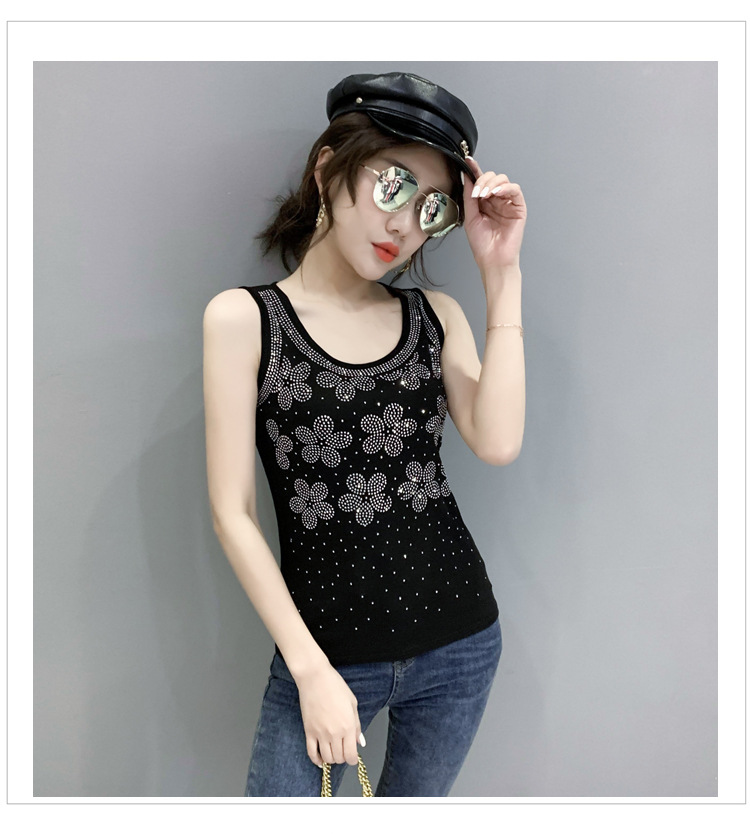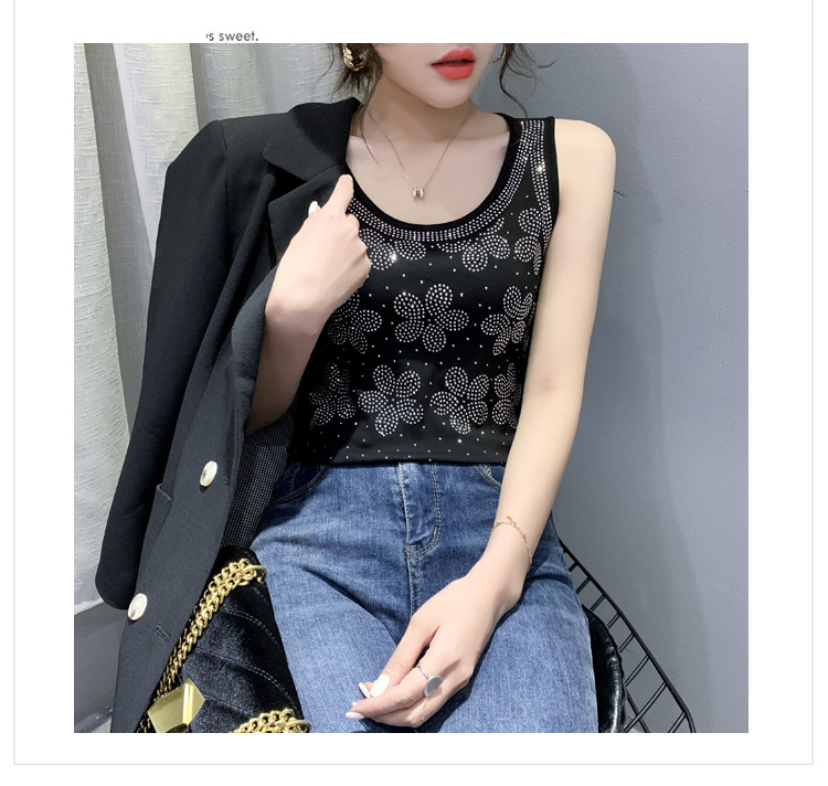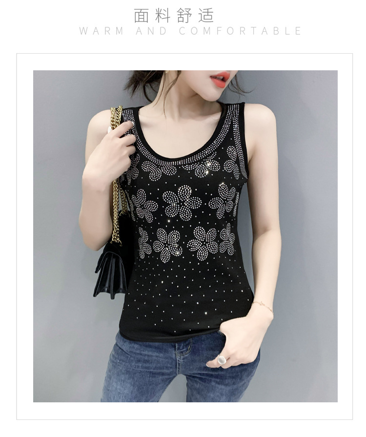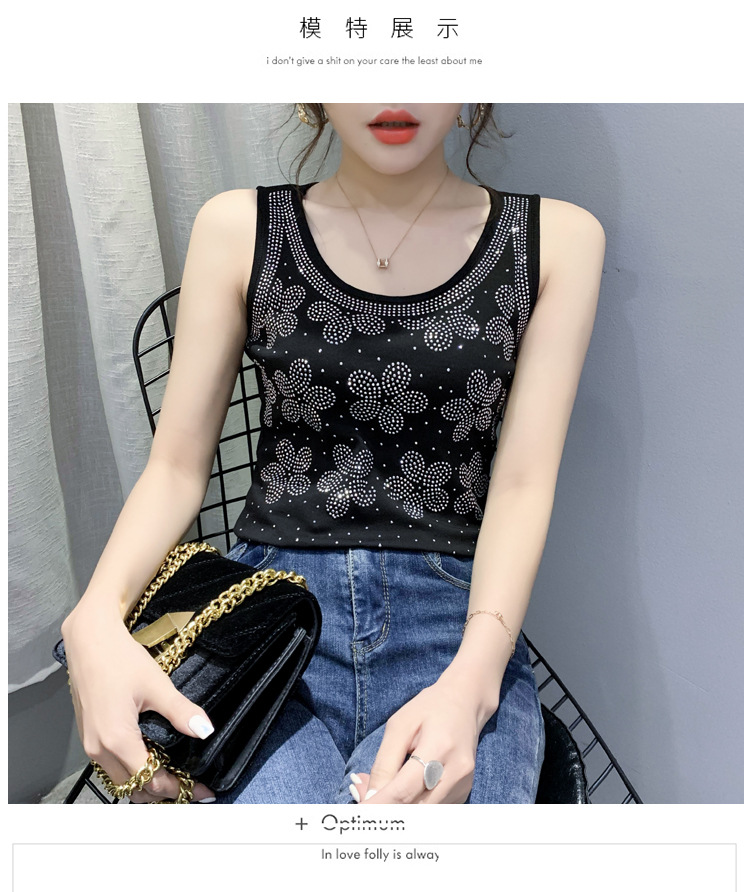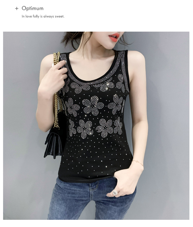 2025夏季新款圆领T恤女无袖背心洋气烫钻百搭上衣潮