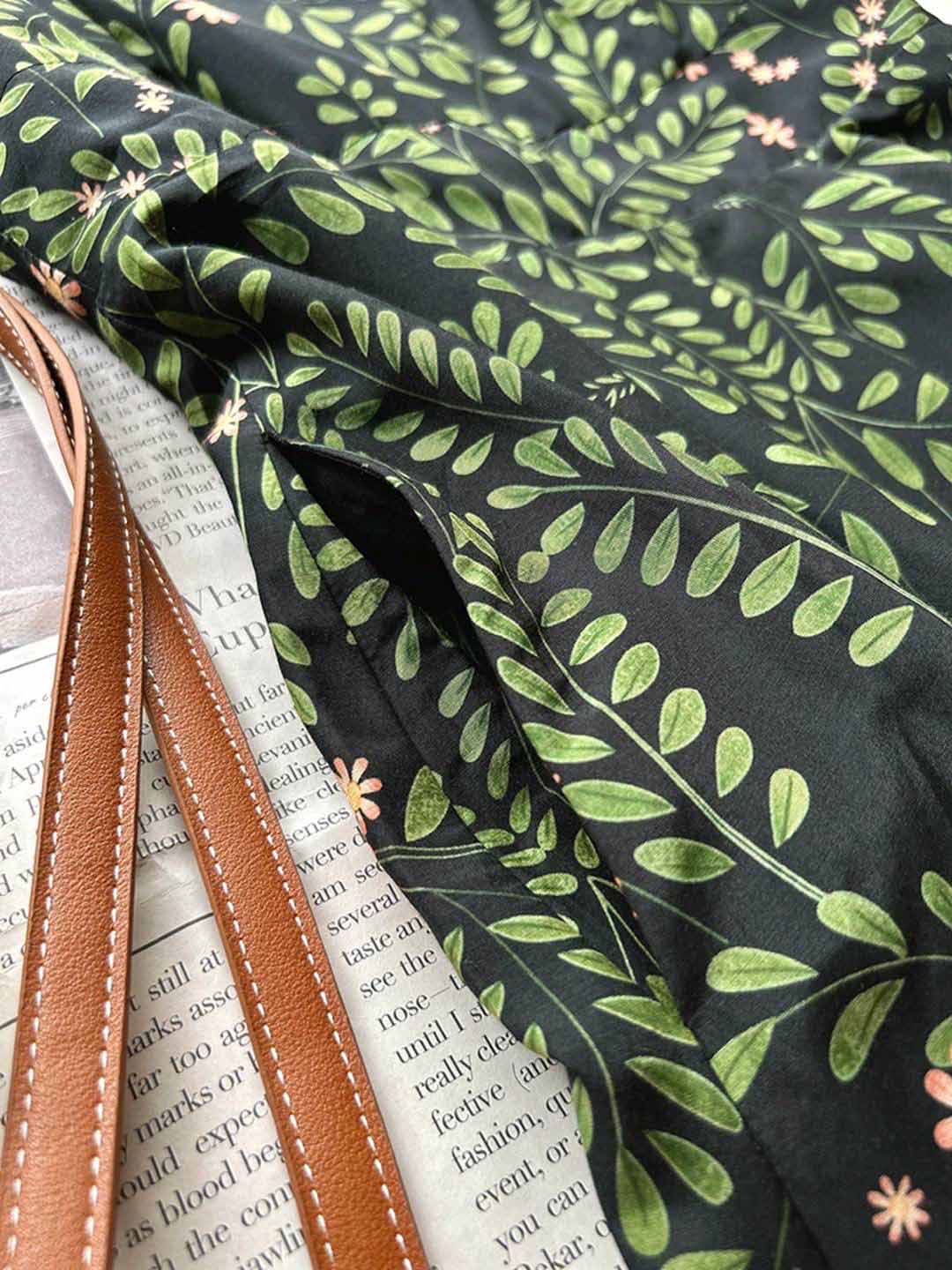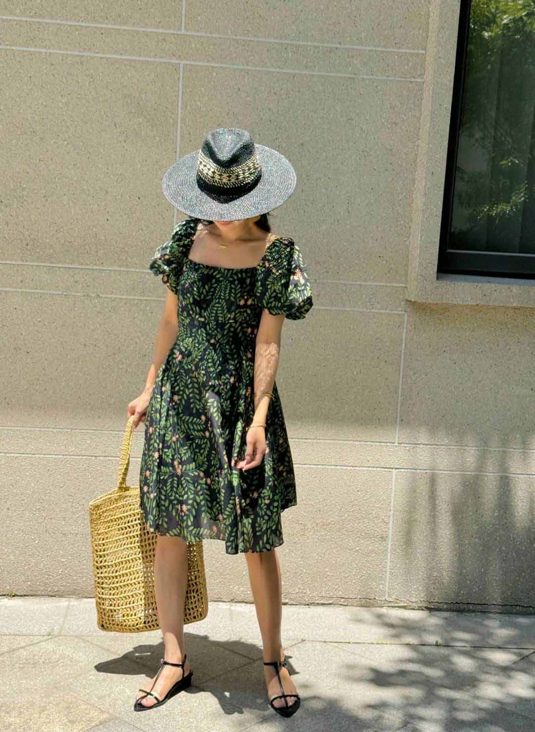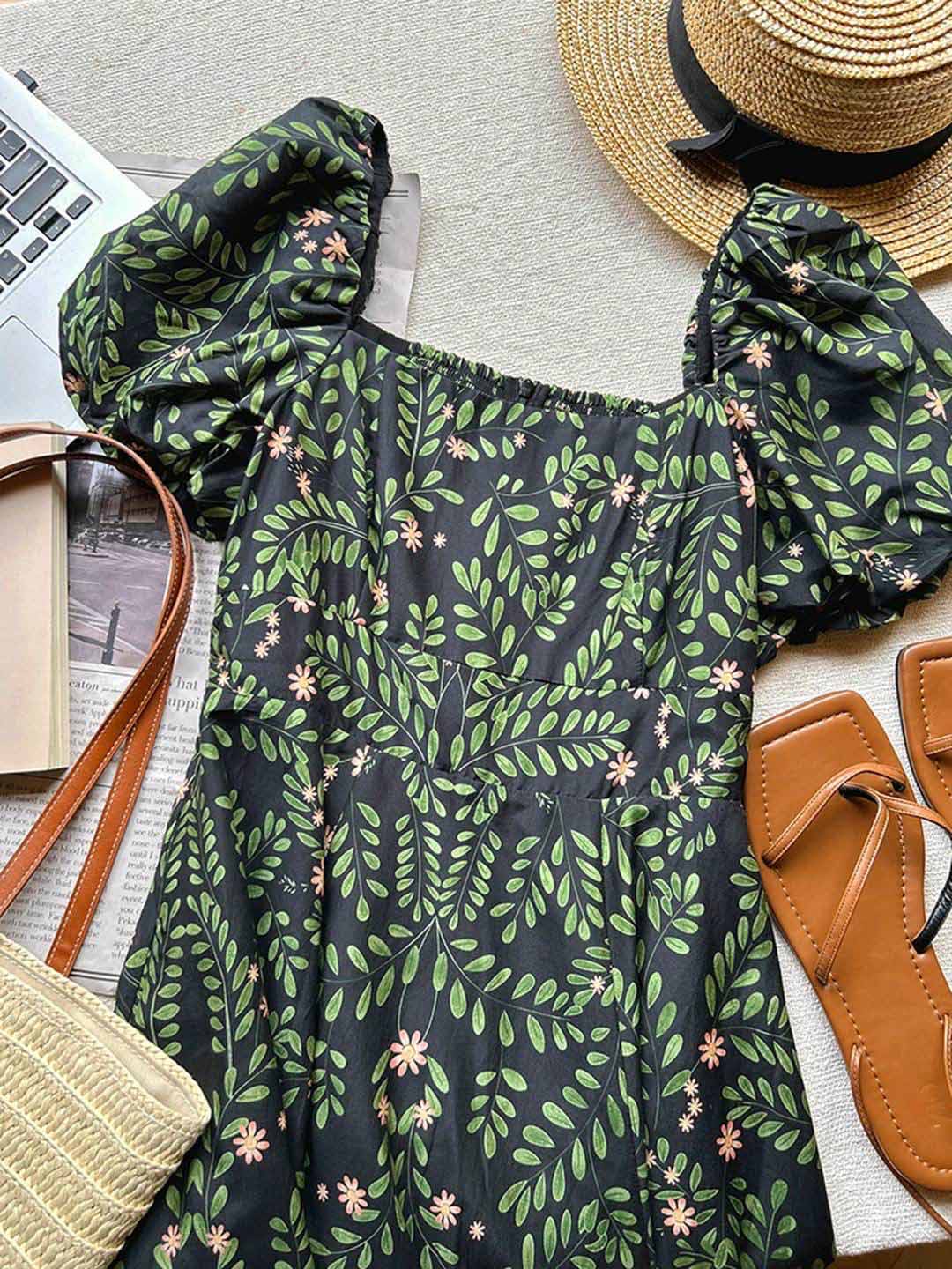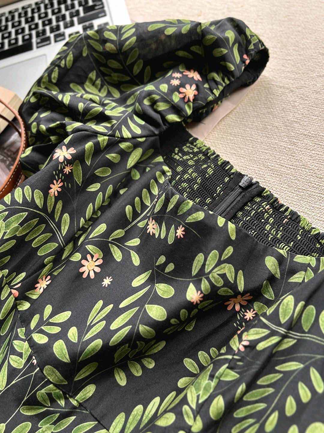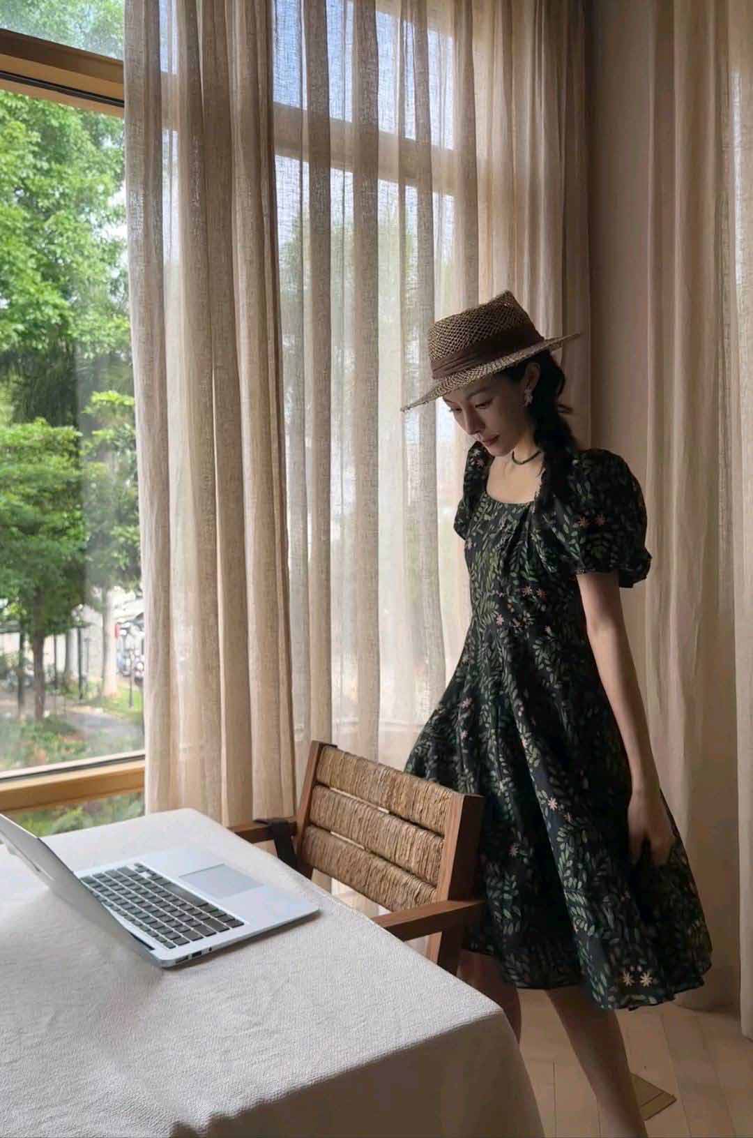 顺丰包邮洛诗琳15517蚕丝混纺碎花减龄泡泡袖显瘦方领连衣裙0768