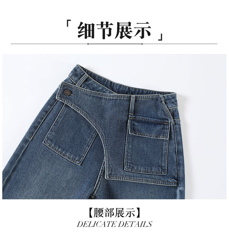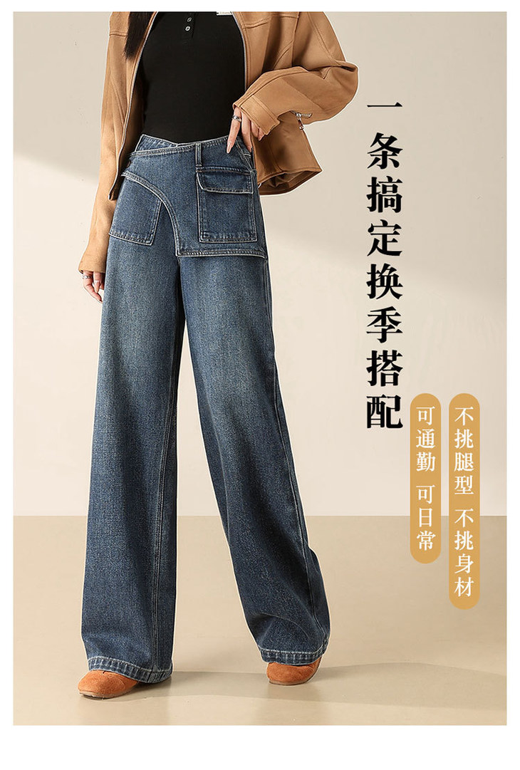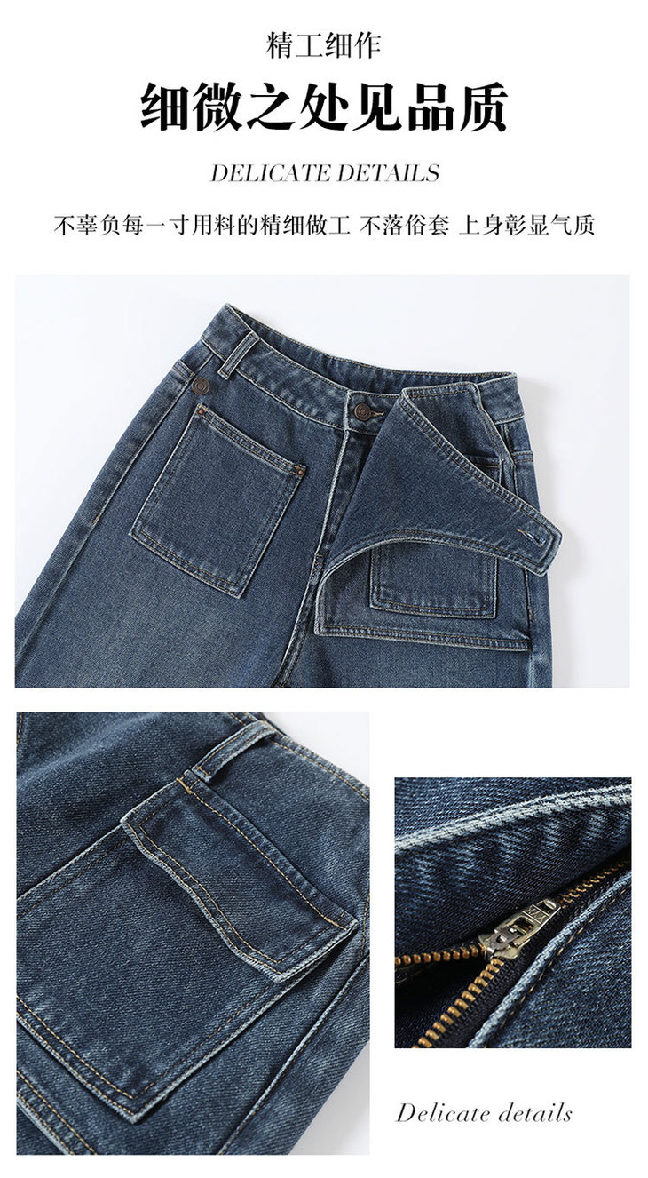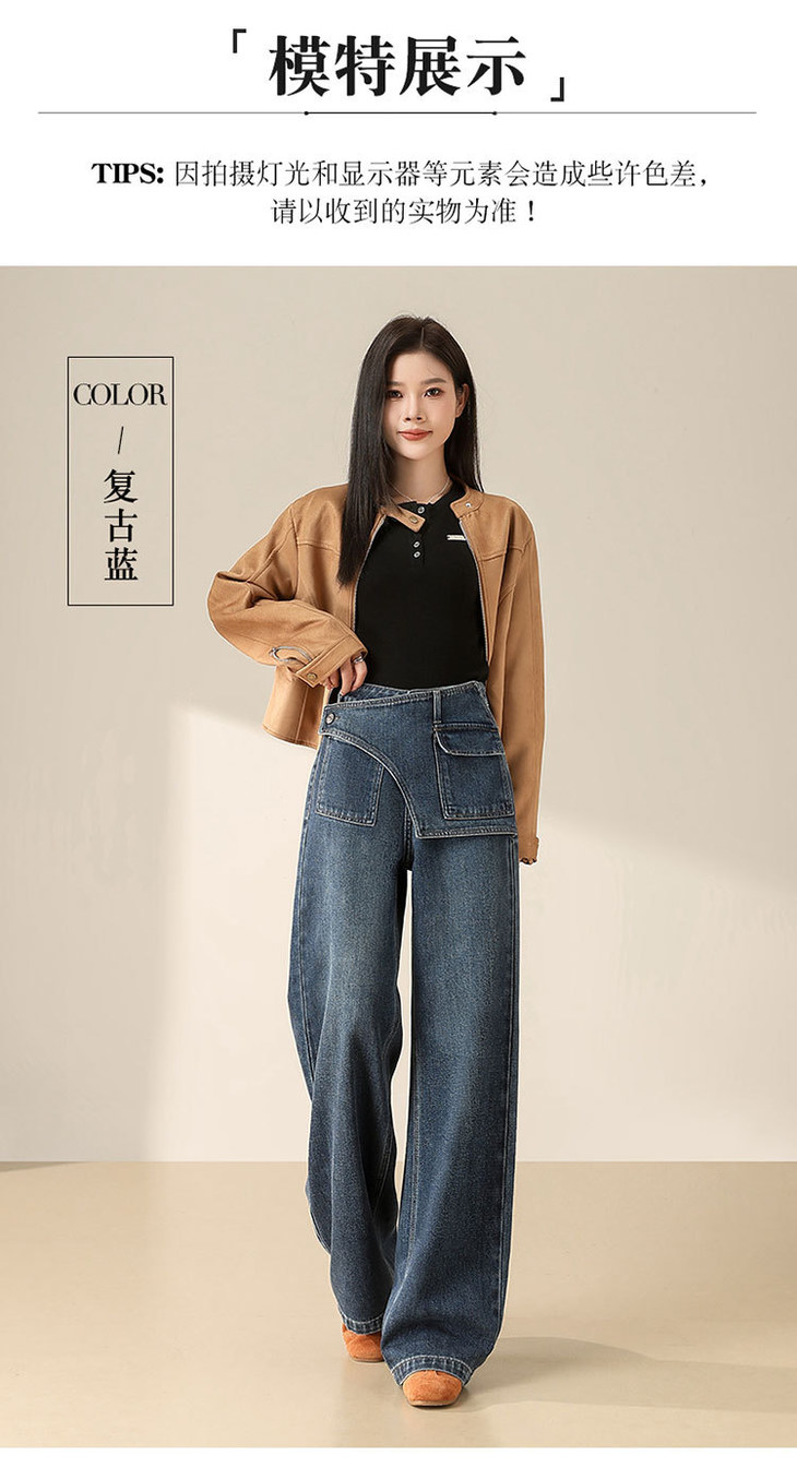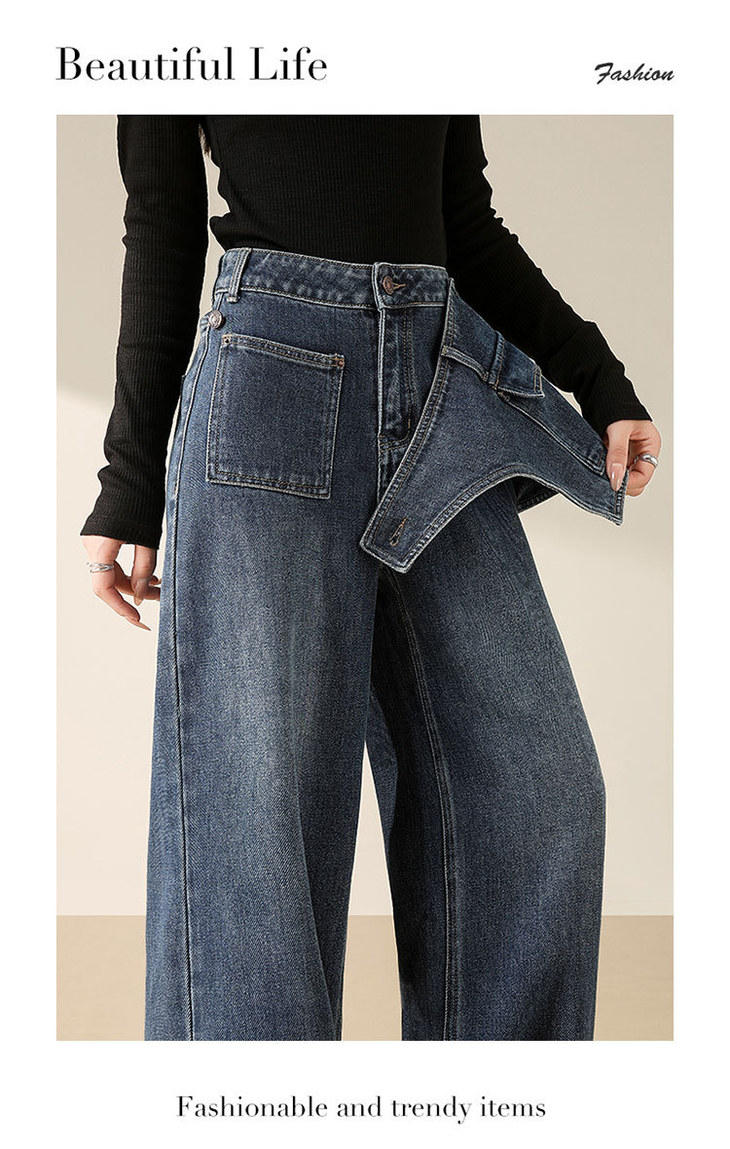 假两件复古蓝阔腿牛仔裤,高腰显瘦长款休闲直筒裤MYX-OZY-25213-L
