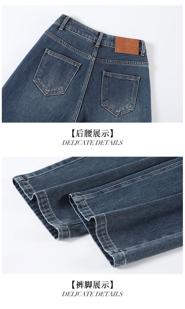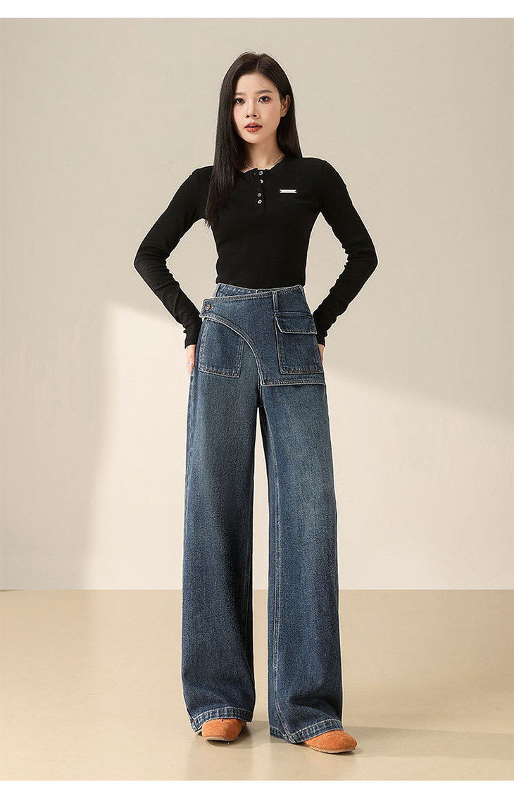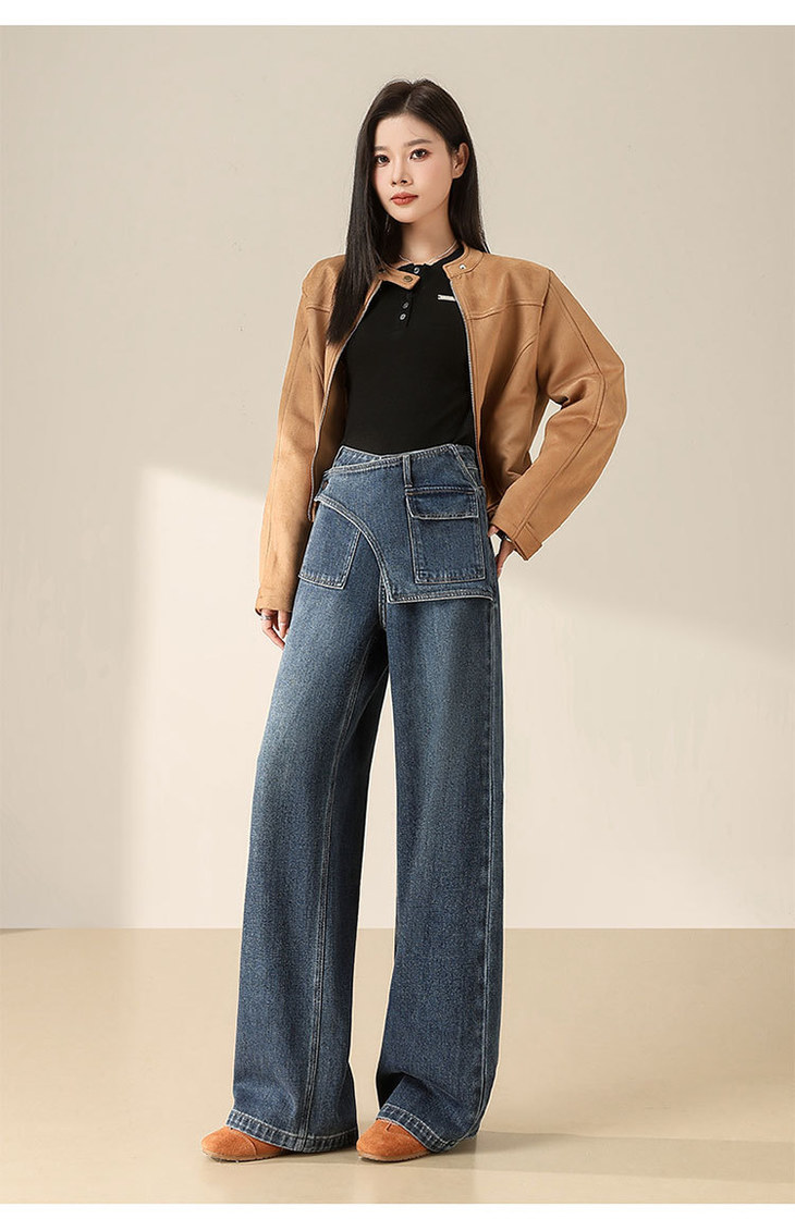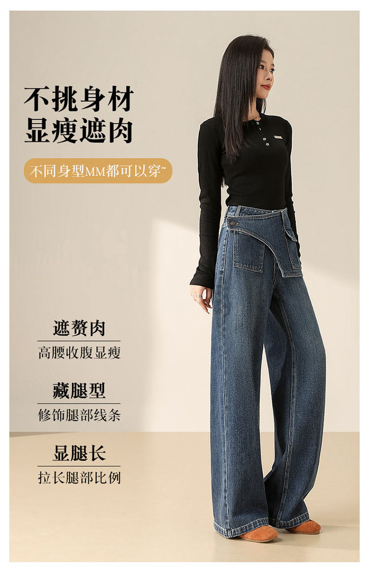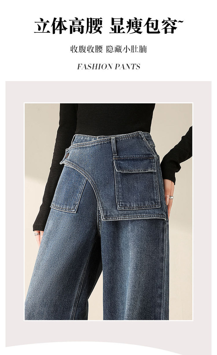 假两件复古蓝阔腿牛仔裤,高腰显瘦长款休闲直筒裤MYX-OZY-25213-L