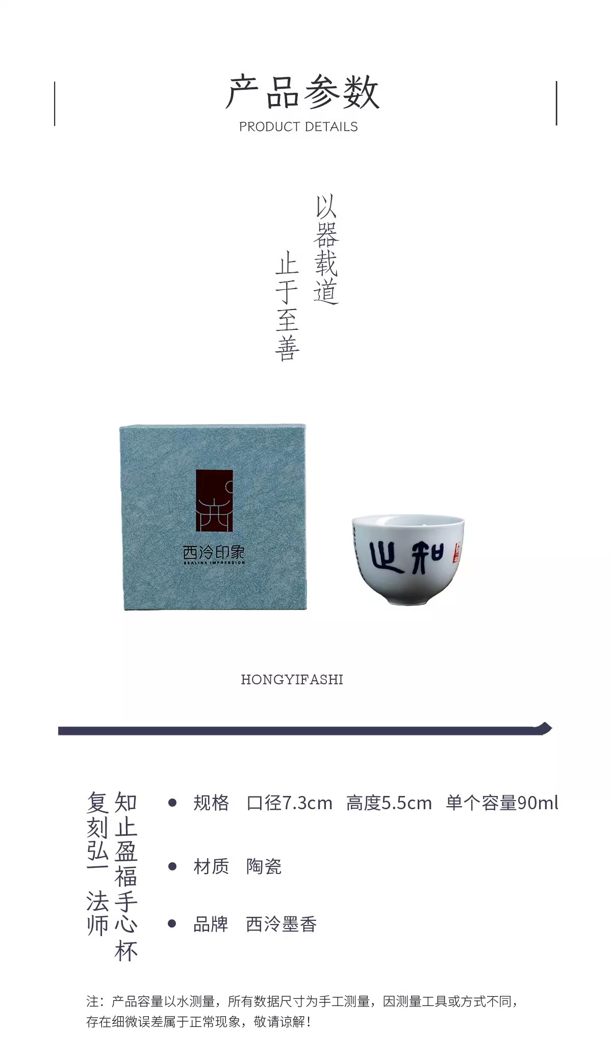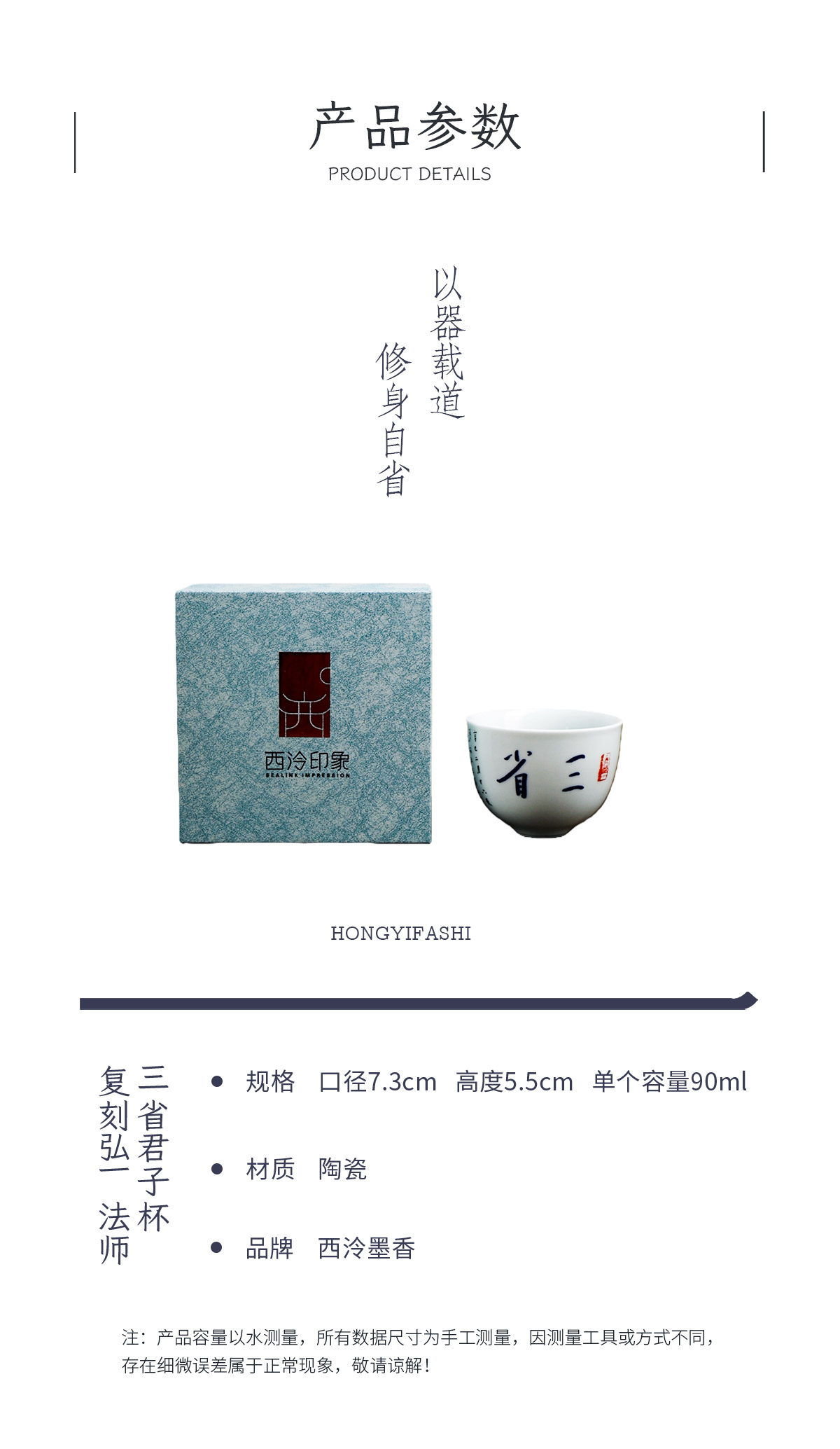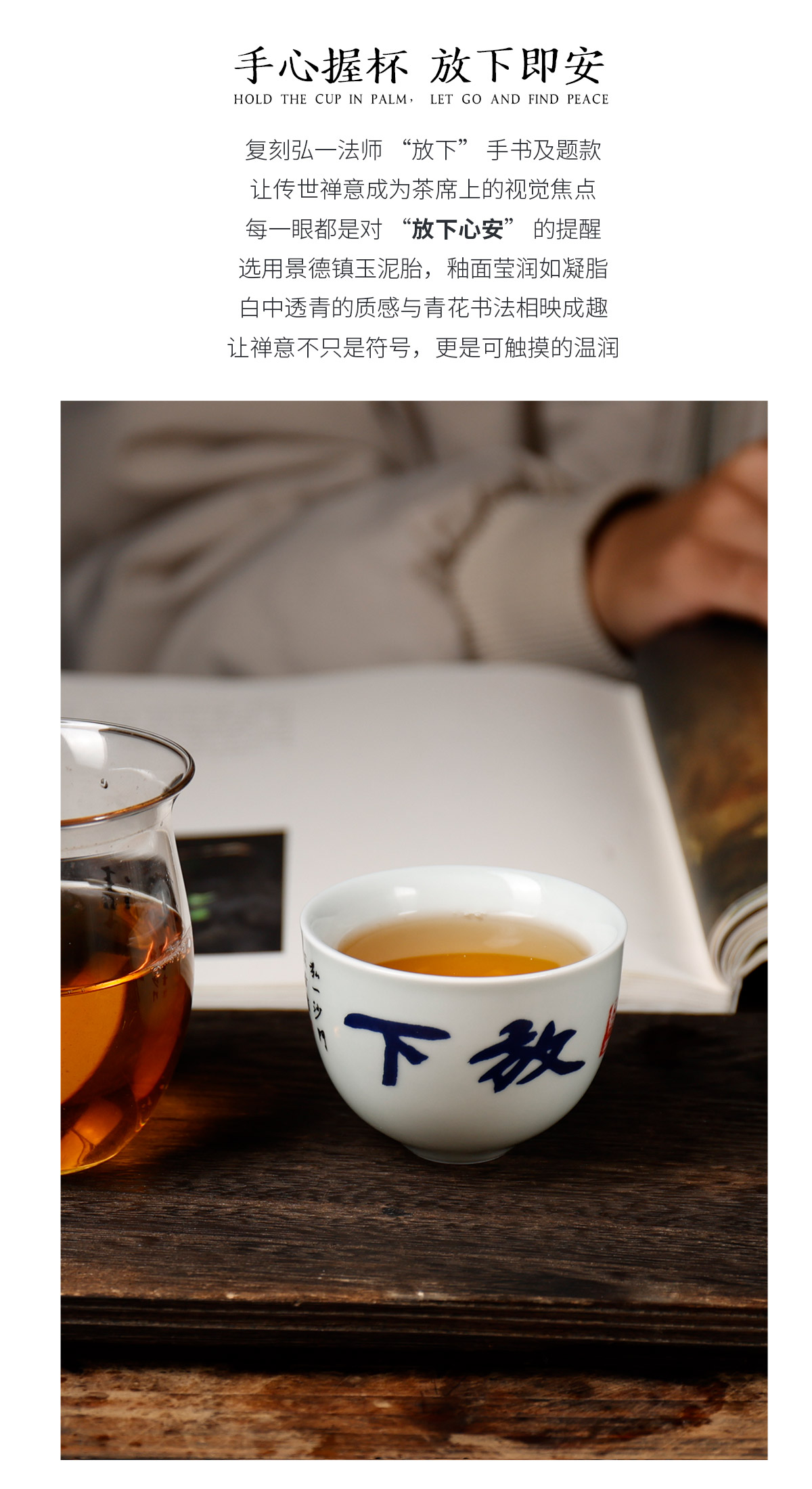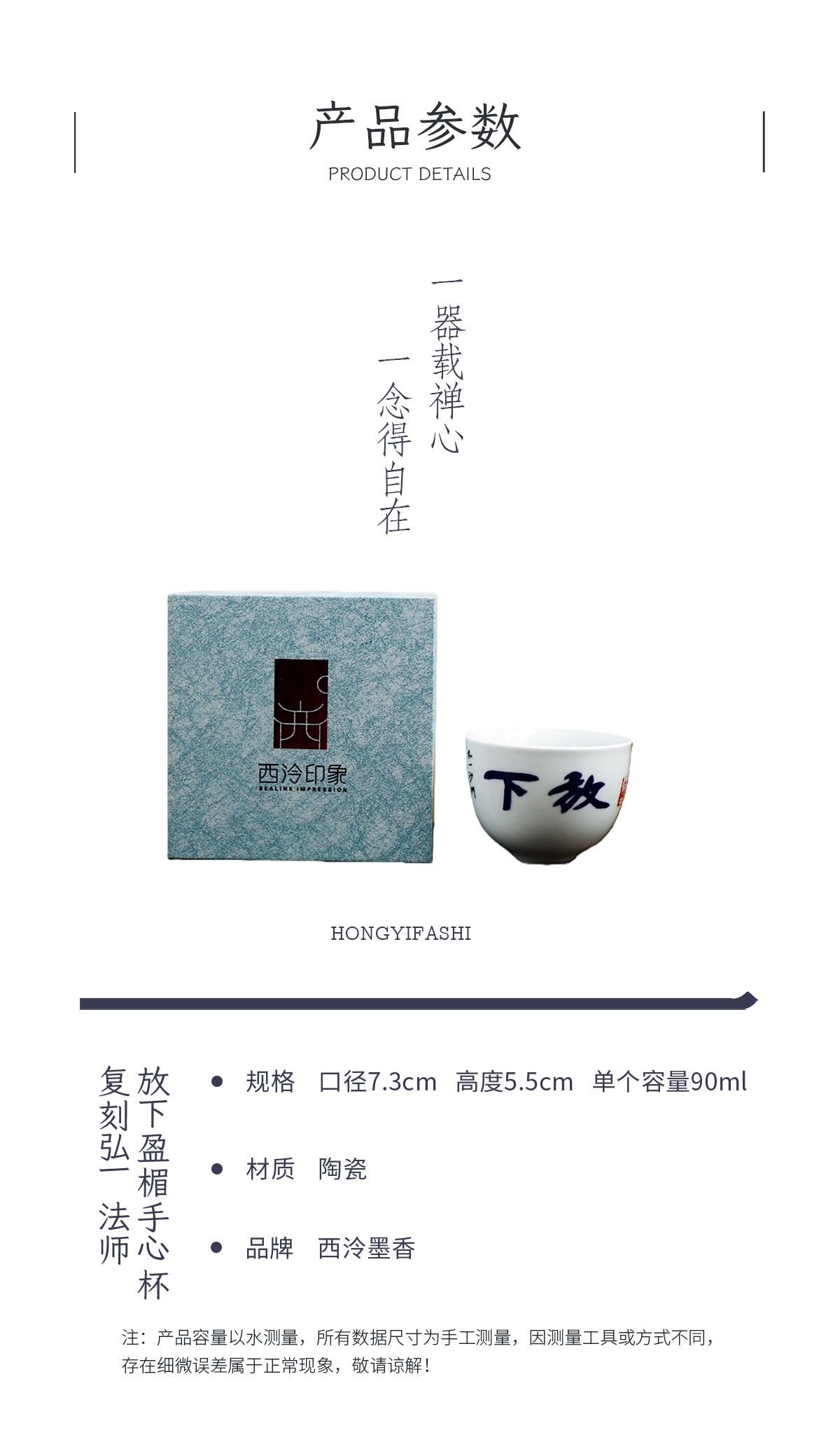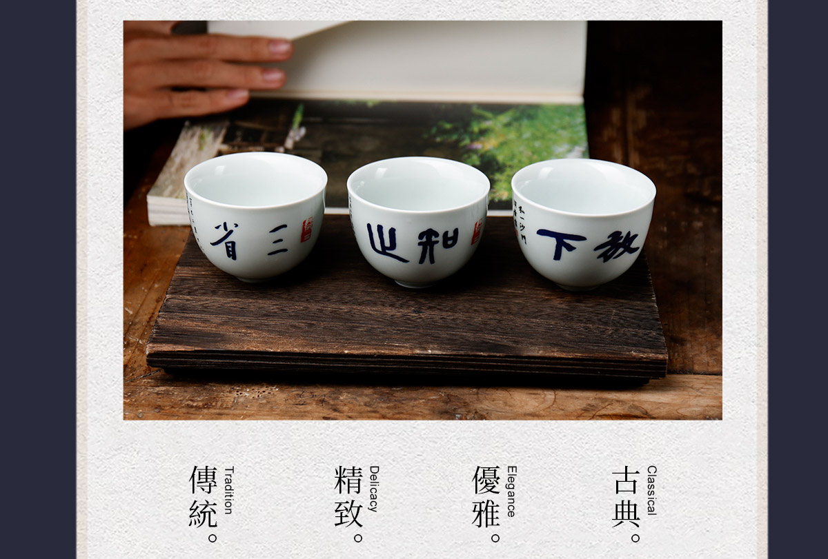 弘一法师系列主人杯茶杯禅意茶具手工陶瓷品茗杯<放下><三省><知止>