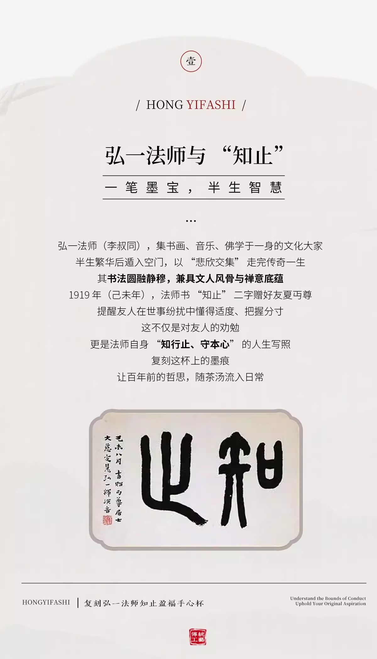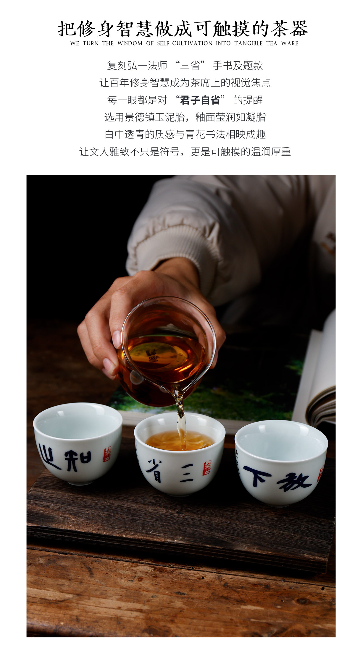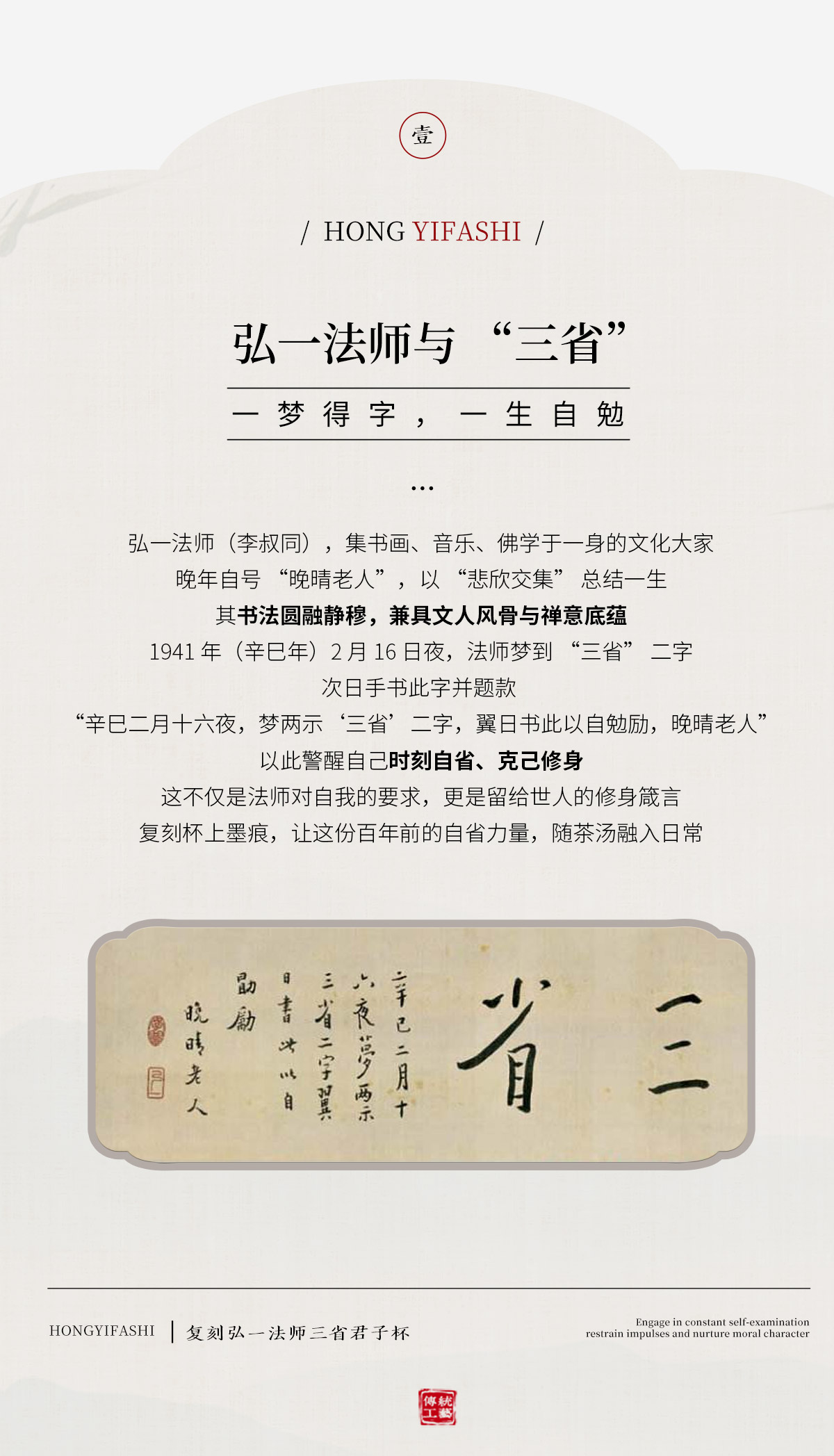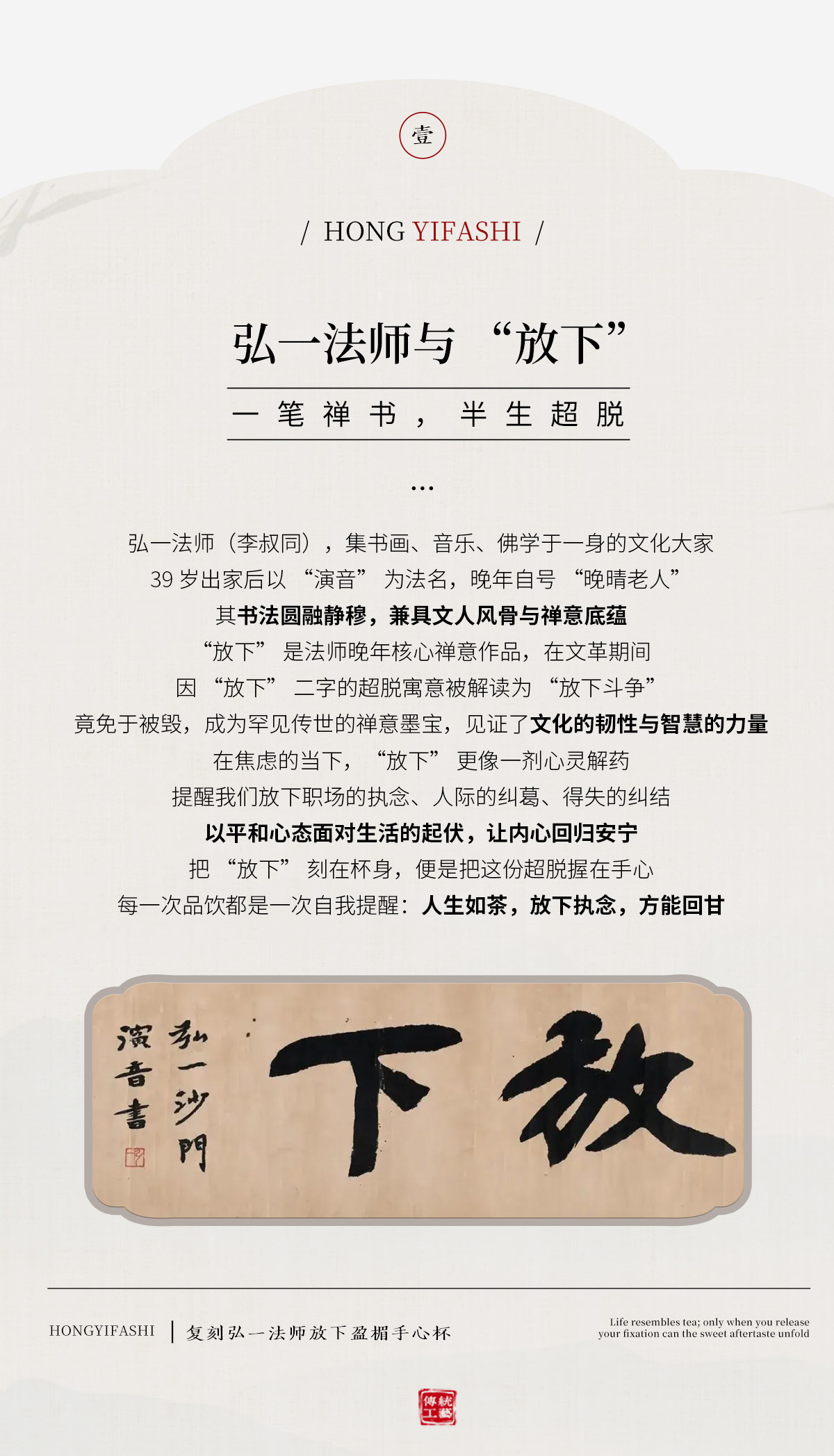 弘一法师系列主人杯茶杯禅意茶具手工陶瓷品茗杯<放下><三省><知止>