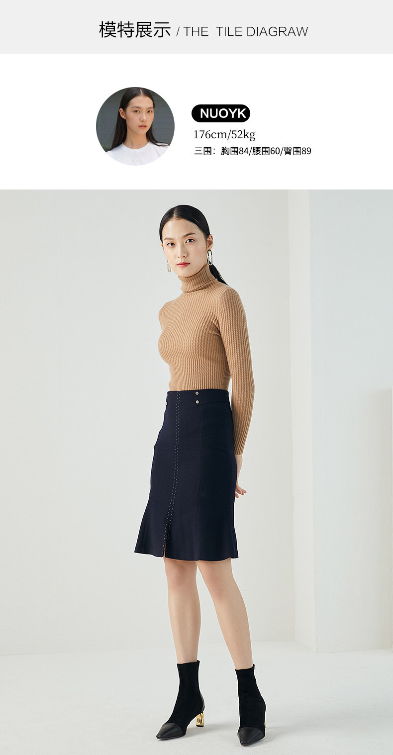 乔万尼小香风精致淑女鱼尾设计精纺羊毛品质高级感半身裙ES4D453