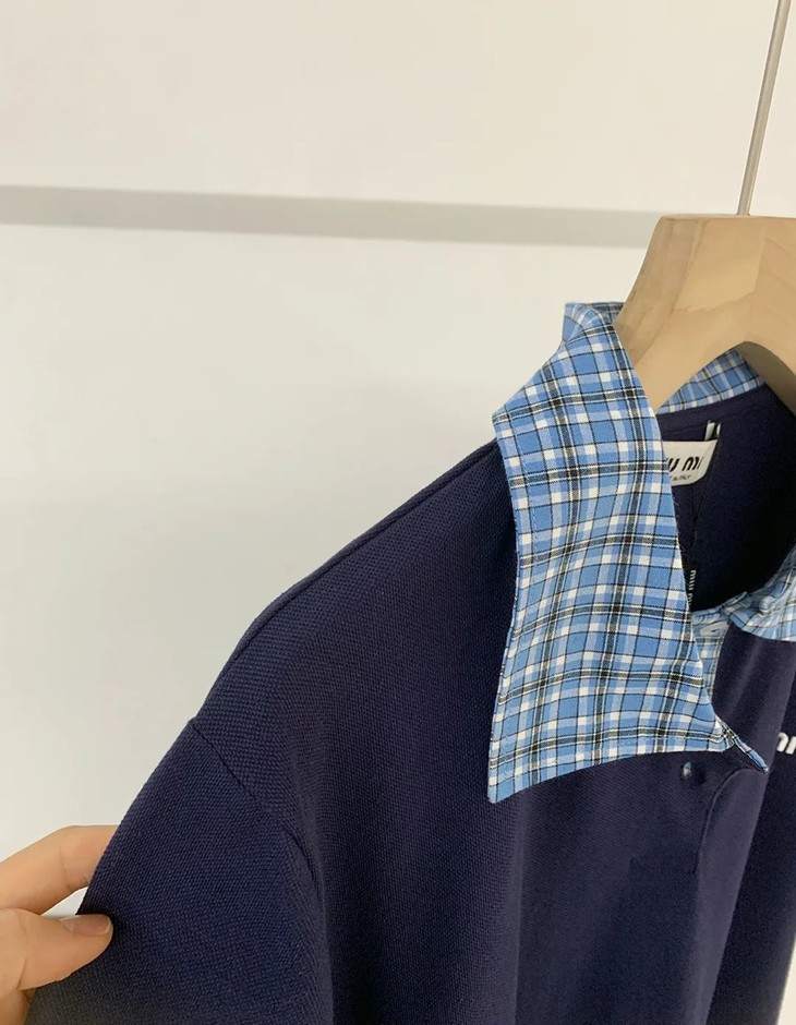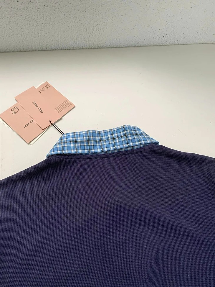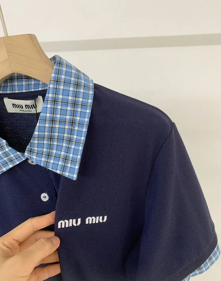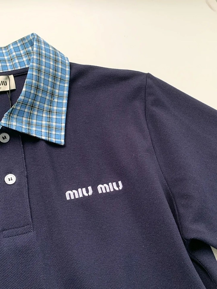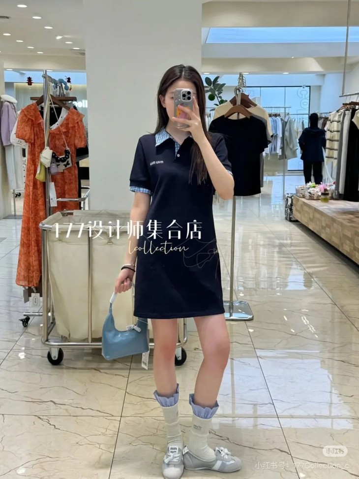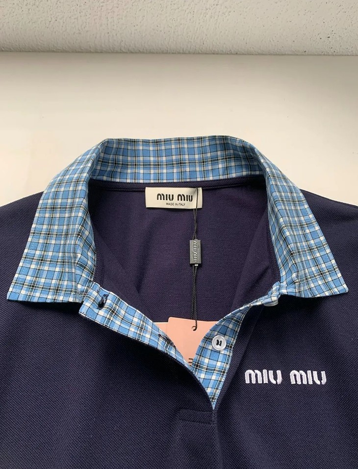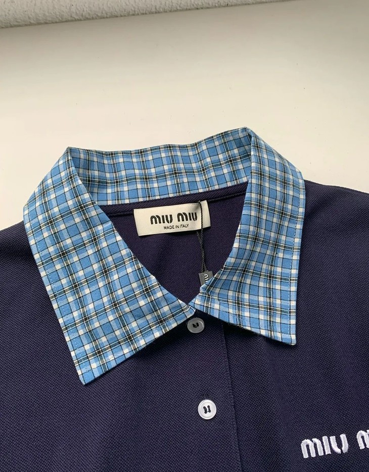miumi*|缪 明星同款25ss 蓝色格纹polo连衣裙