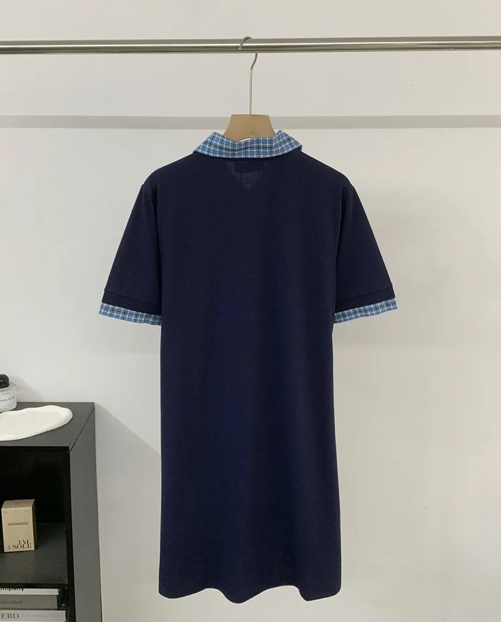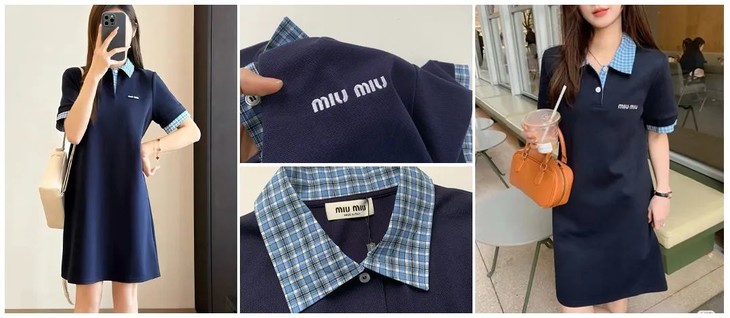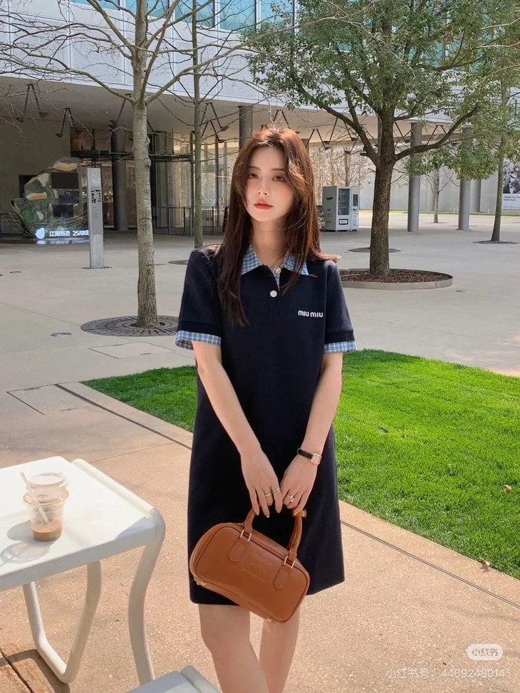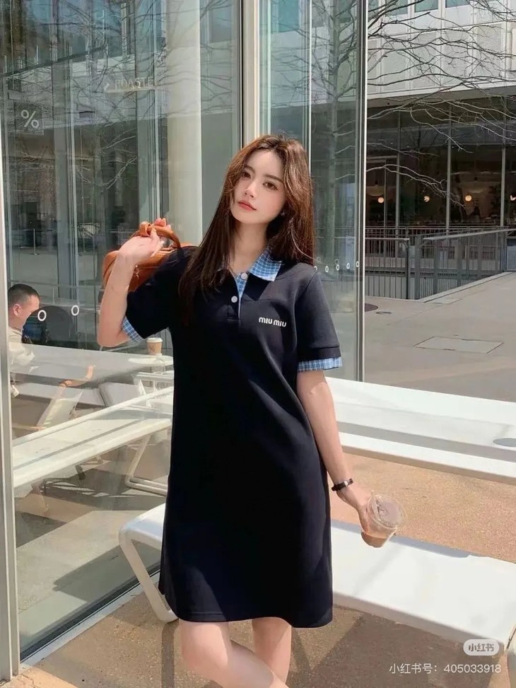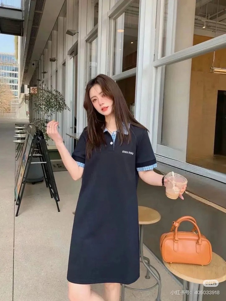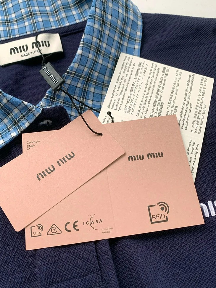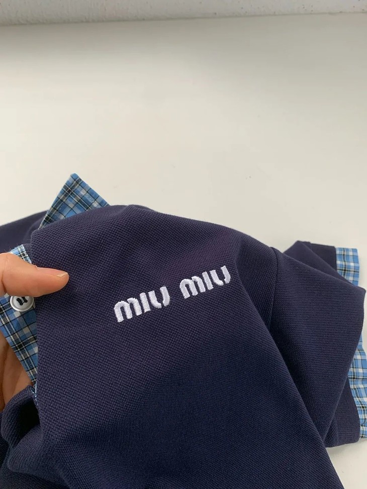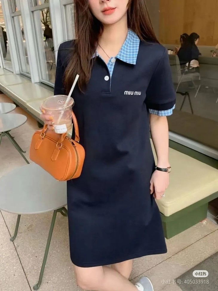 miumi*|缪 明星同款25ss 蓝色格纹polo连衣裙