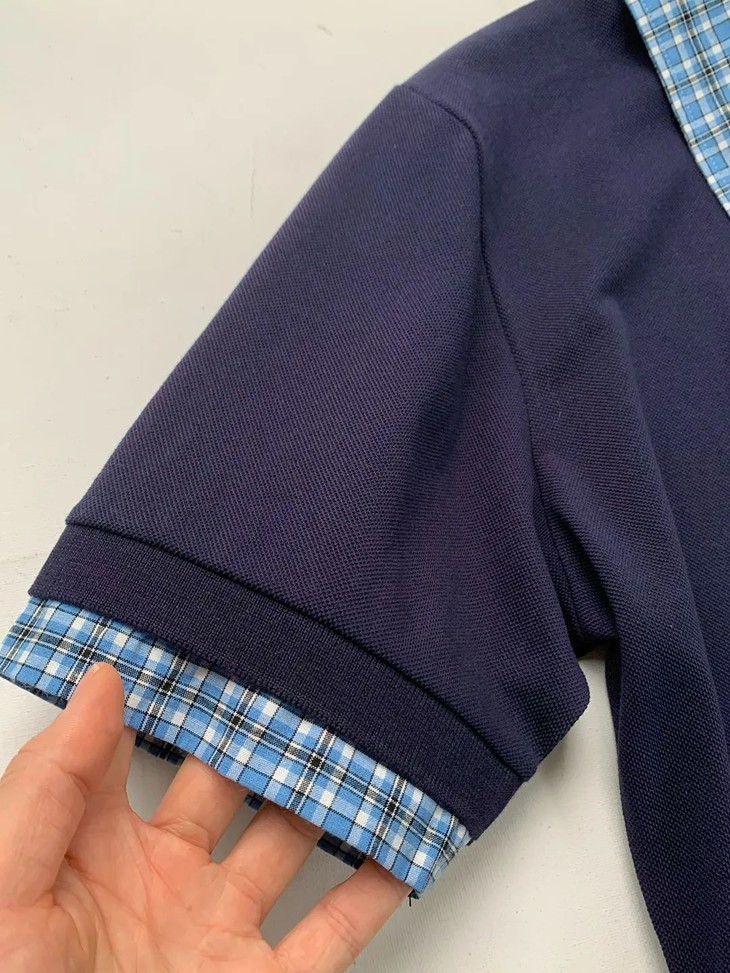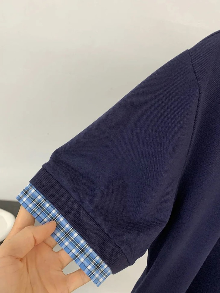 精梳珠地棉蜂网刺绣徽标格子翻领