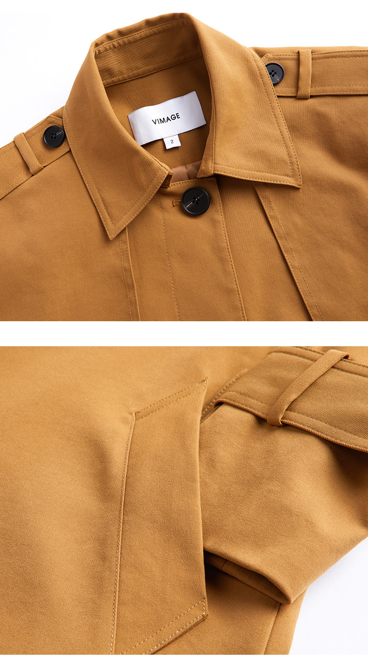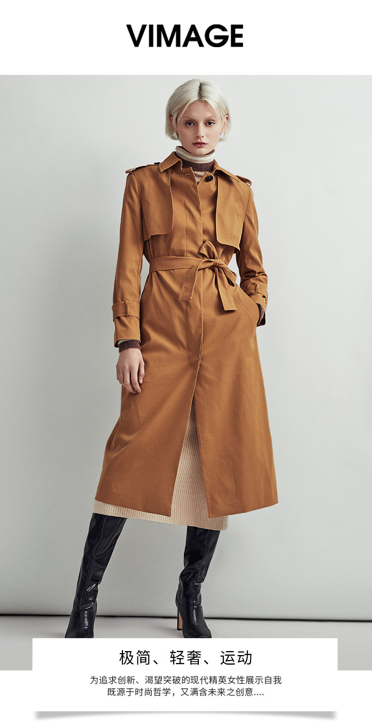 VIMAGE纬漫纪秋季新款时尚帅气挺括中性直筒腰带收腰风衣外套V1404001D