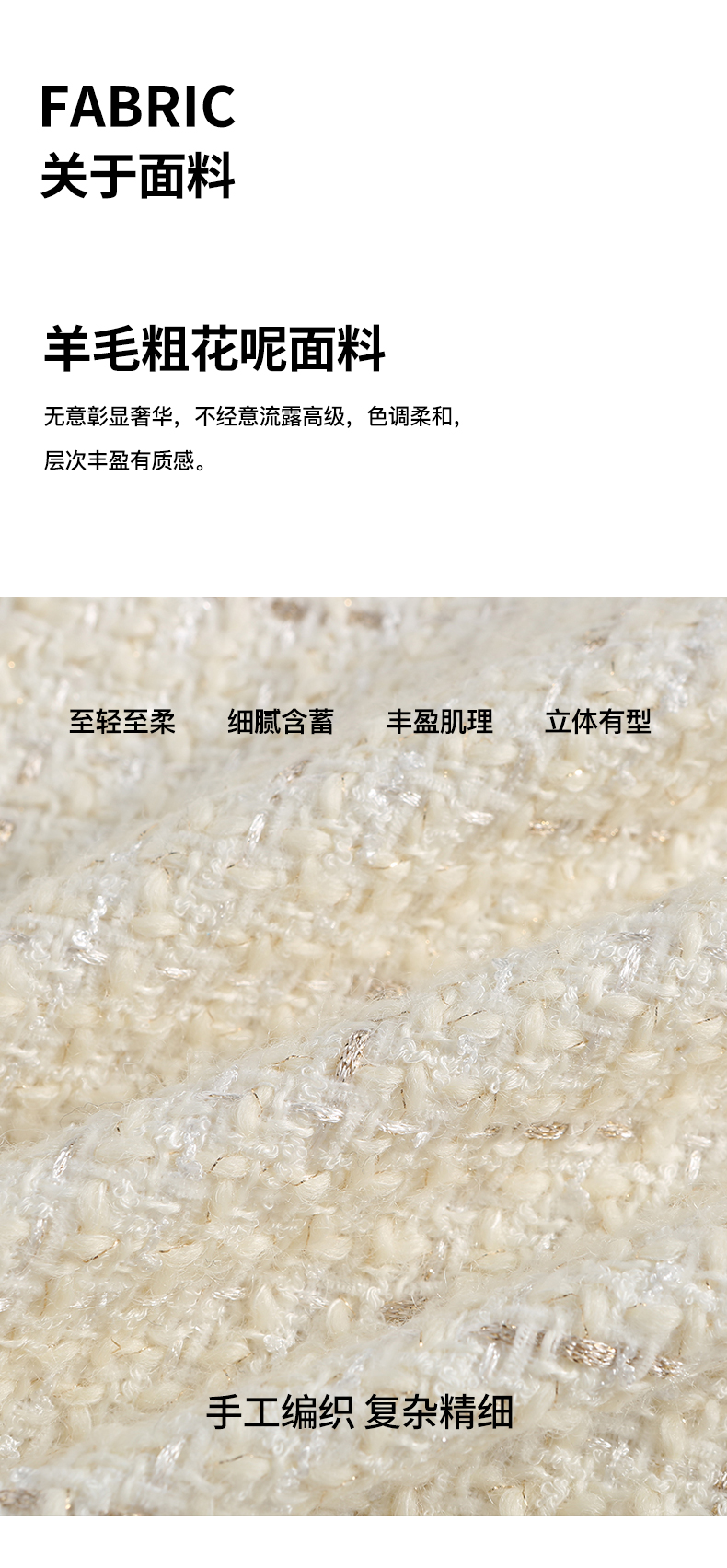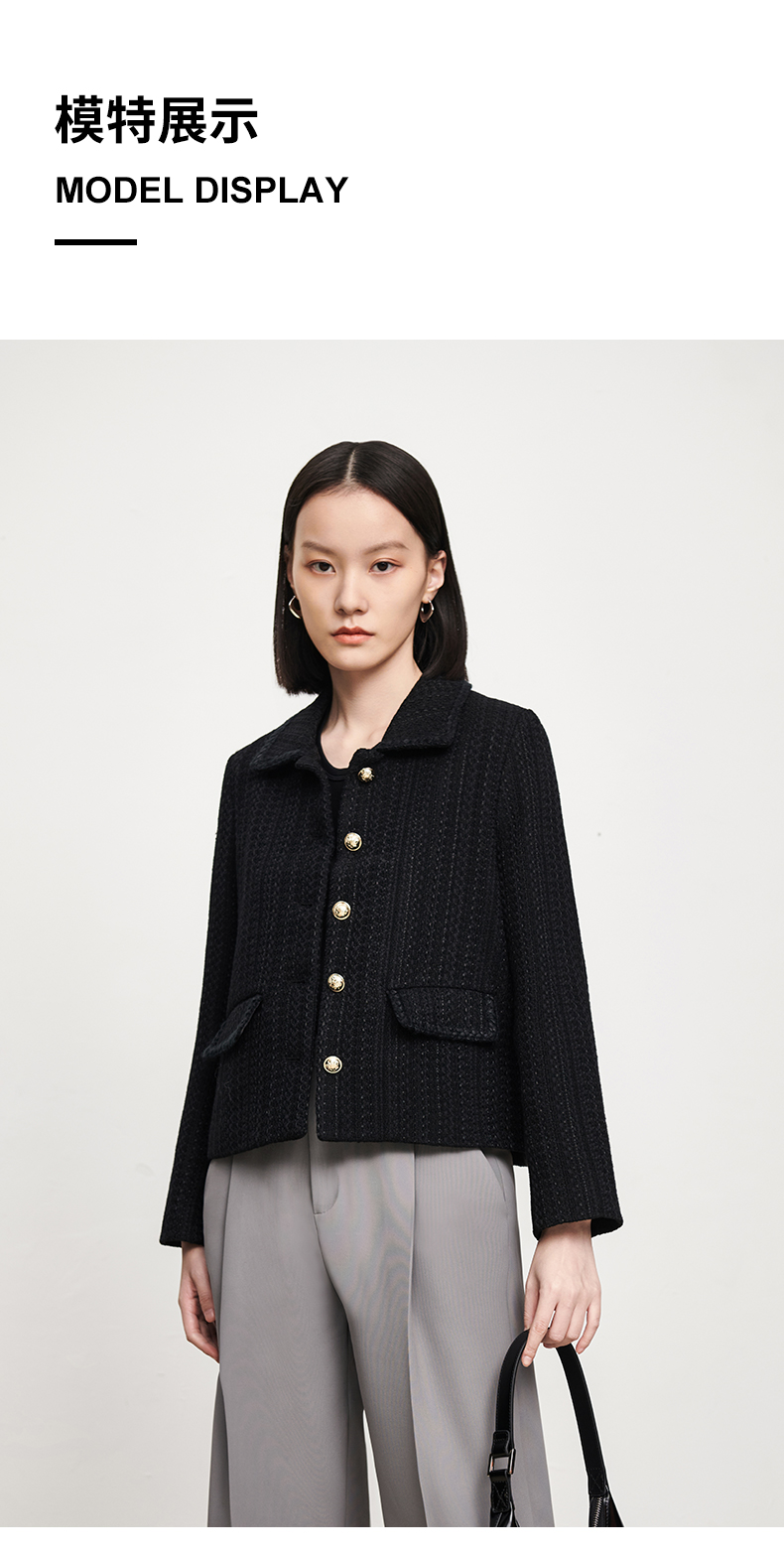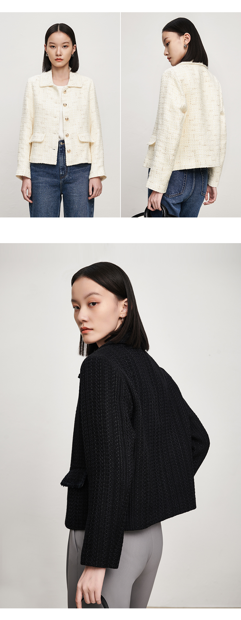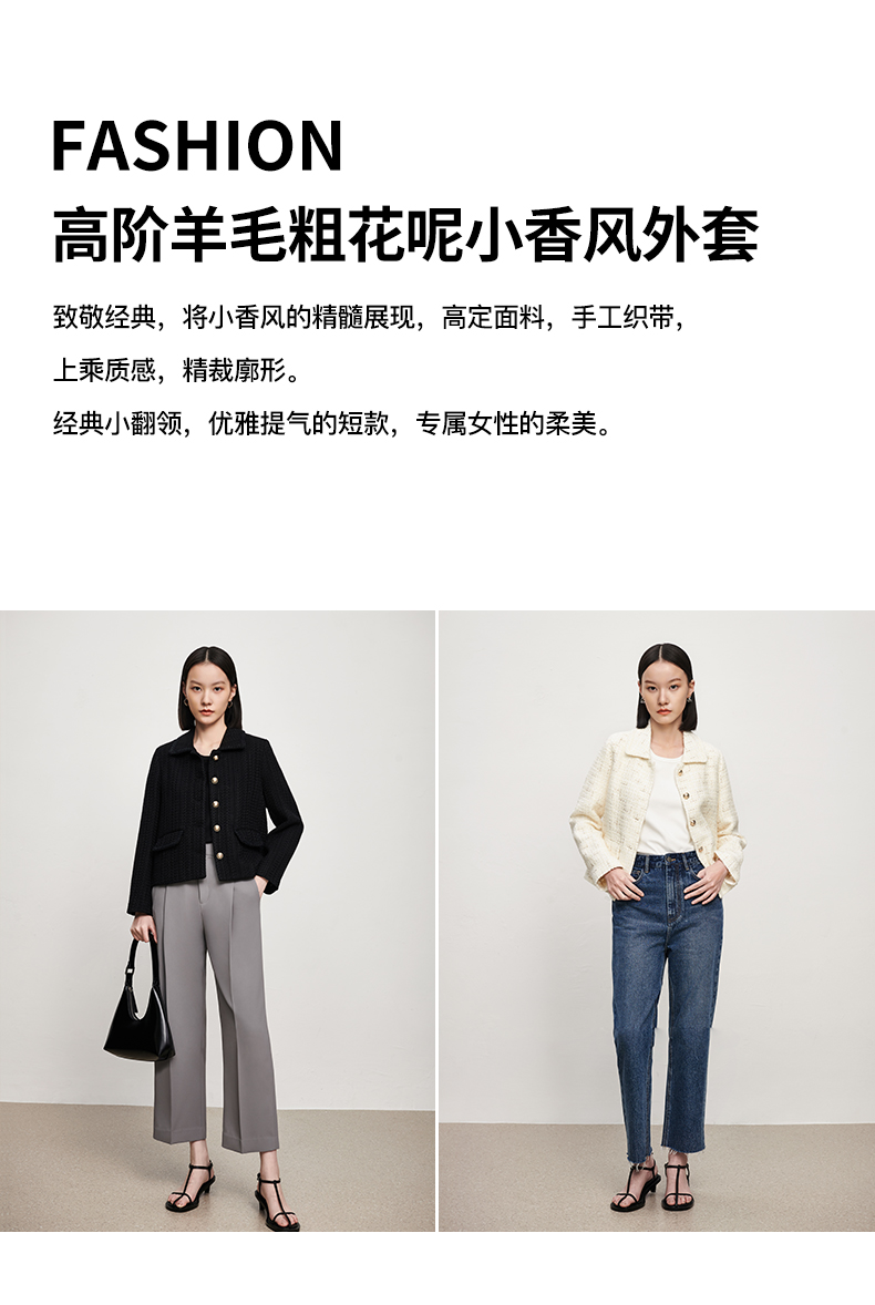 INANDON2023春款小香风短款羊毛粗花呢外套女百搭宽松春秋小个子上衣西装