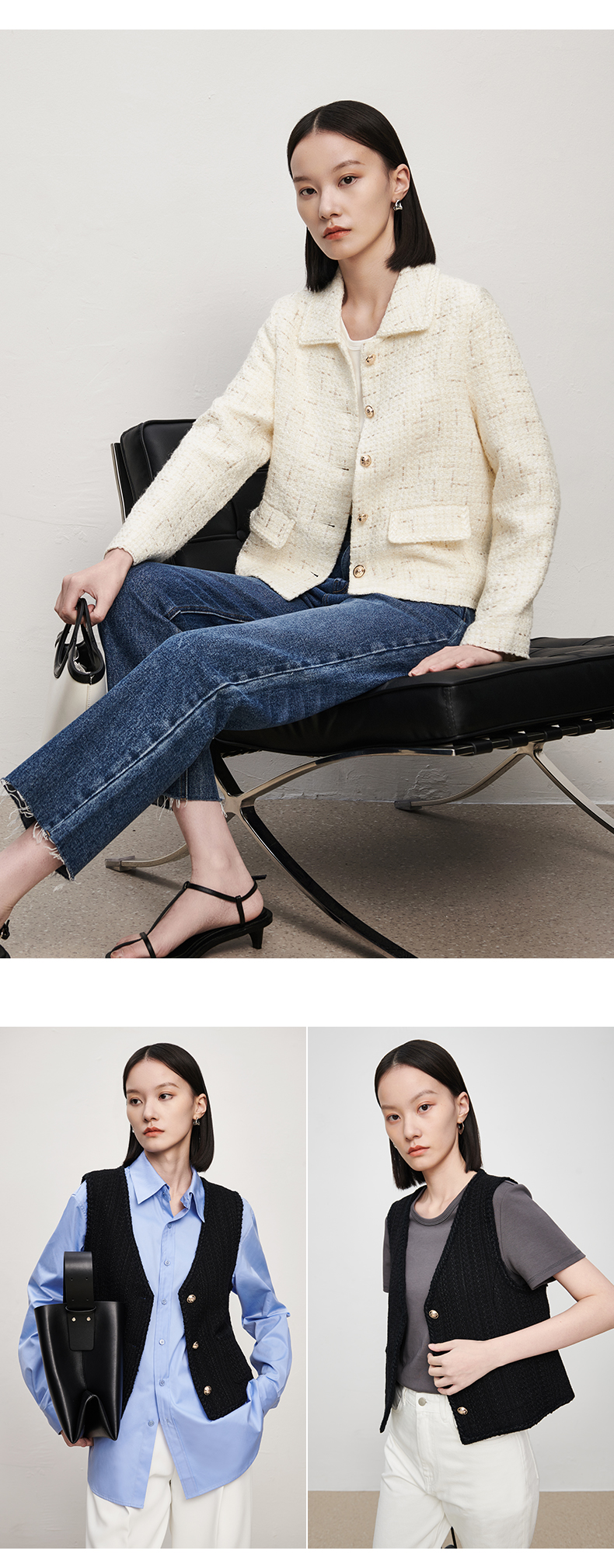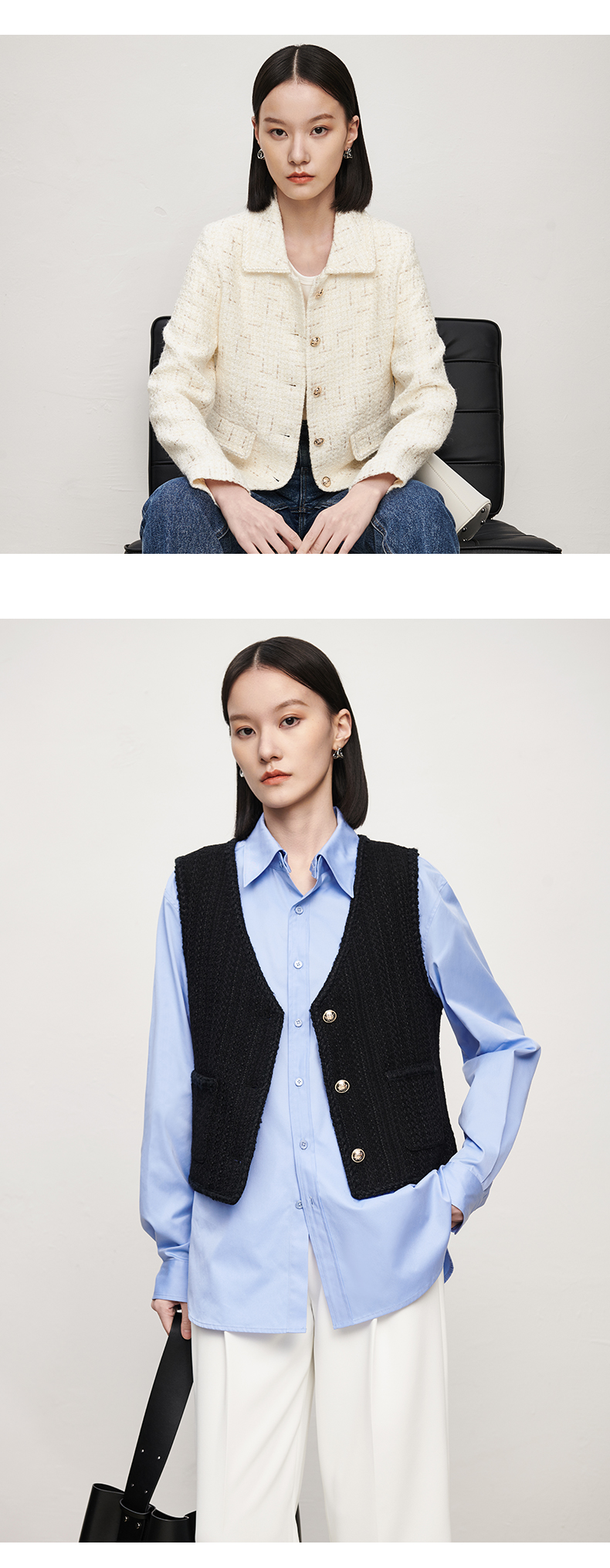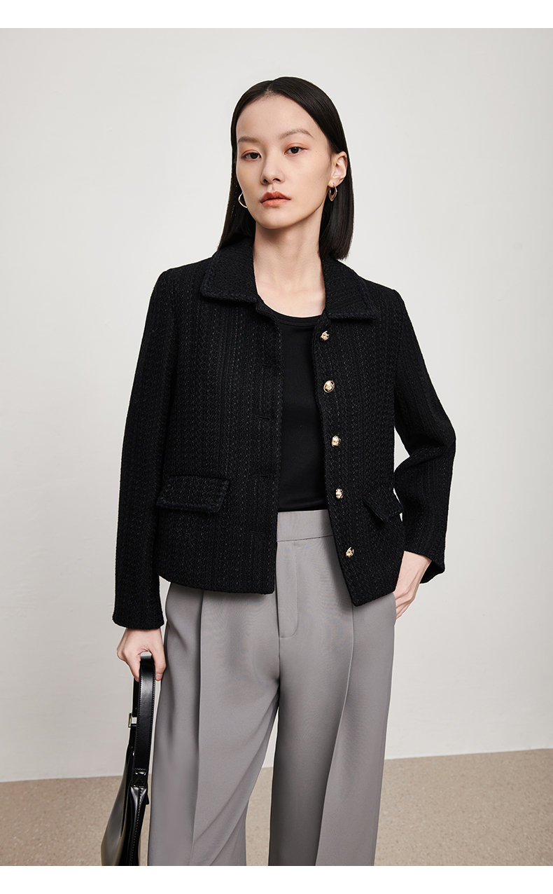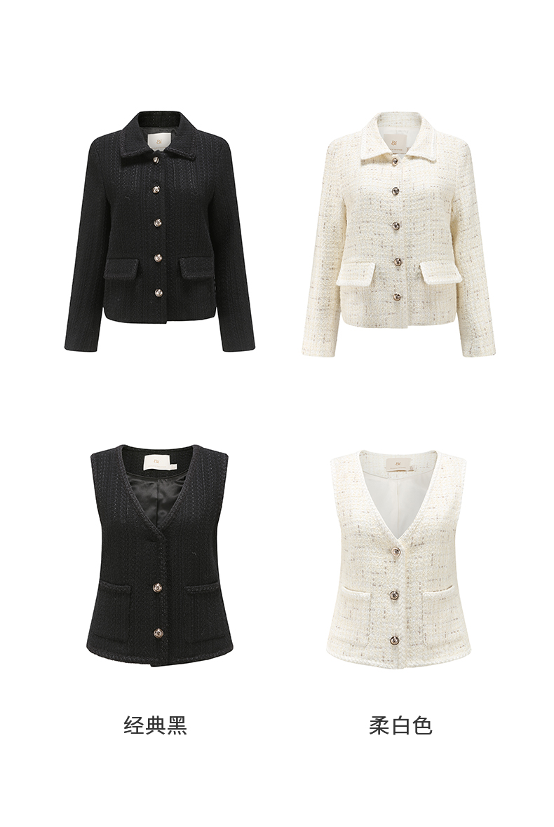 INANDON2023春款小香风短款羊毛粗花呢外套女百搭宽松春秋小个子上衣西装