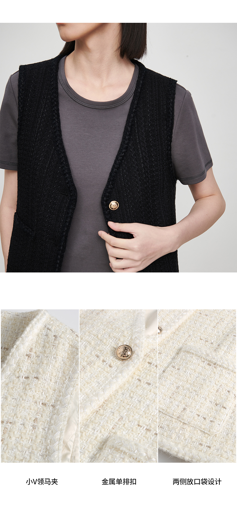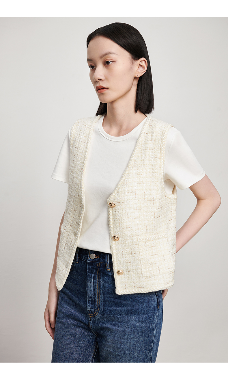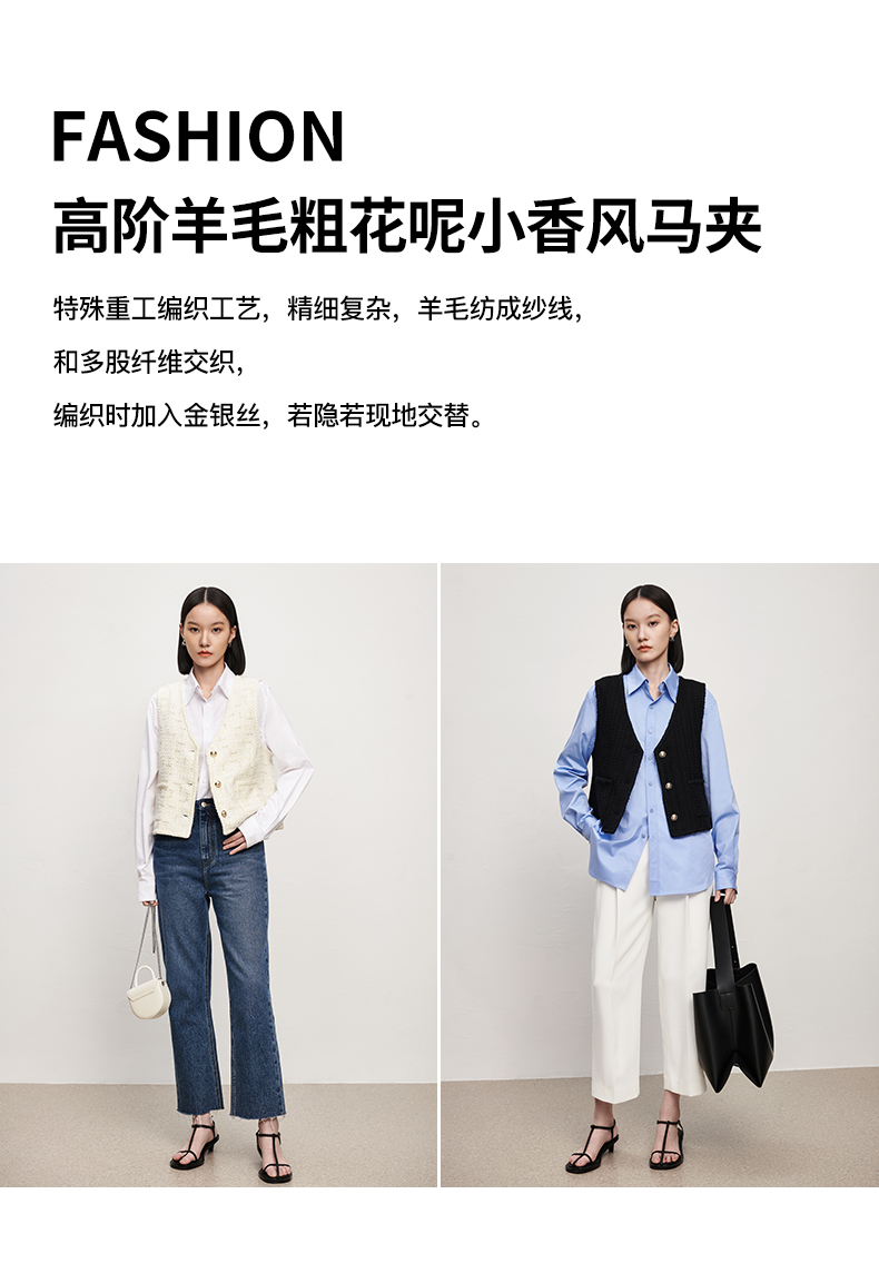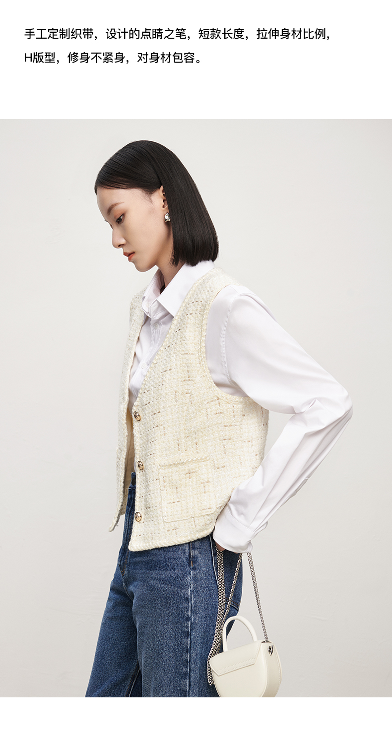 INANDON2023春款小香风短款羊毛粗花呢外套女百搭宽松春秋小个子上衣西装