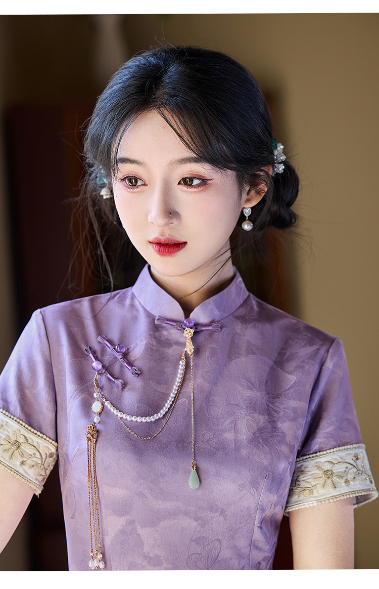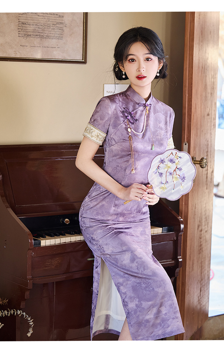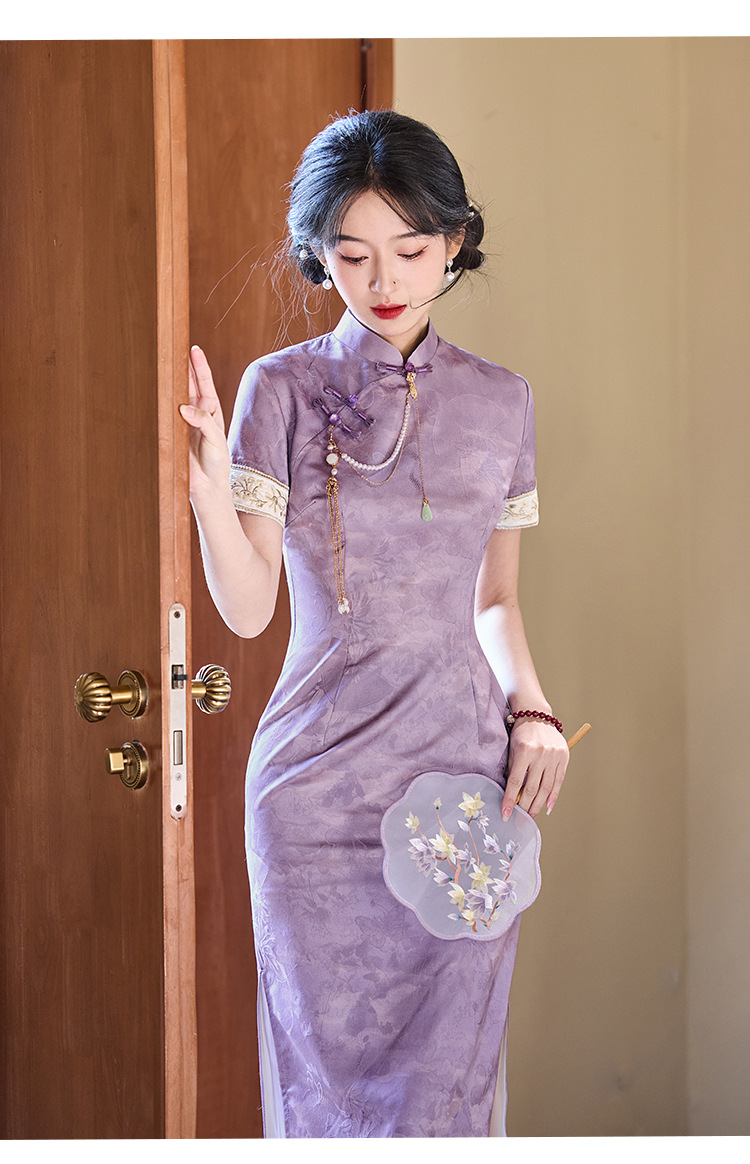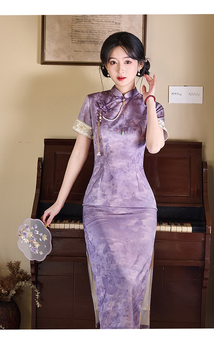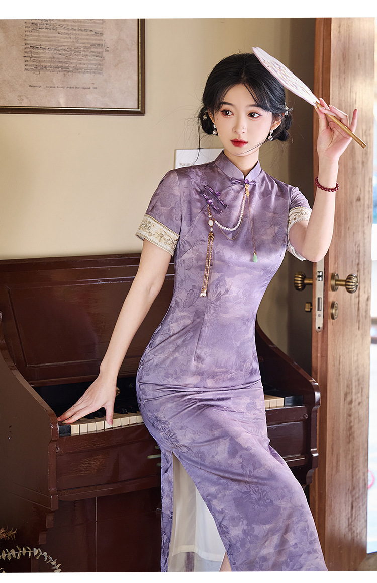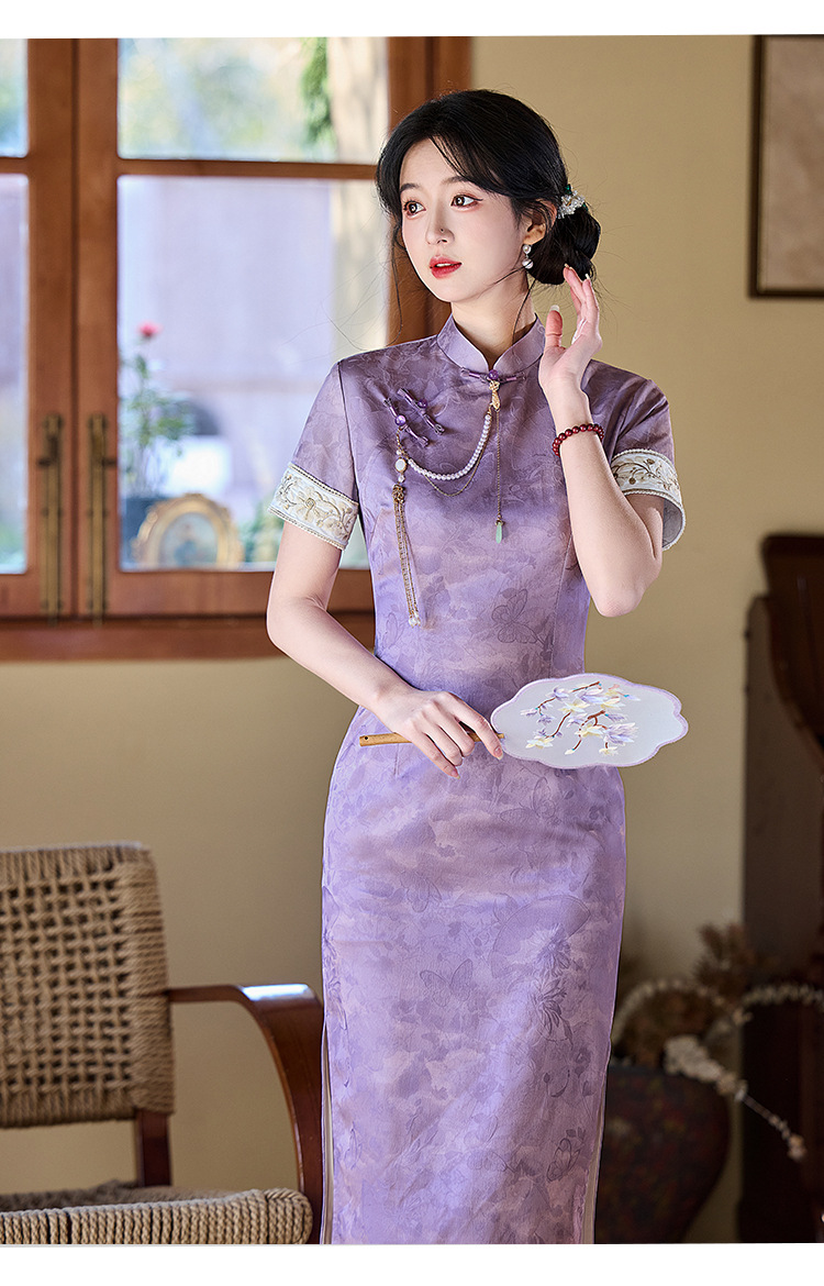 中式绝美长款,复古修身短袖走秀旗袍ZA&SC20645