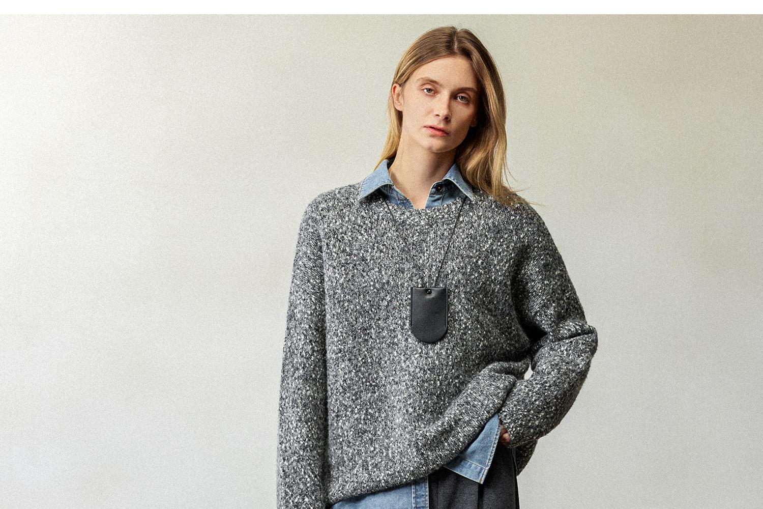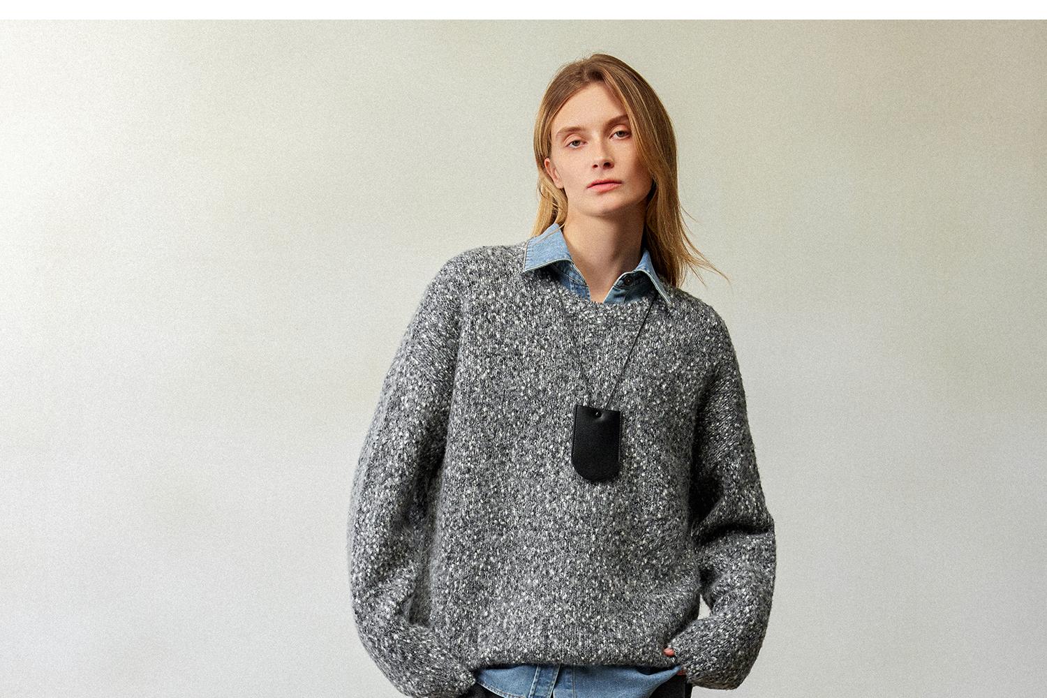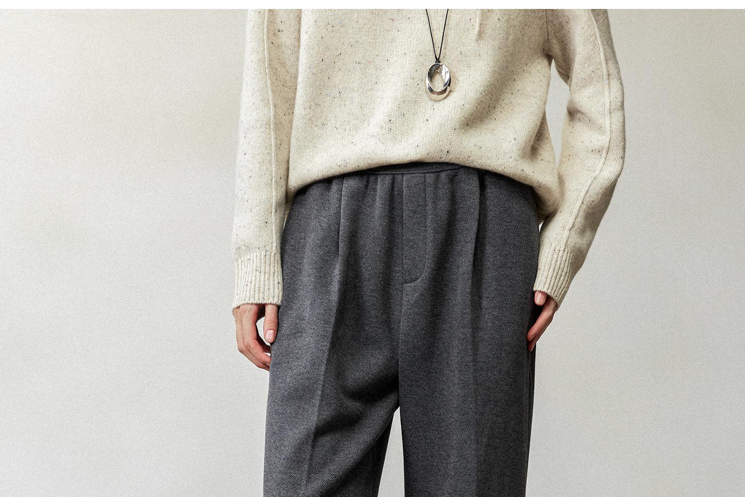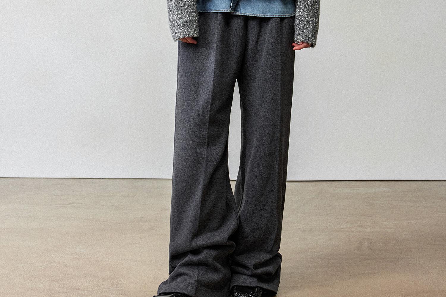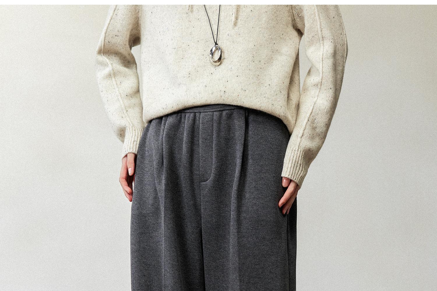 CIMPRESS/西嘉醋酸针织羊毛阔腿裤女秋冬灰色时髦直筒裤遮肉显瘦(货号:KZ2404076)