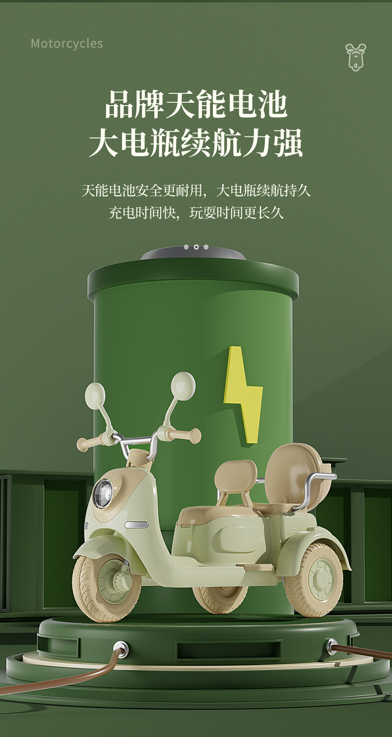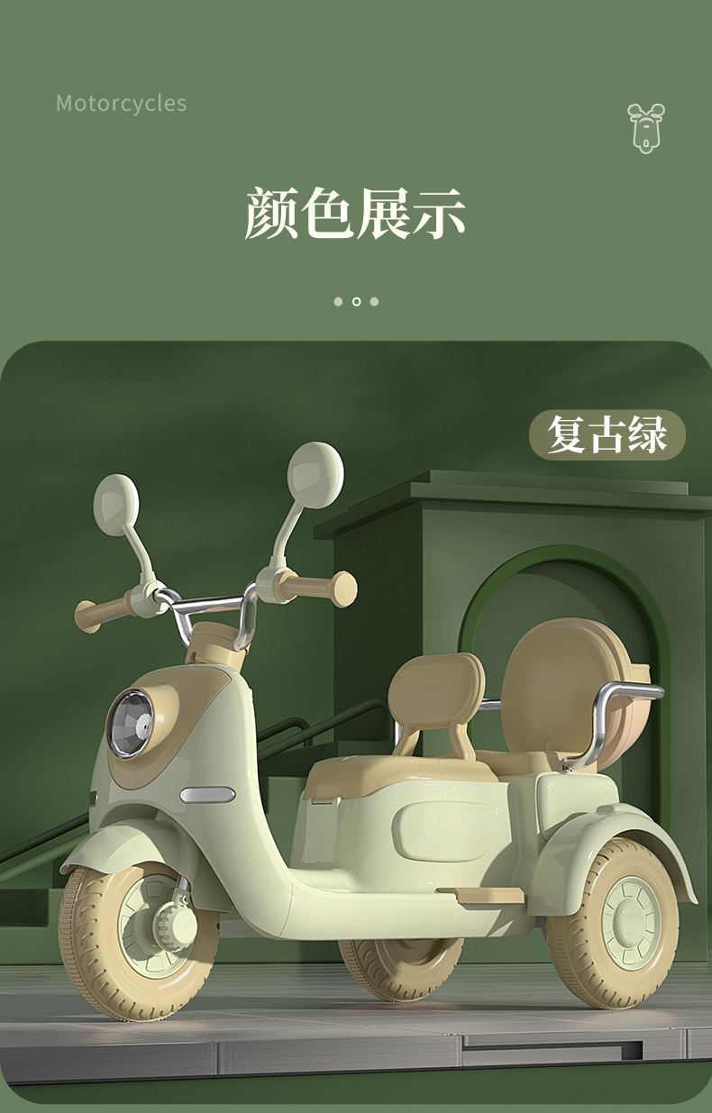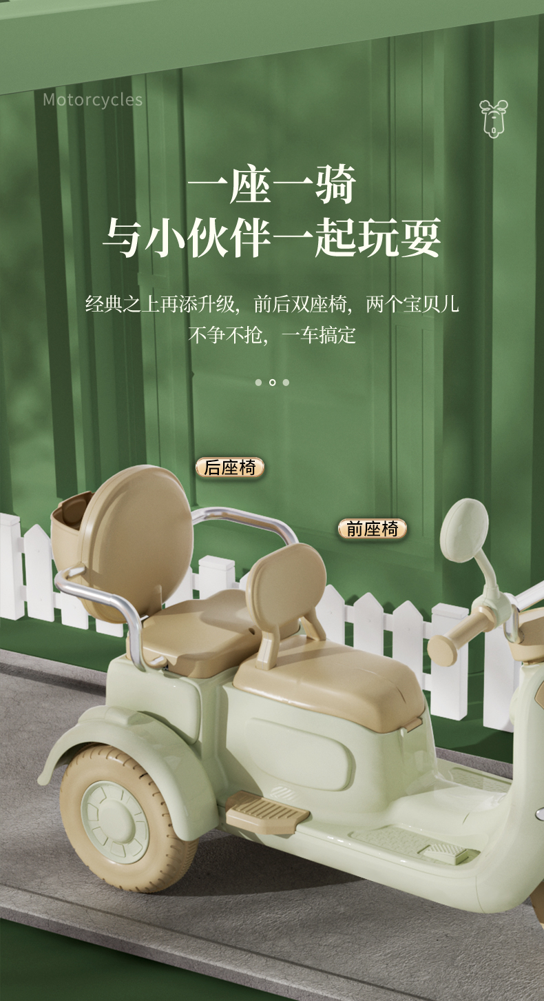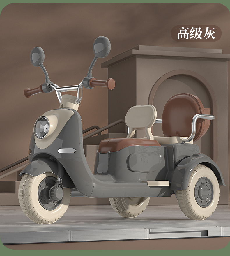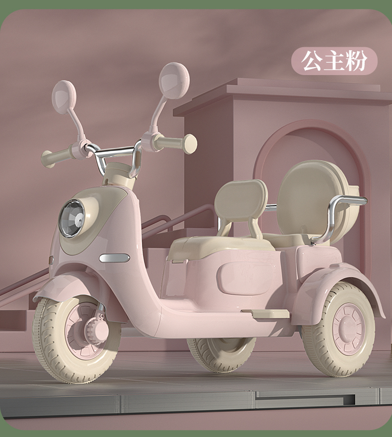 哈喽贝比儿童电动摩托车三轮车宝宝小孩早教玩具电瓶车可坐二人充电脚踩式电动玩具车