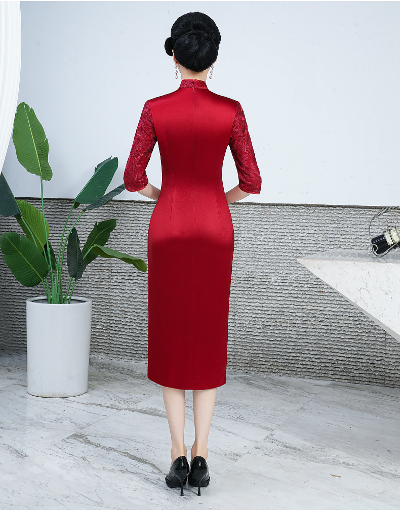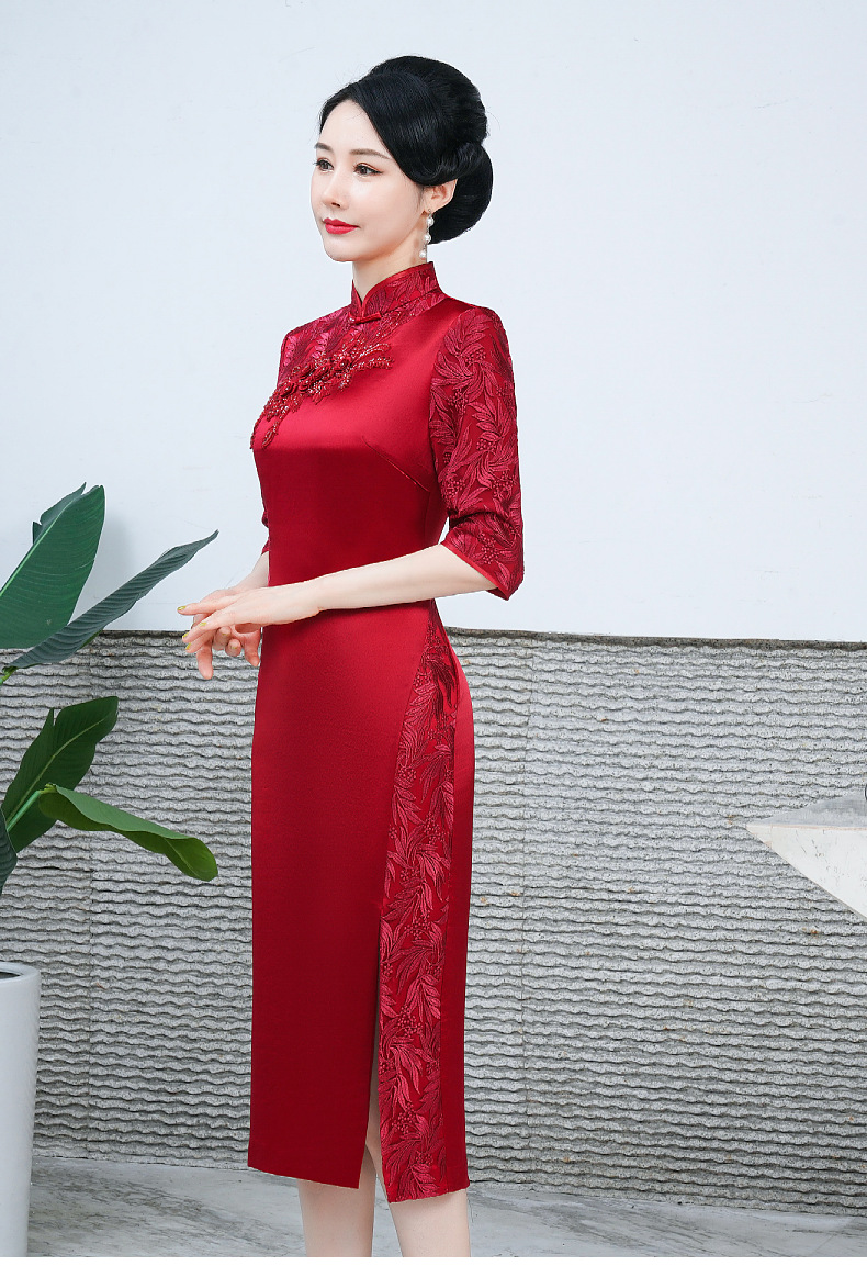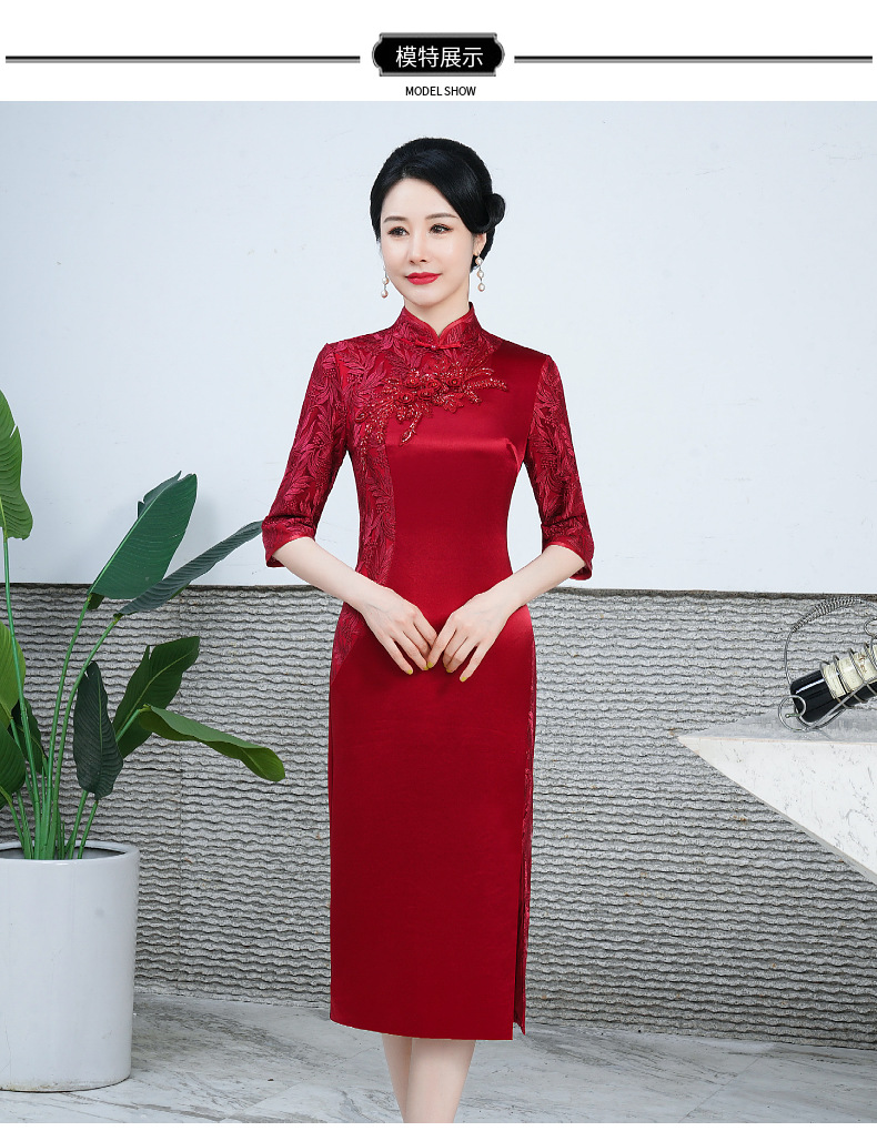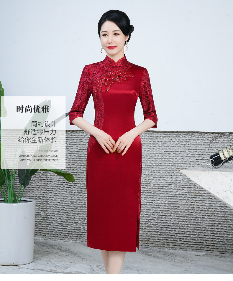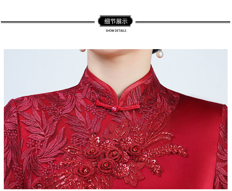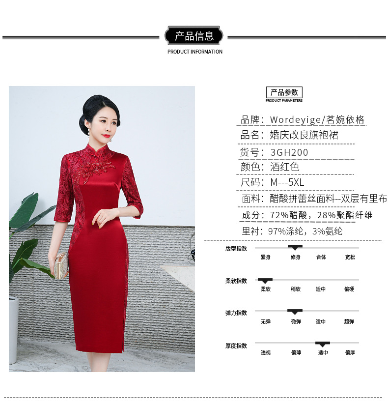 DNO-3GH200品牌醋酸旗袍刺绣婚宴礼服小个子连衣裙复古装