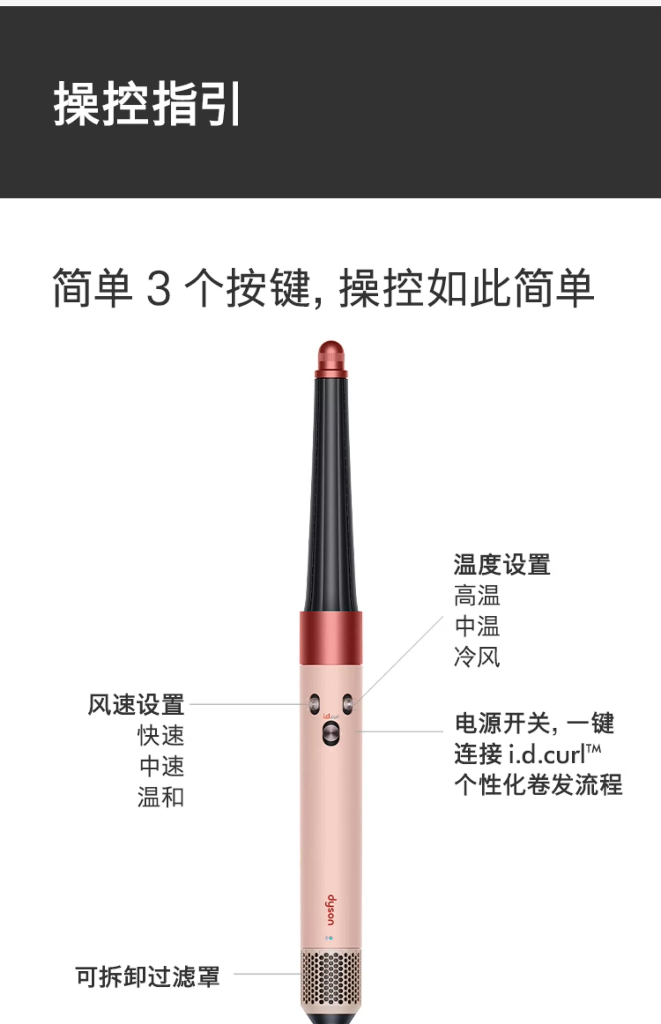Dyson戴森HS08山樱粉色智能蓝牙卷发棒卷直两用
