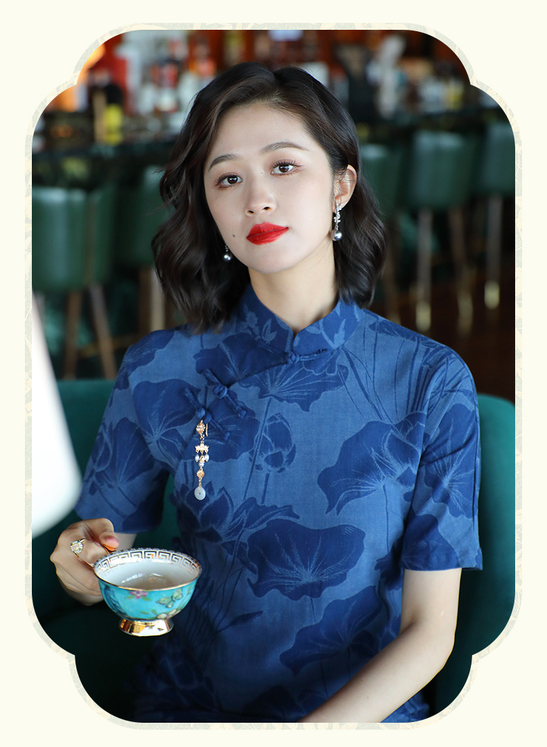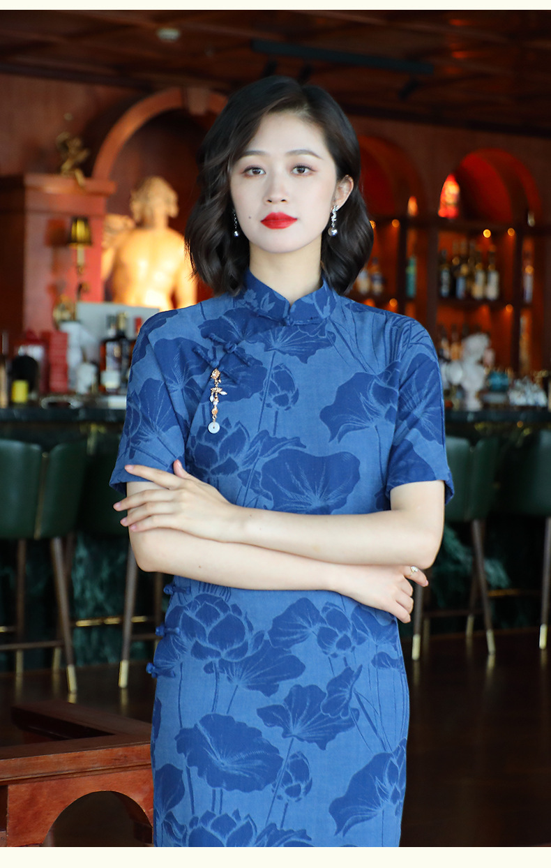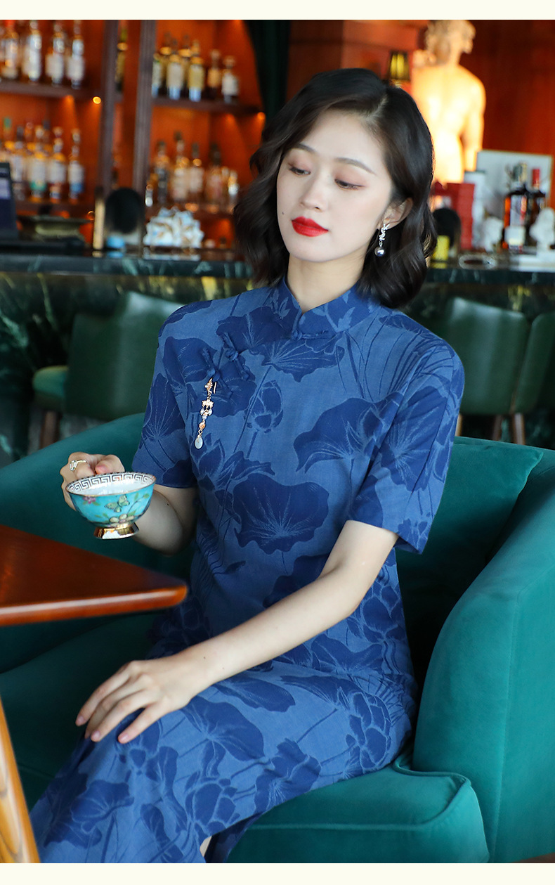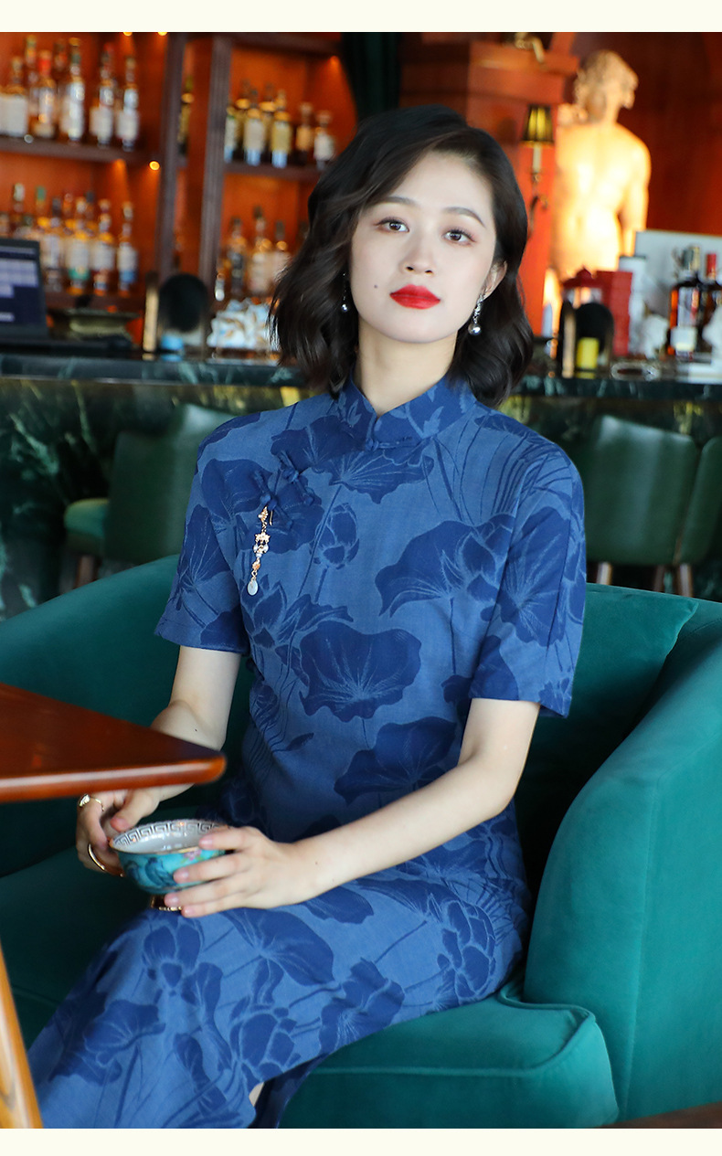OY-24281中国风女装复古夏季新款棉麻印花旗袍日常改良版连衣裙24281