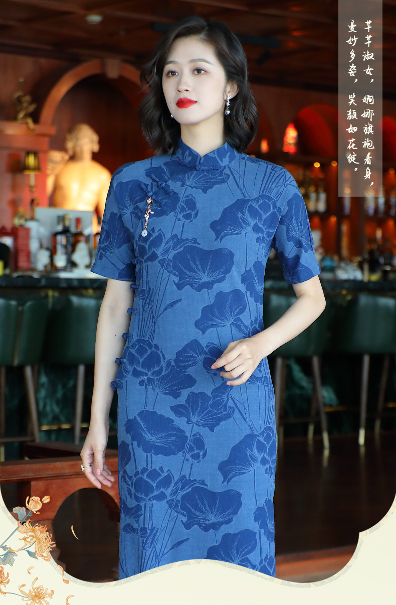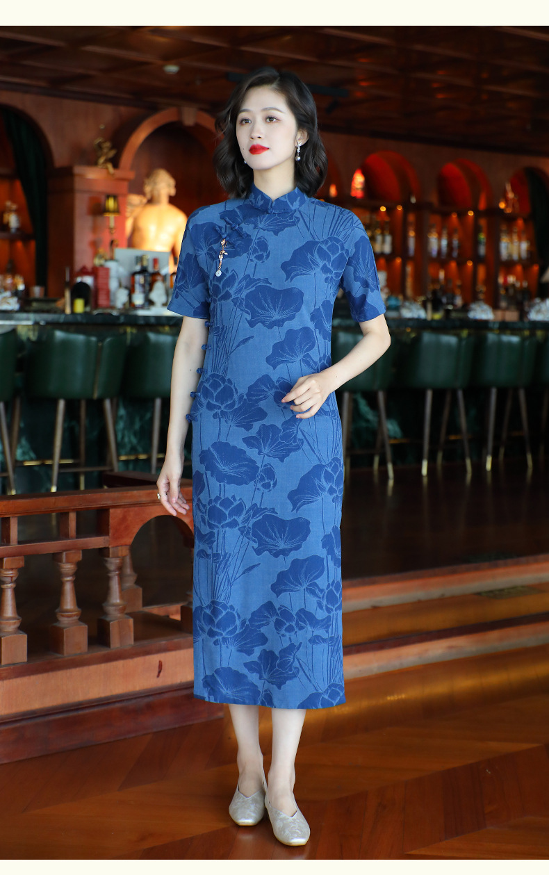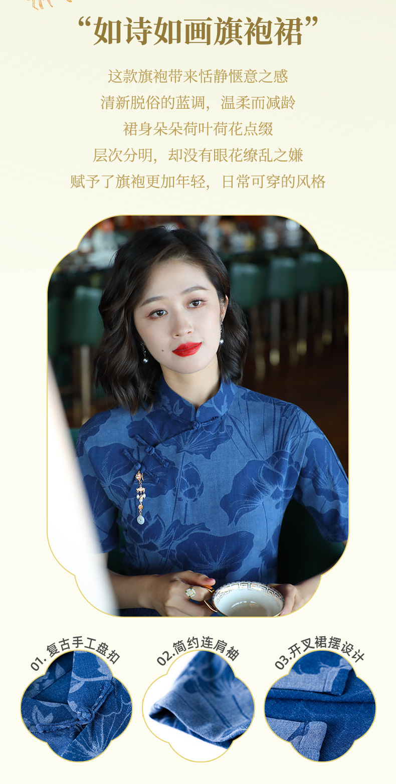 OY-24281中国风女装复古夏季新款棉麻印花旗袍日常改良版连衣裙24281