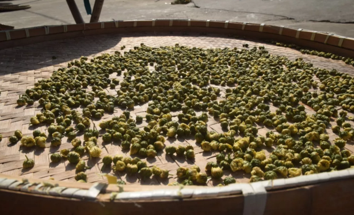 为了保证杭菊的干爽,蒸青后的杭菊要采用50度左右低温烘干,时间20小时左右。放置24小时,待返潮,再继续烘干一次。