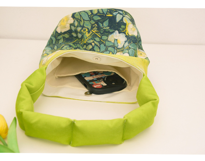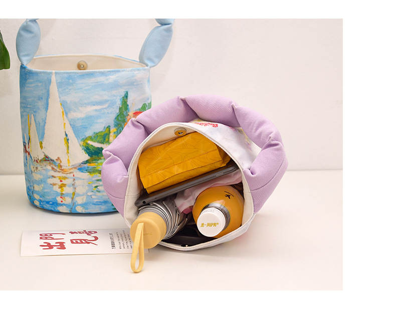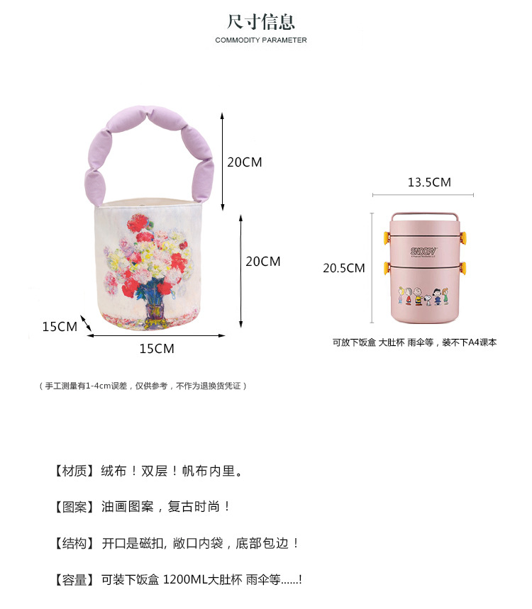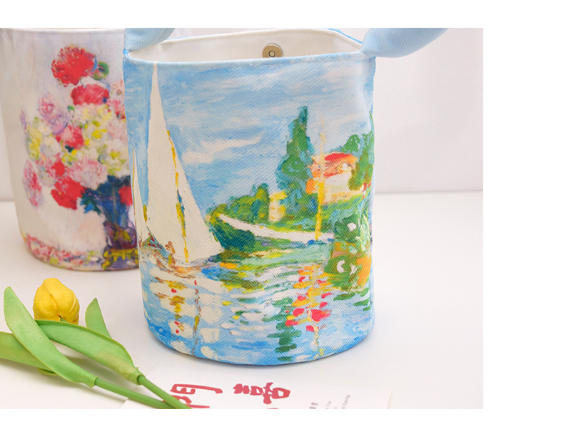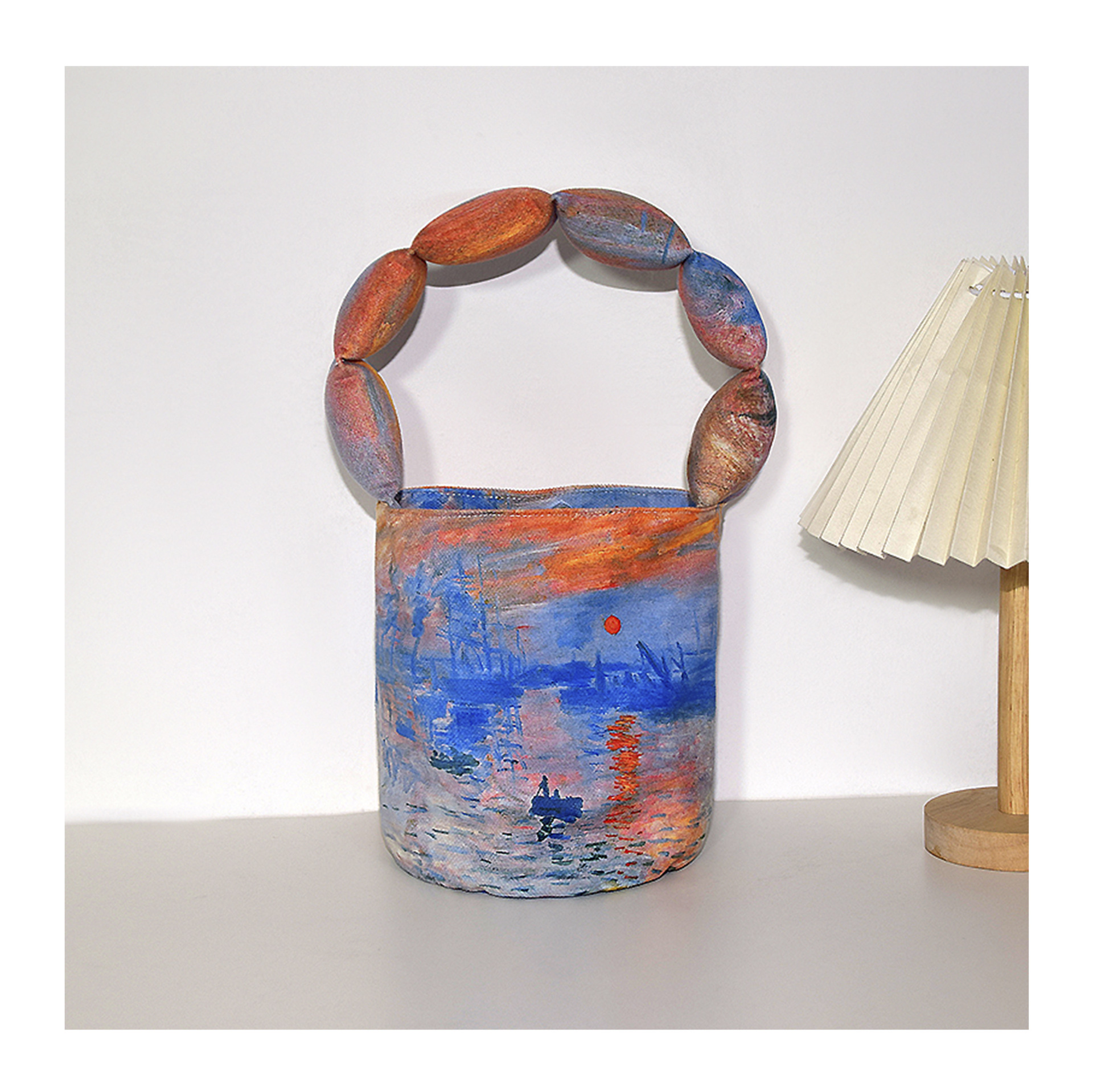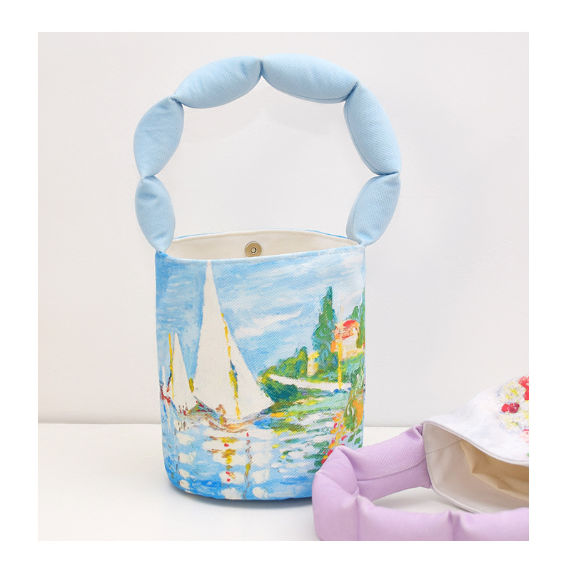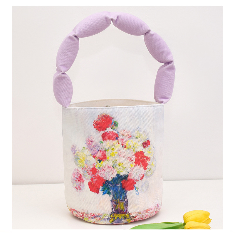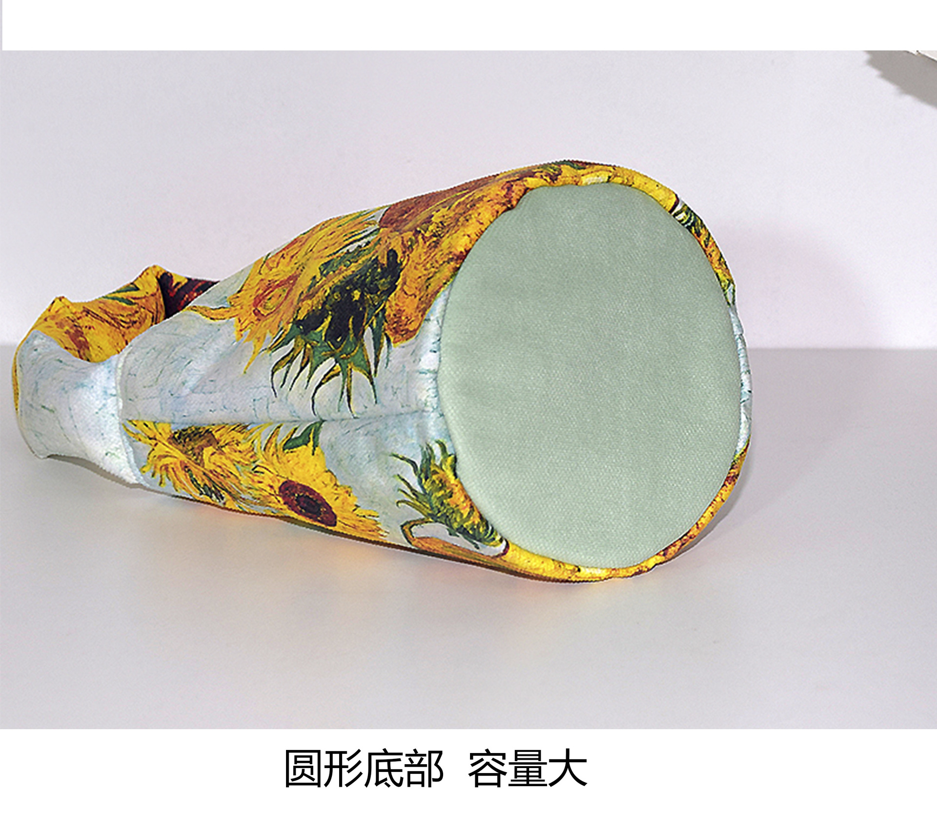 梵高莫奈油画复古野玫瑰向日葵充棉肩带水桶包 小号女便当袋饭盒手提包