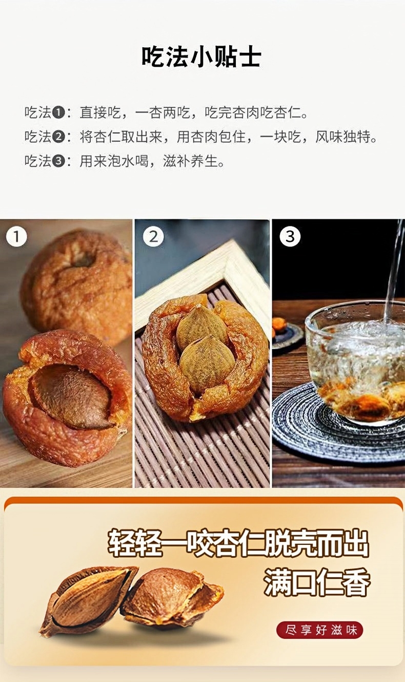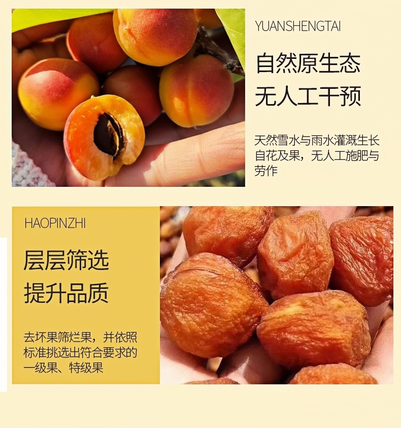 (上图)都市购实惠建议大家用手剥开果肉,咱们品控的是无农药吊干杏,有一定的小比例里面有生虫的情况,检查一下再吃更好。