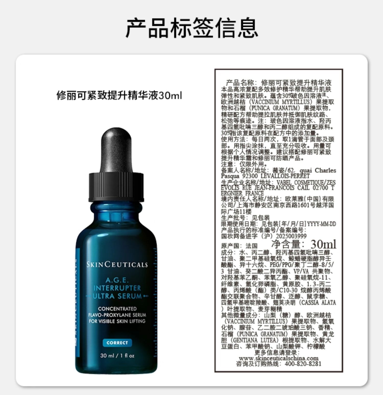 修丽可AGE精华30%玻色因溶液紧致提升抗皱抗老30ml