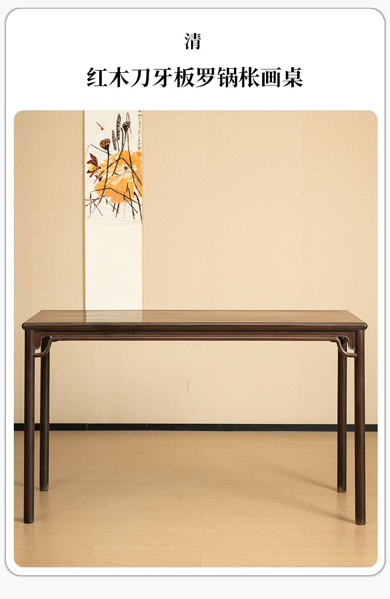 清 红木刀牙板罗锅枨画桌
