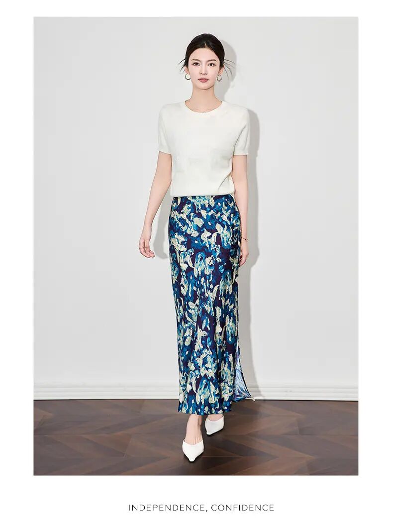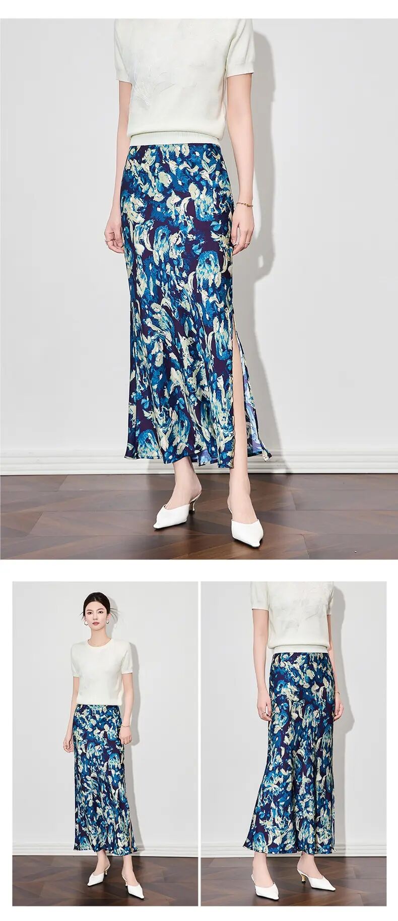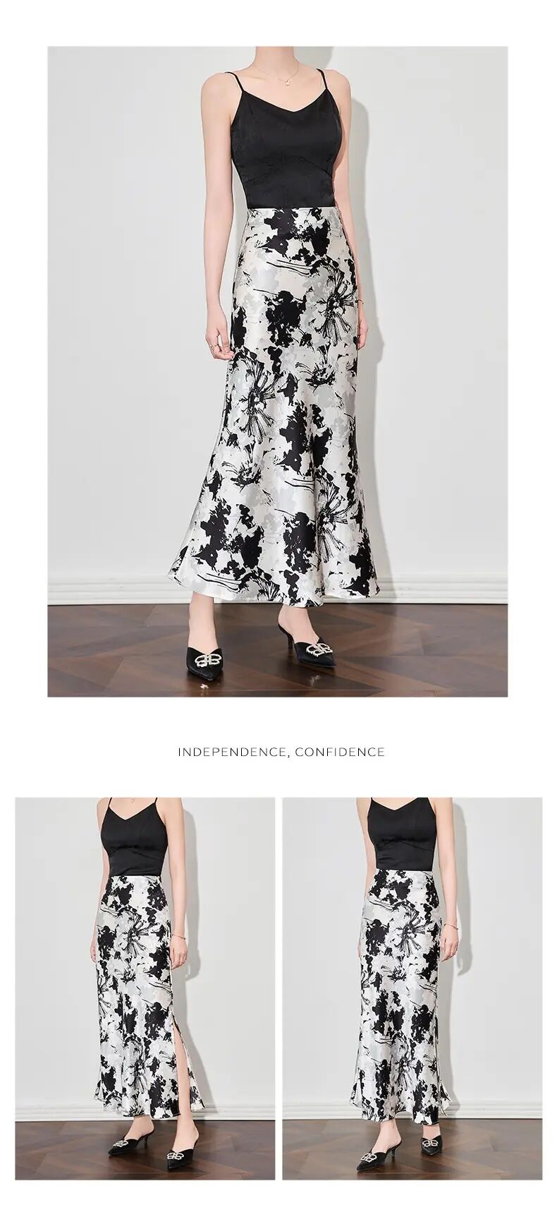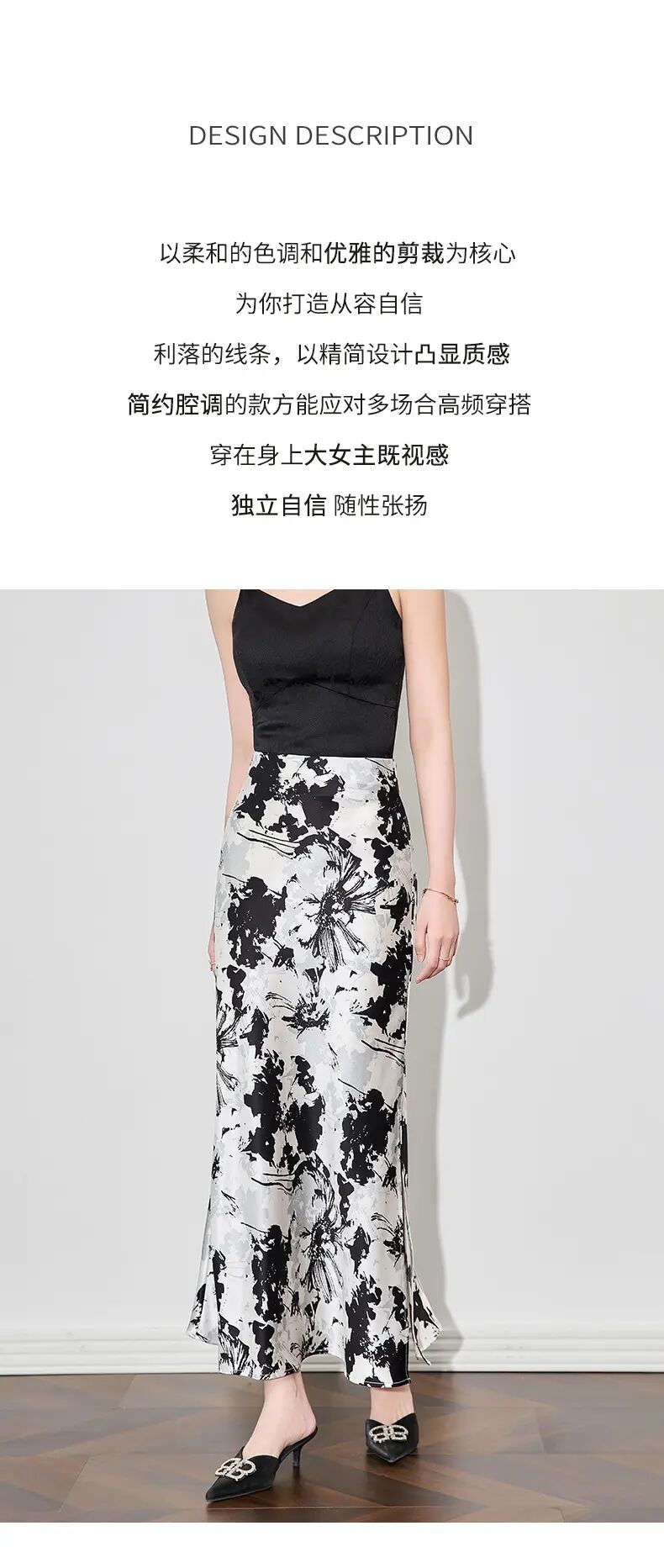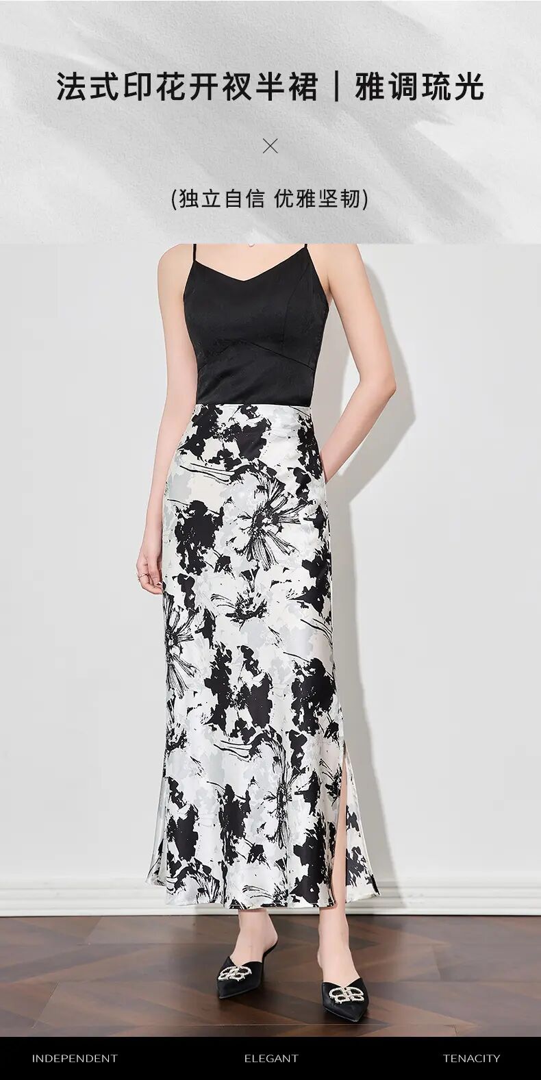 【高货wl】全新升级【铂金会员257/天猫349/差价92】(92318) 洛诗琳25新款法式优雅精致时髦复古印花醋酸缎开衩半身裙