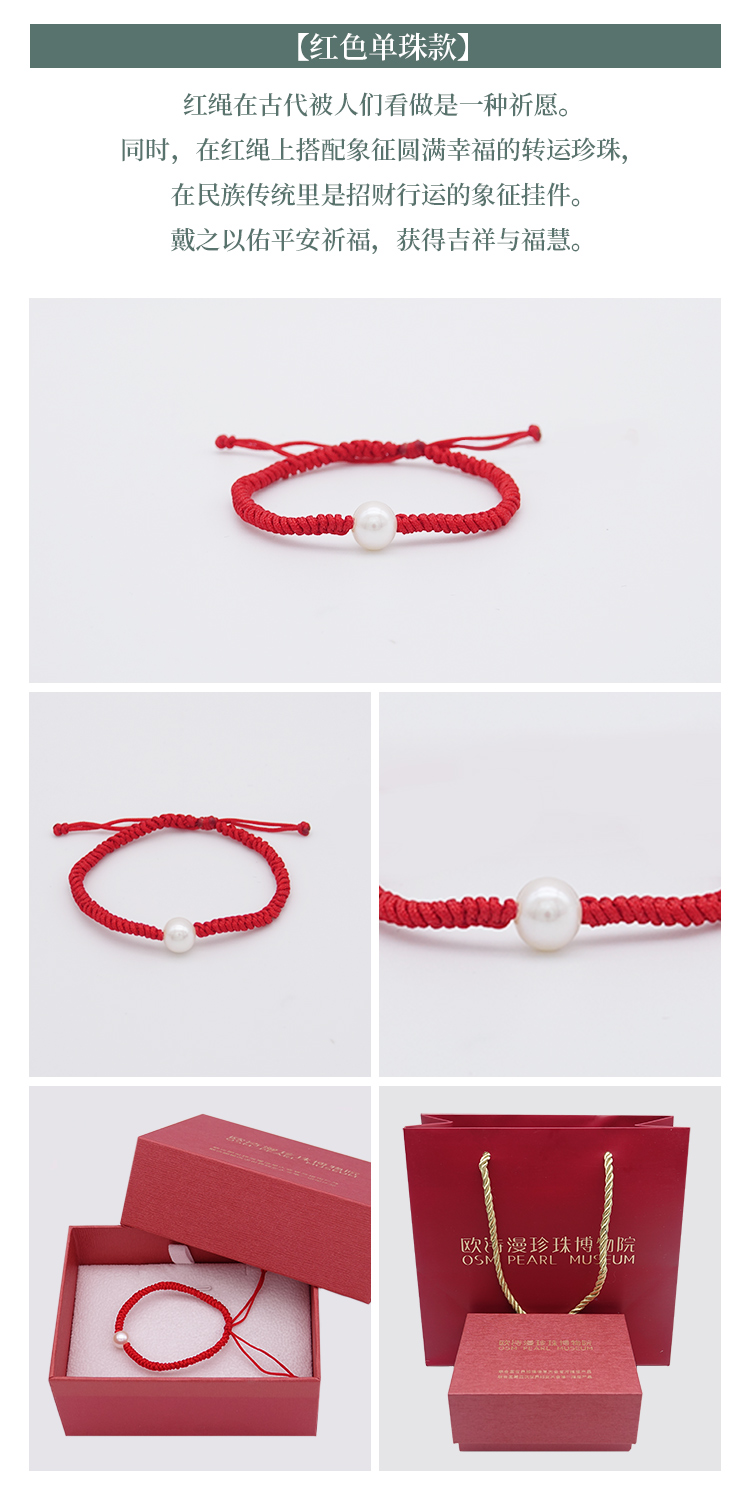 珍珠转运手链红绳手工编织 天然淡水珍珠【配红色礼品盒+金色拎袋】