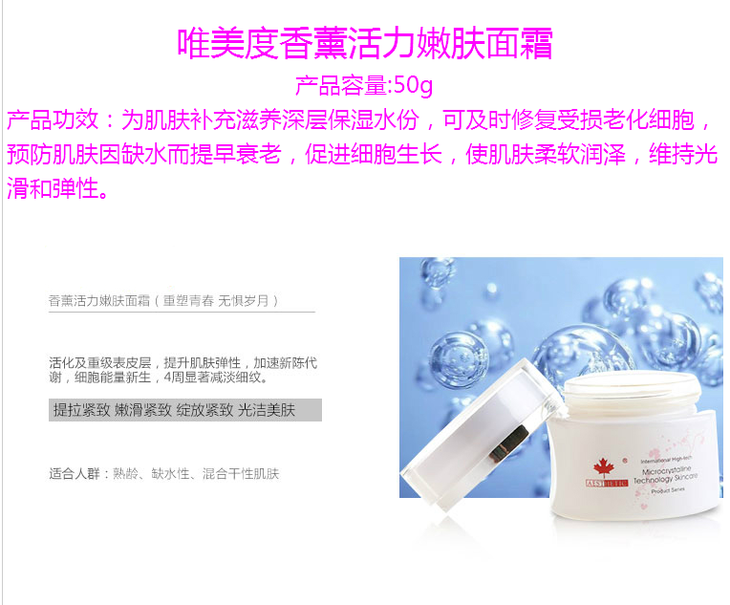 加拿大唯美度香薰活力嫩肤面霜 保湿滋养补水 正品专柜包邮