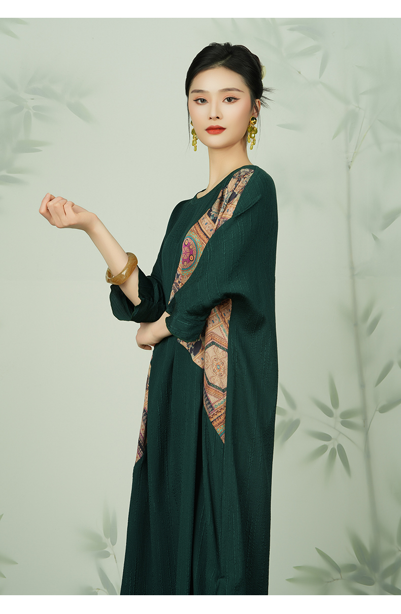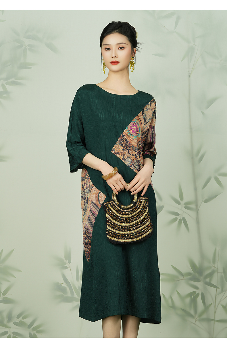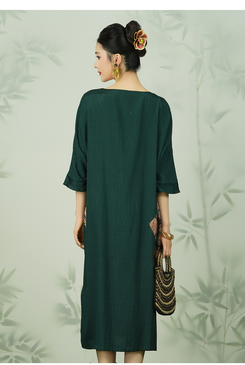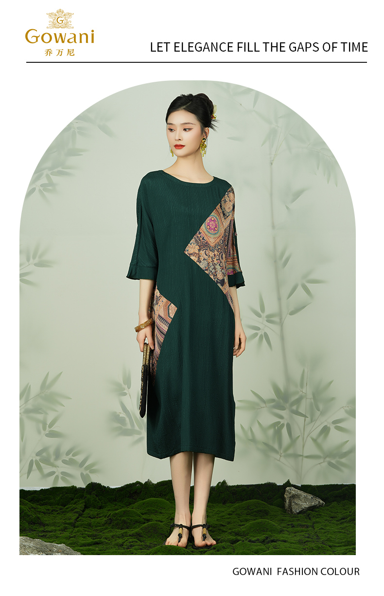 乔万尼新款真丝连衣裙高端桑蚕丝复古拼接EI2E741