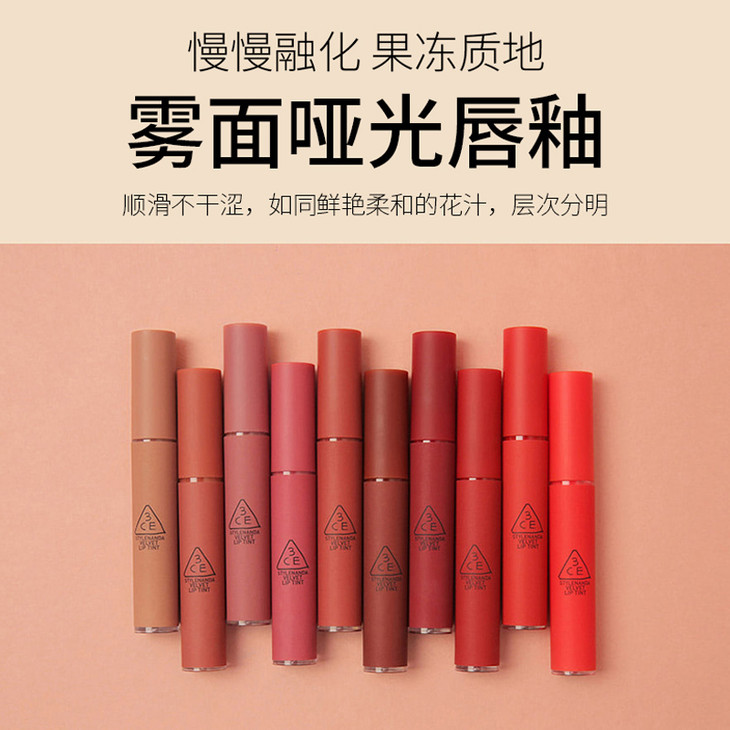 韩国 3CE 唇釉口红丝绒哑光雾面唇彩 Going-Right南瓜色【香港直邮】
