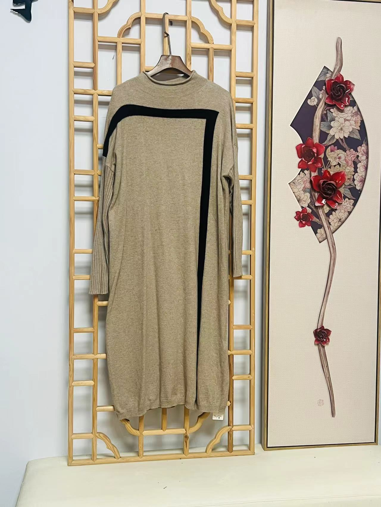 欧洲站2024秋冬新款时尚高领长袖连衣裙 中长款打底针织裙CN260DC149
