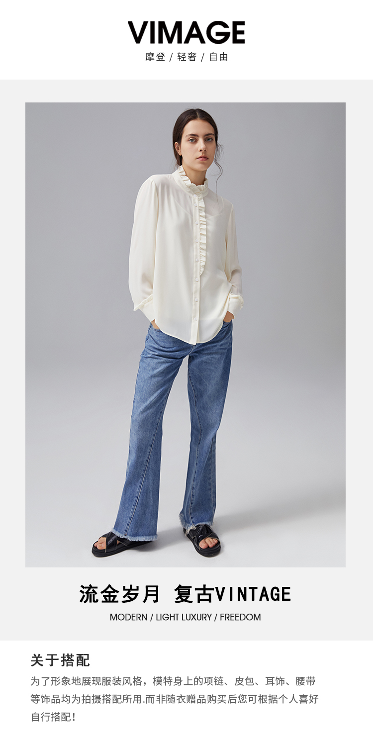 VIMAGE纬漫纪春夏季新款文艺气质通勤薄款衬衫上衣女V1509127