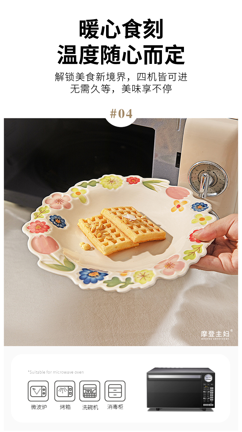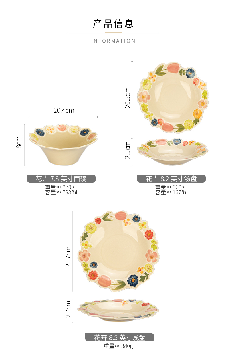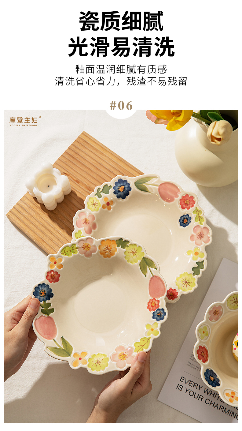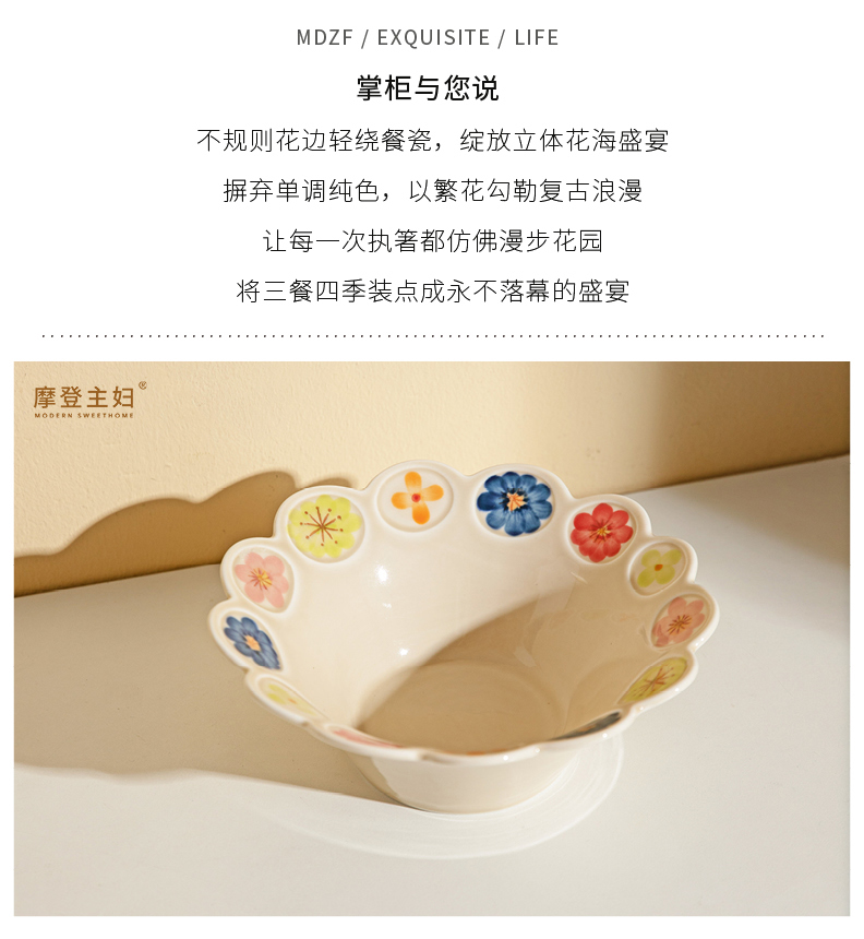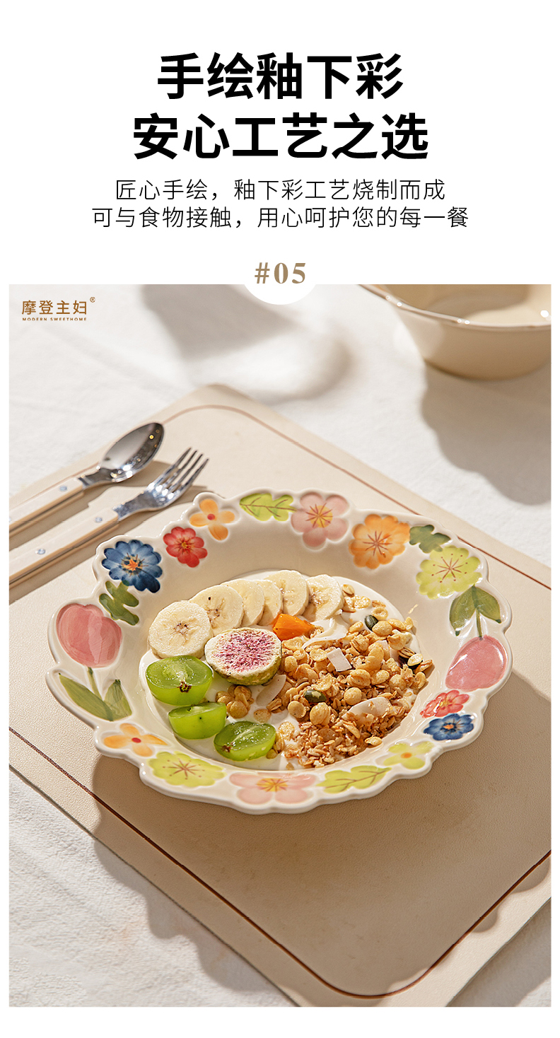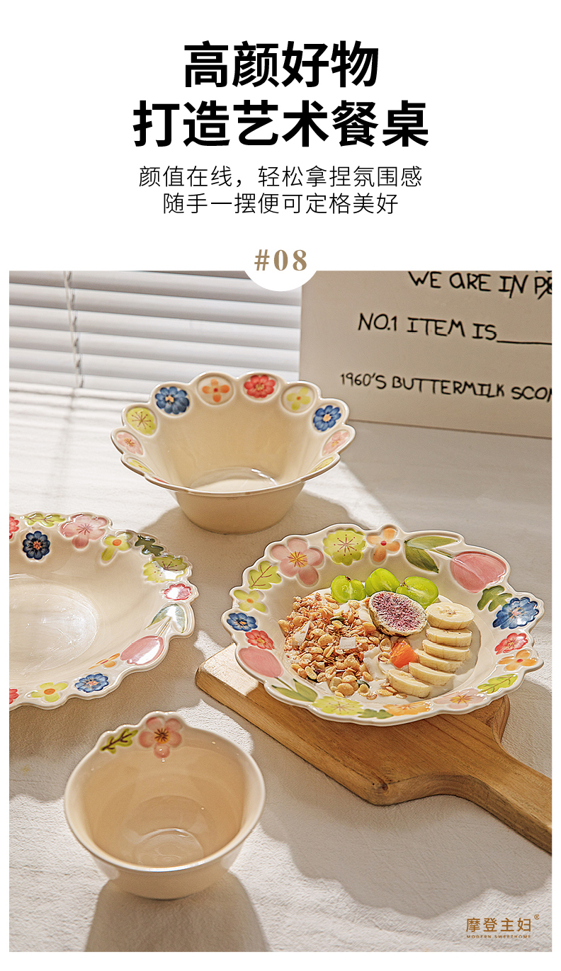 摩登主妇漂亮餐具盘子家用碗具高颜值饭碗草帽盘浮雕花卉餐盘汤碗