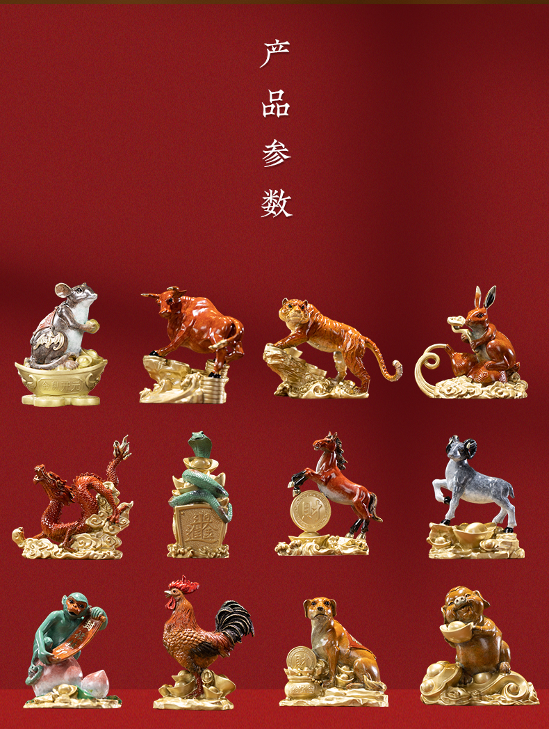 朱炳仁铜 十二生肖彩色铜雕办公桌摆件 工艺品办公桌家居摆件
