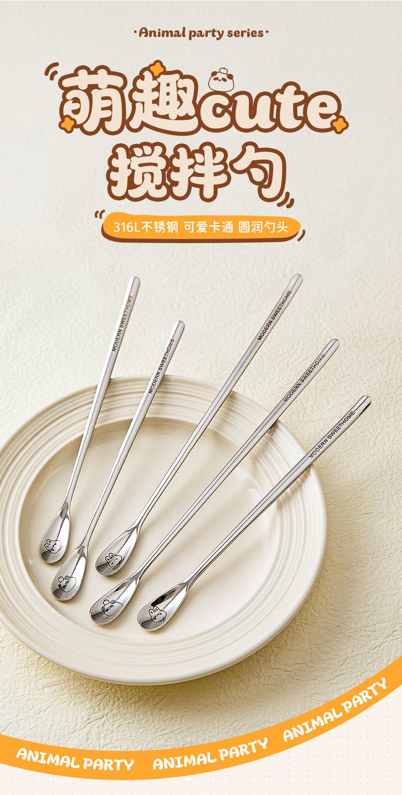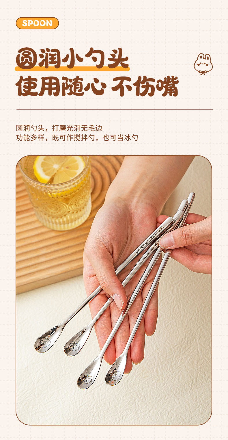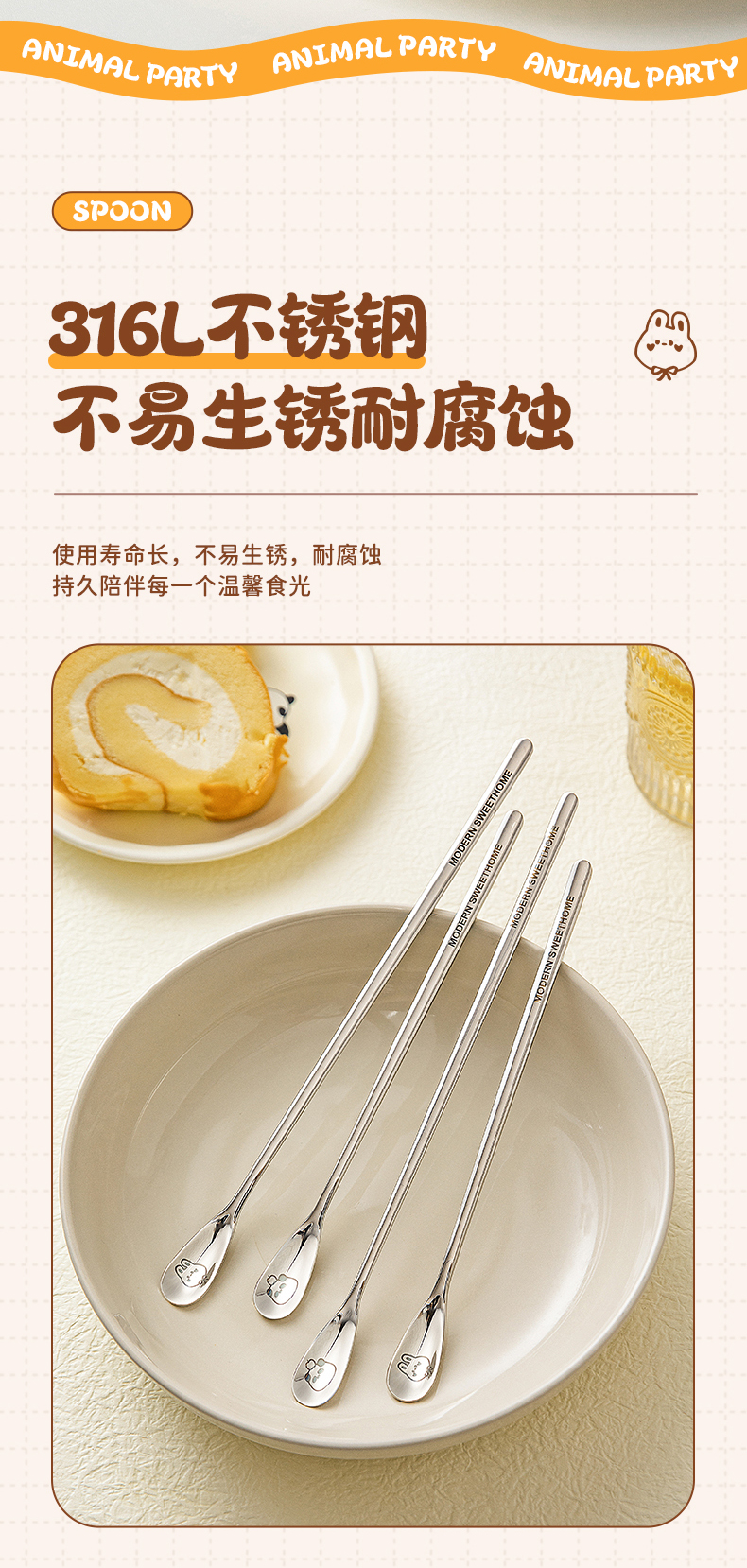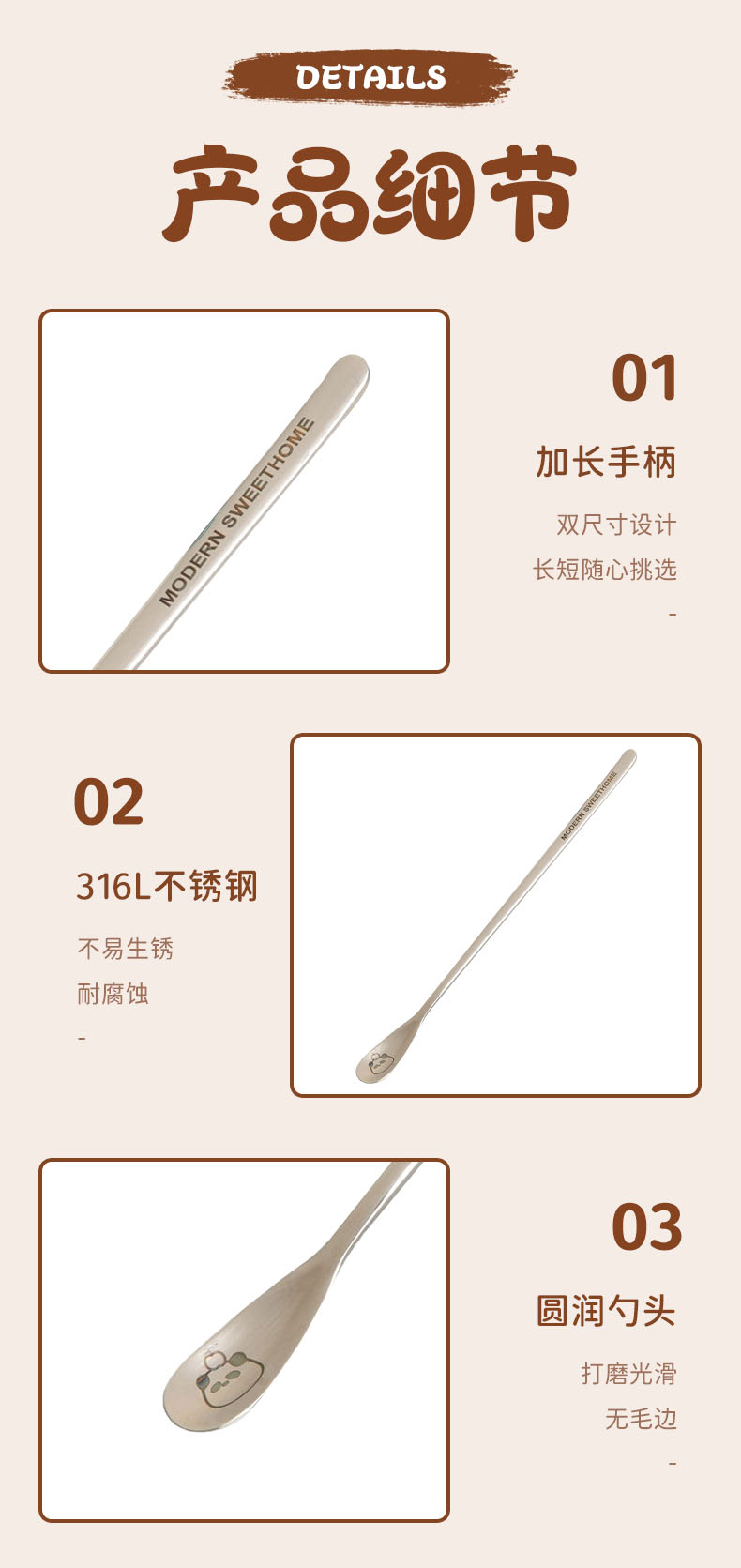 摩登主妇316L不锈钢咖啡勺长柄搅拌勺精致蜂蜜勺杯子用迷你小勺子