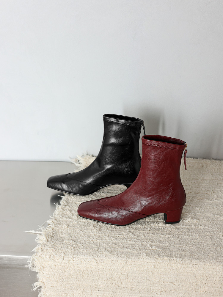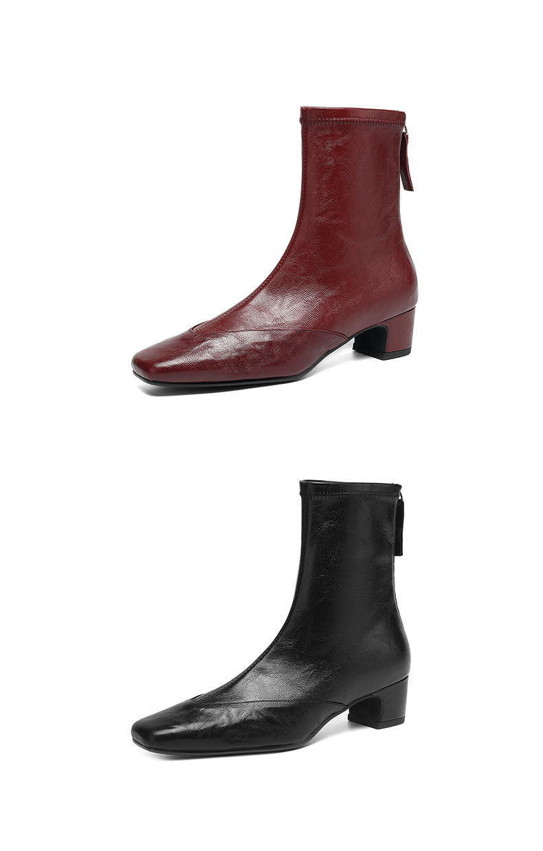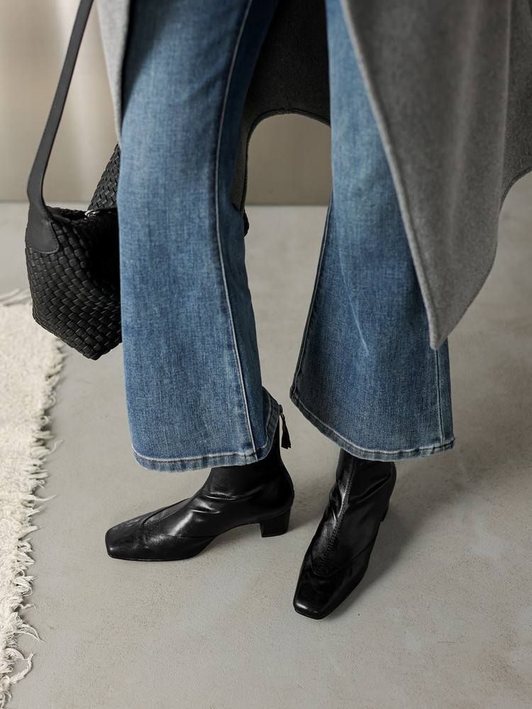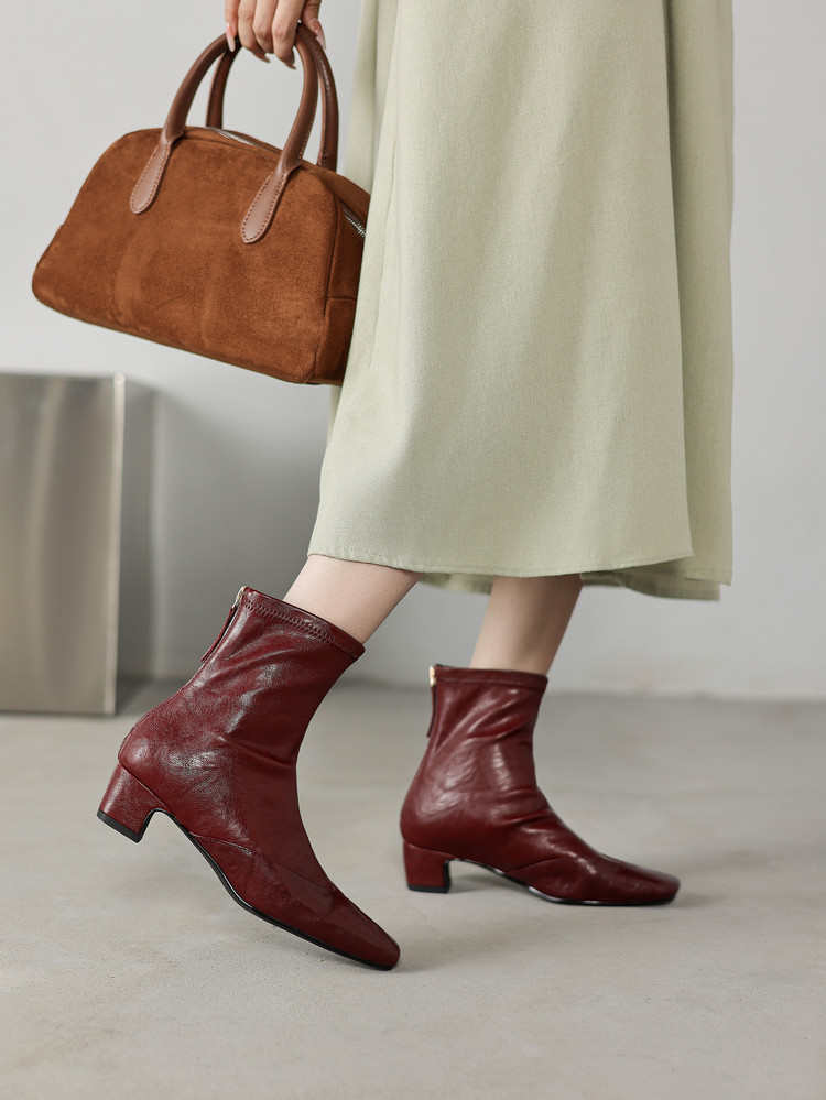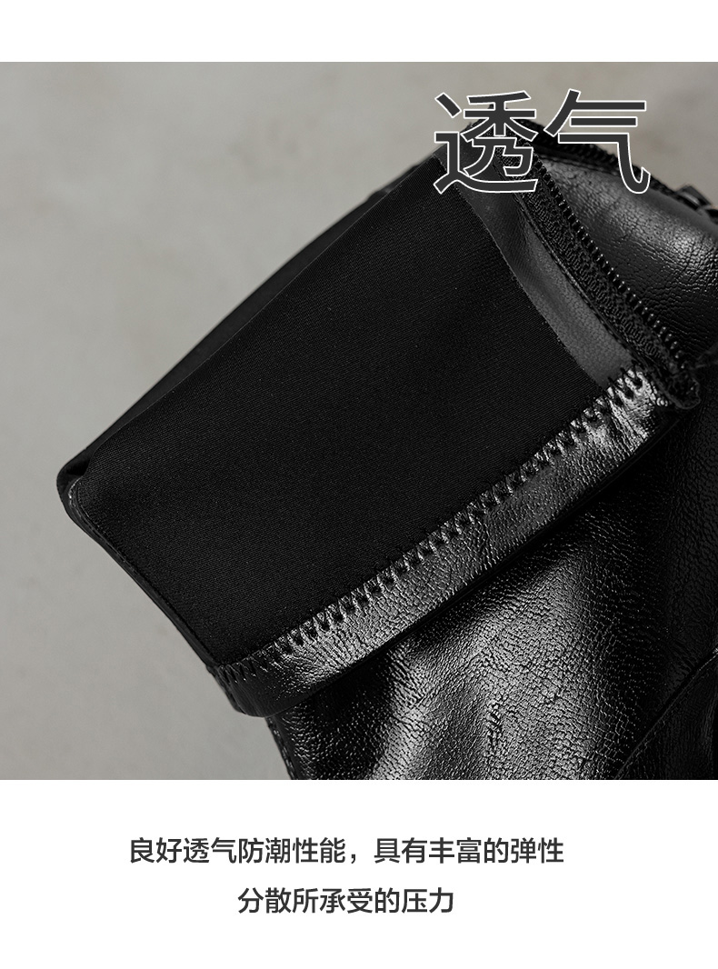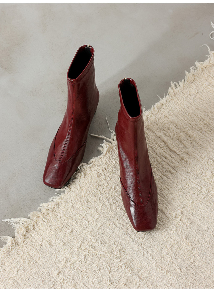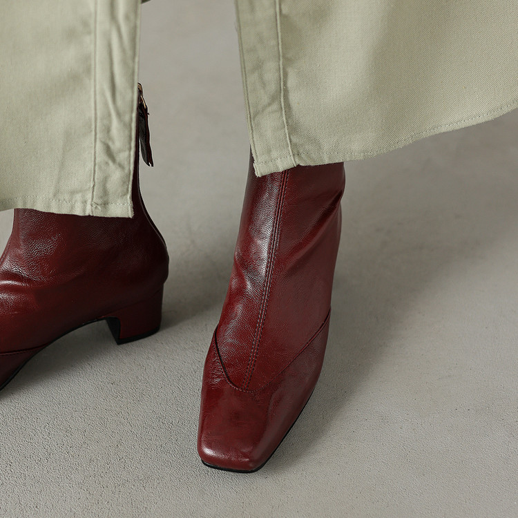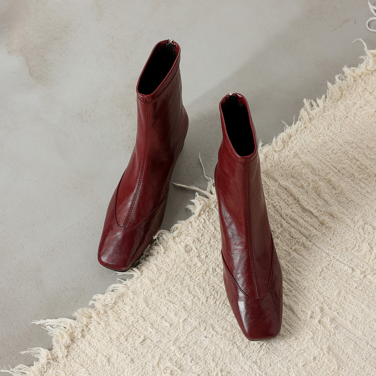 【预售5天】法式气质小踝靴秋冬方头粗跟拼接弹力短筒真皮瘦瘦靴WC&M3600