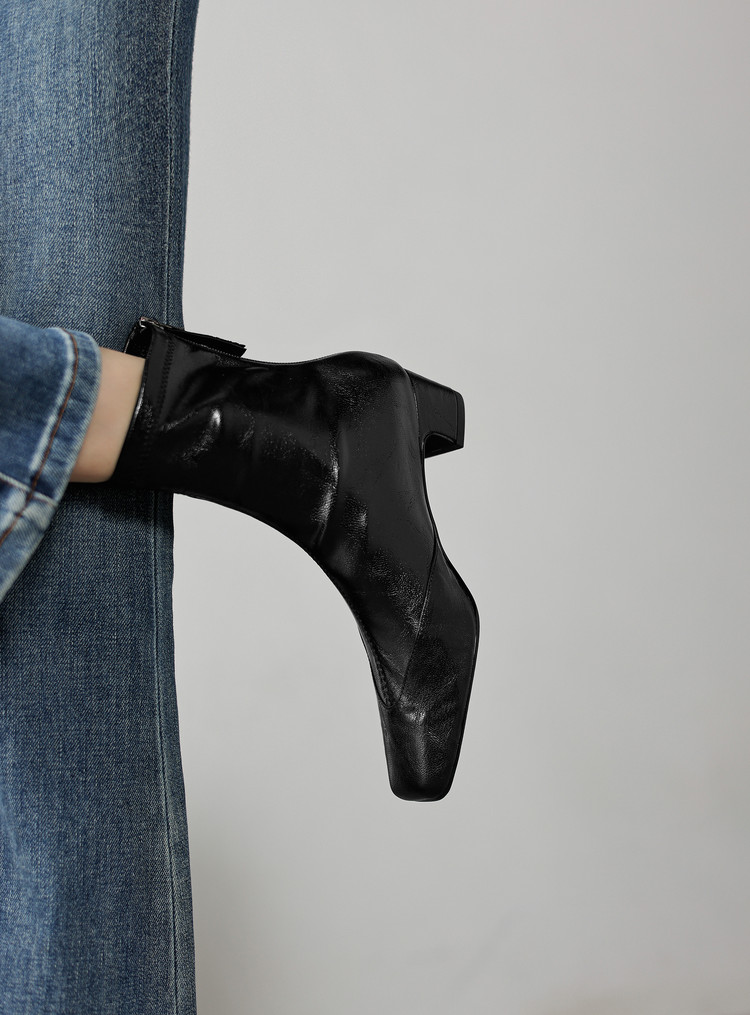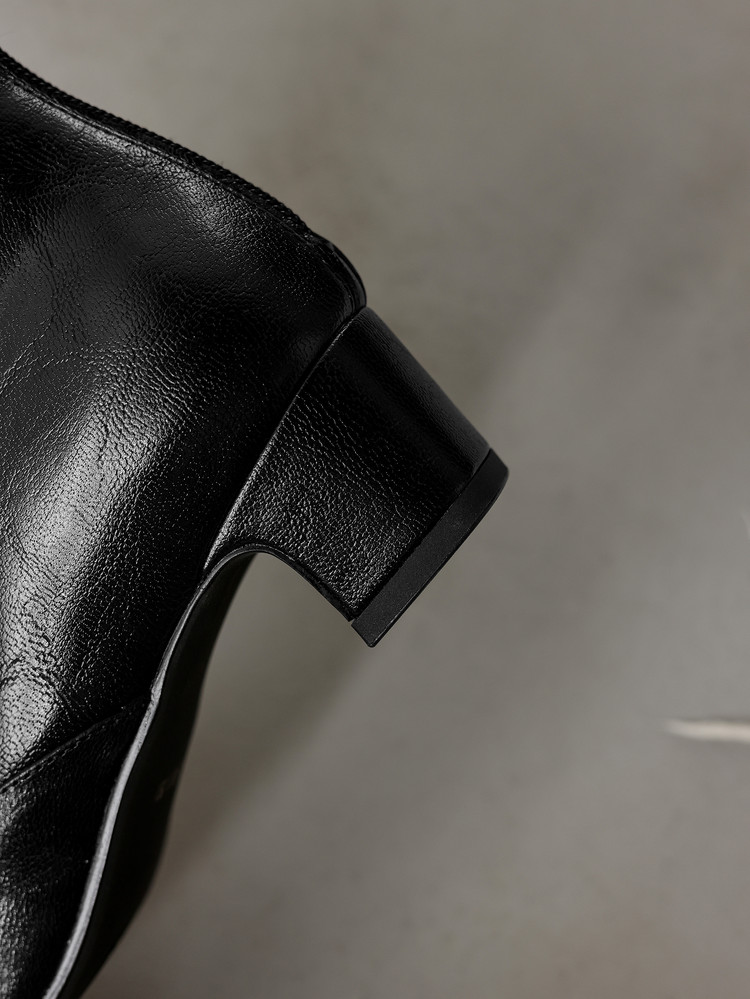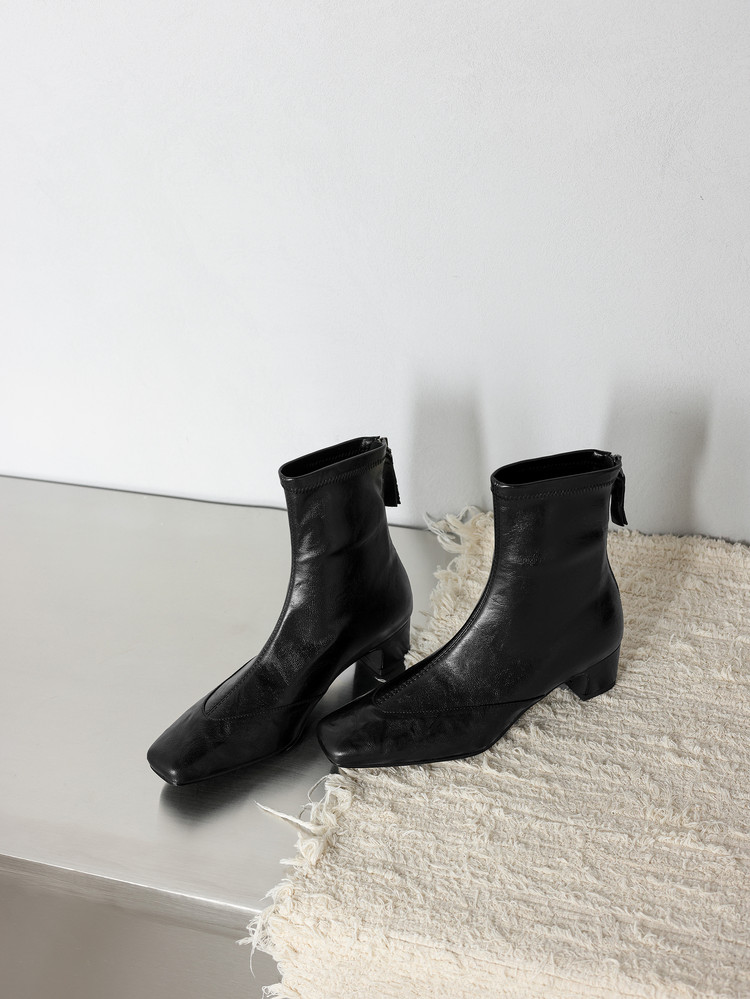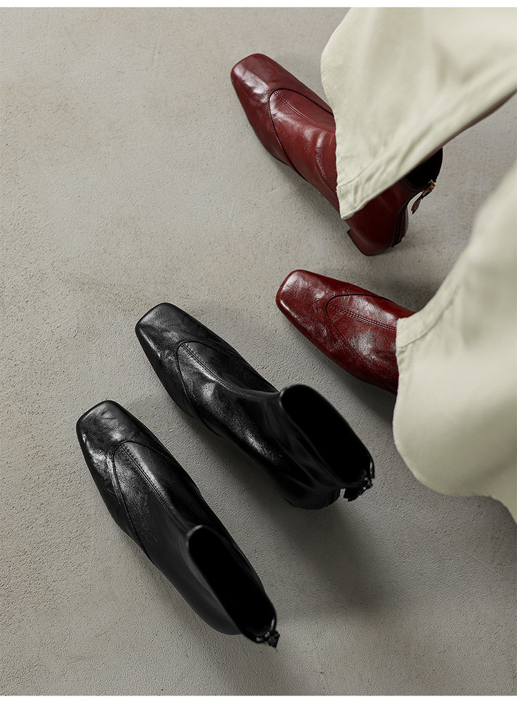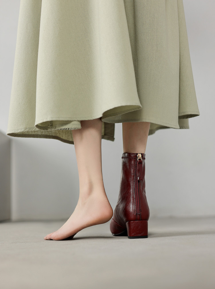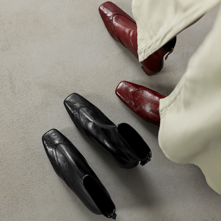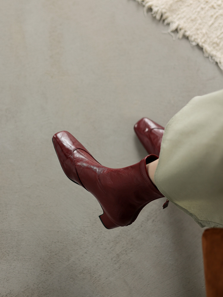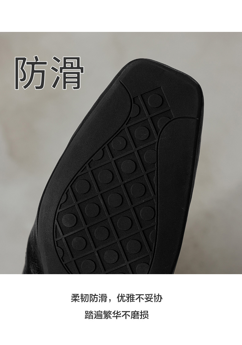 【预售5天】法式气质小踝靴秋冬方头粗跟拼接弹力短筒真皮瘦瘦靴WC&M3600