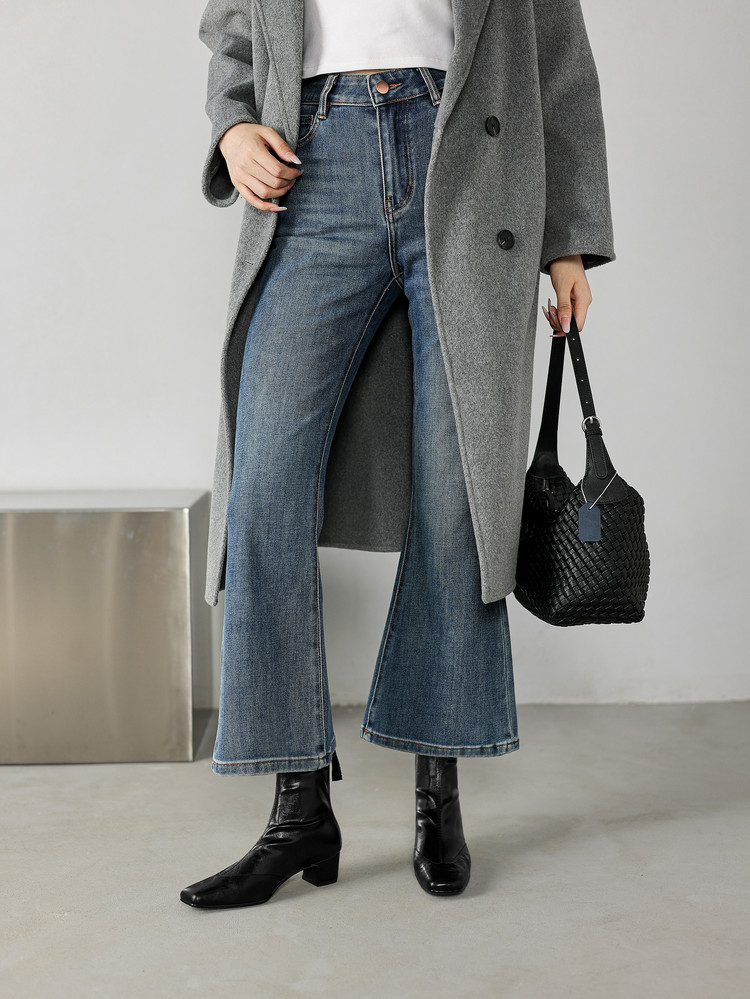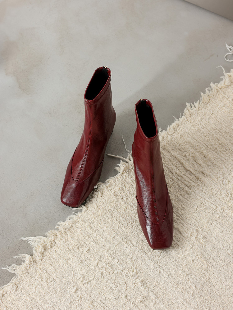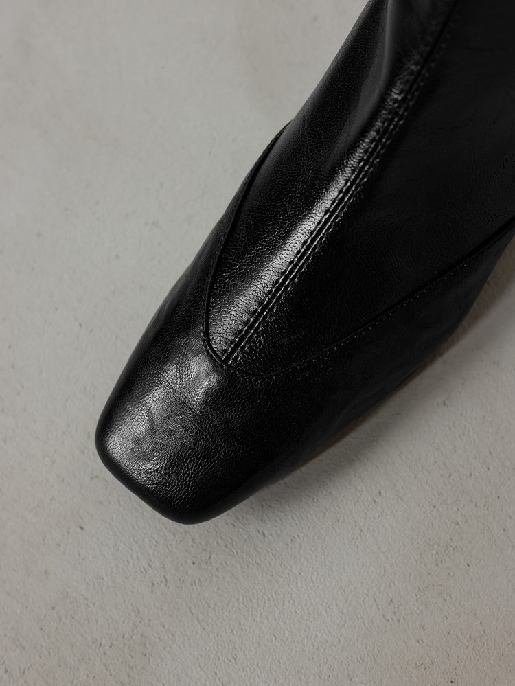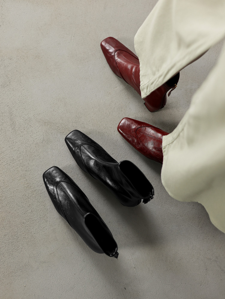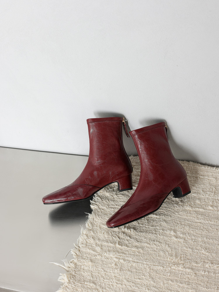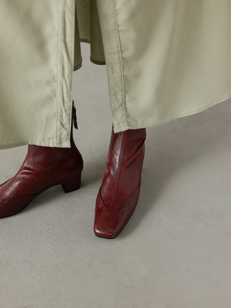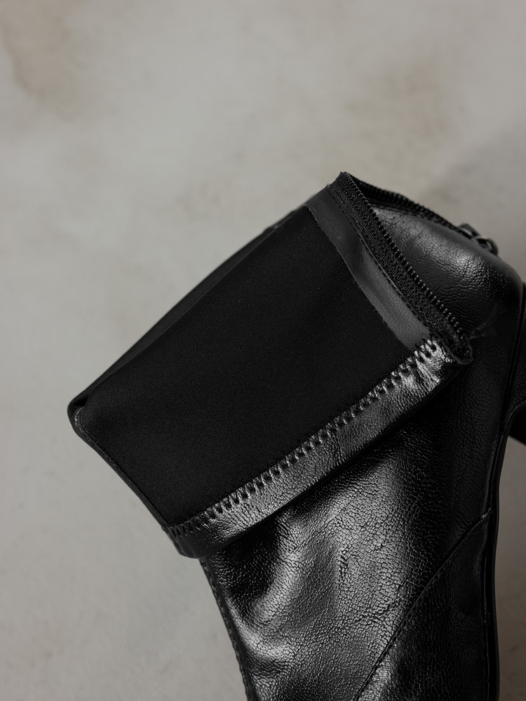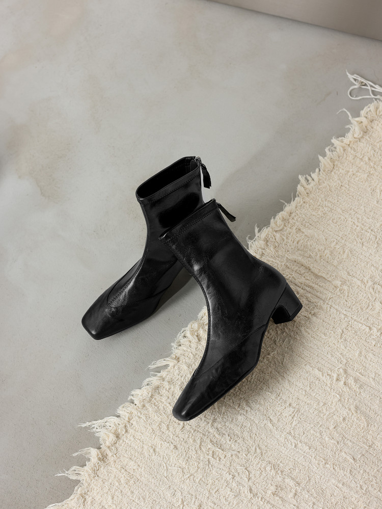 【预售5天】法式气质小踝靴秋冬方头粗跟拼接弹力短筒真皮瘦瘦靴WC&M3600