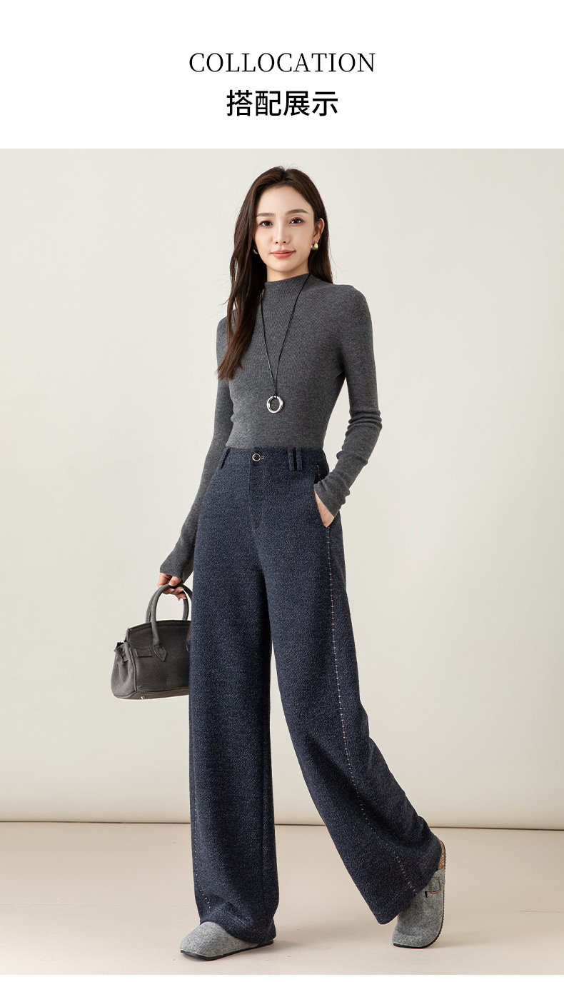 百媚生 复古针织羊毛阔腿裤女秋冬新款直筒长裤85697 商品图3