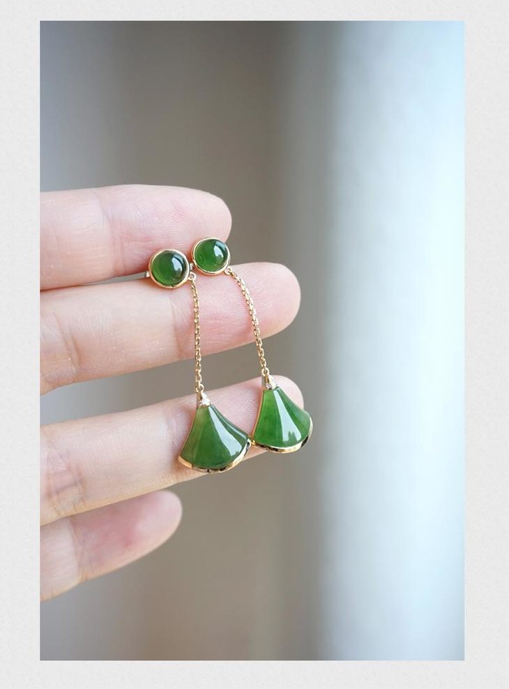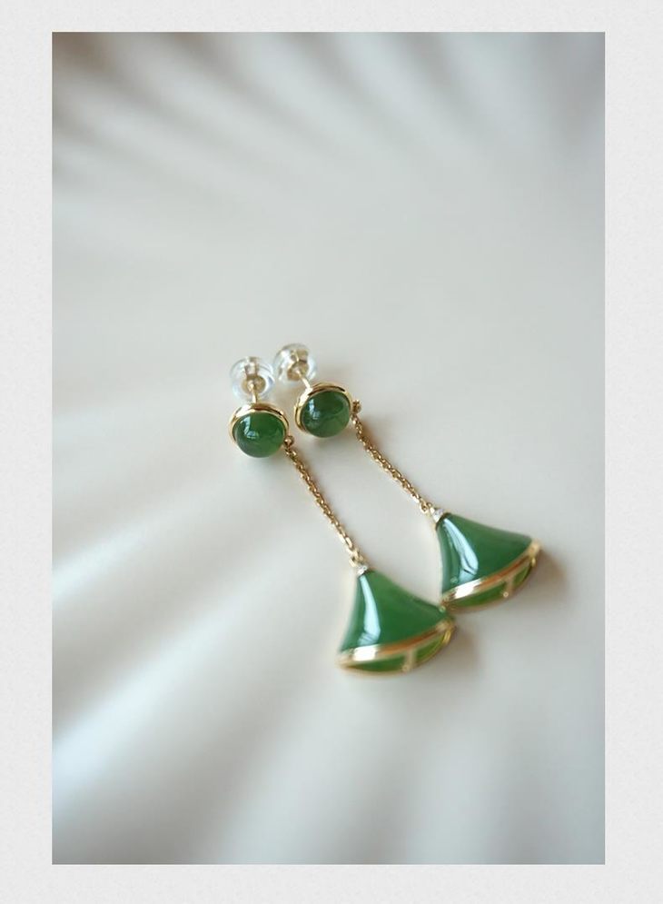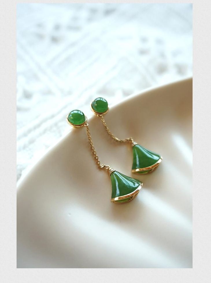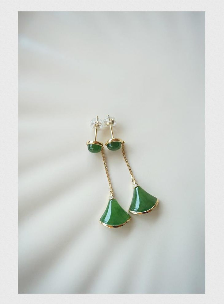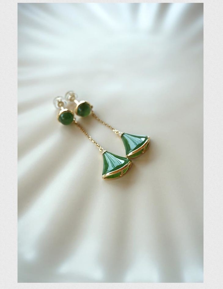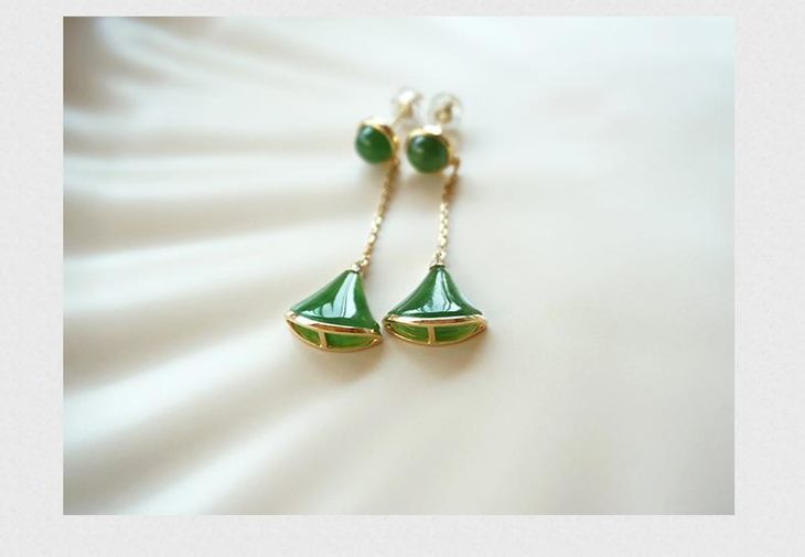 TZM-s925纯银镶嵌玉髓碧绿小扇子气纯小清新耳坠