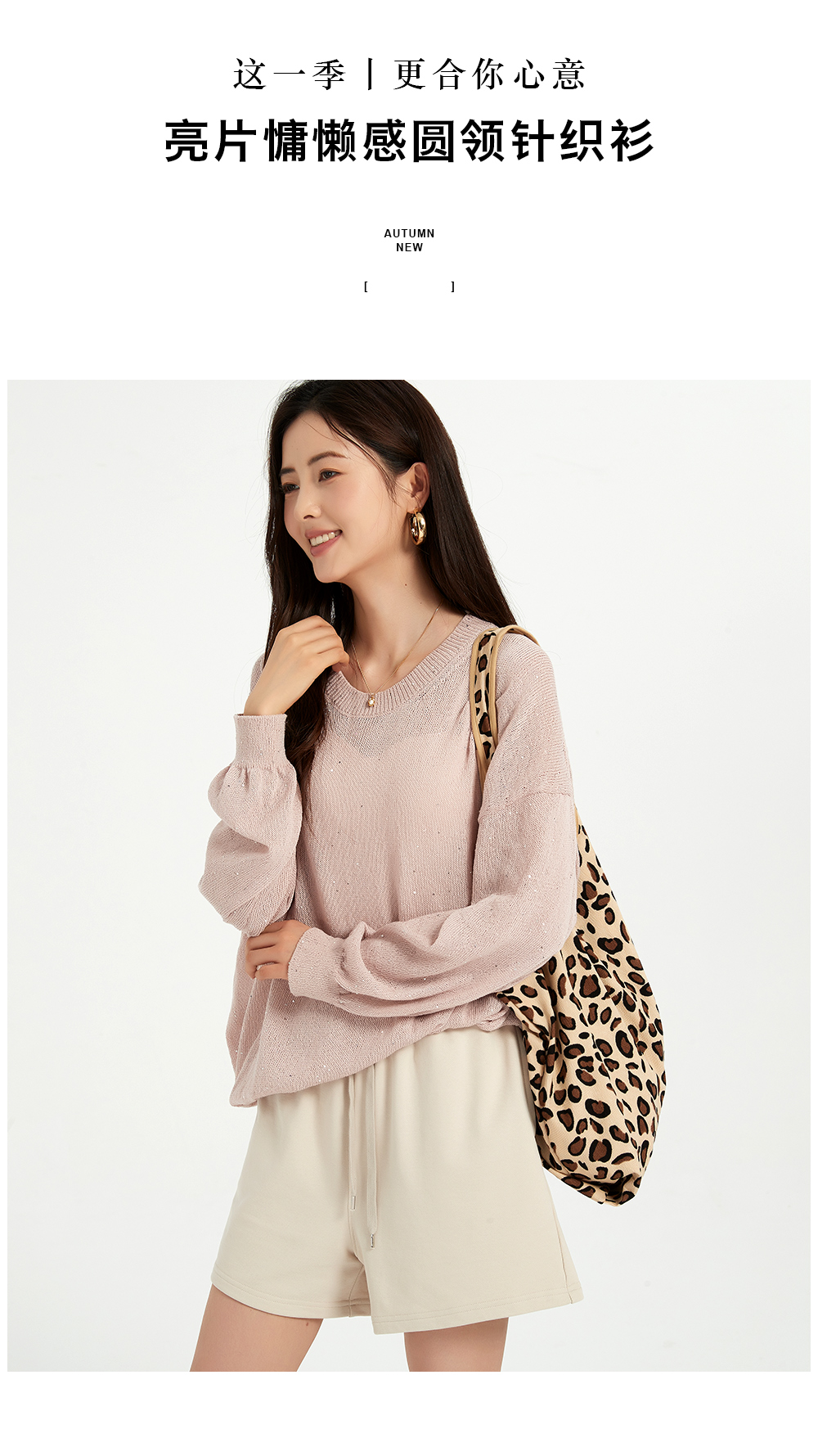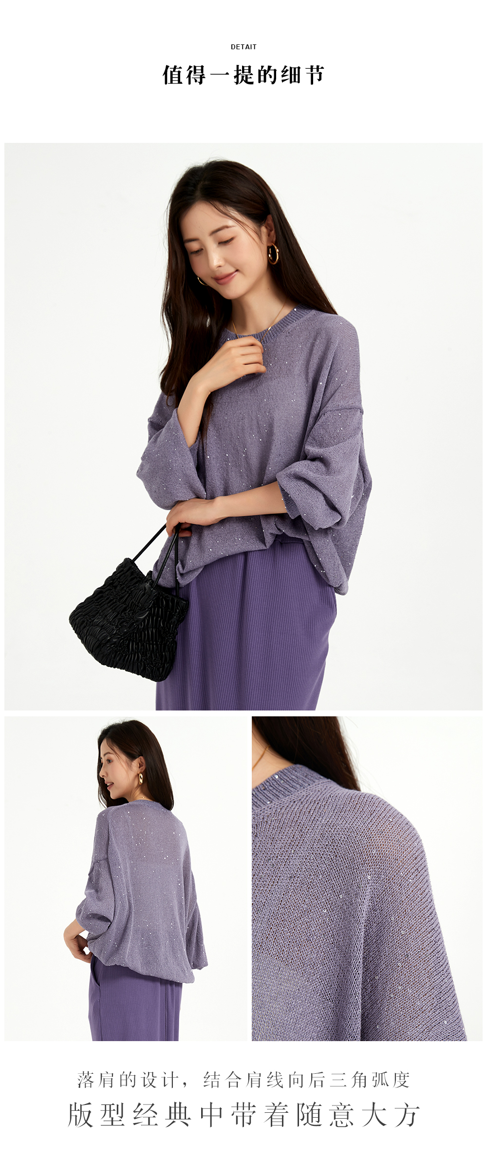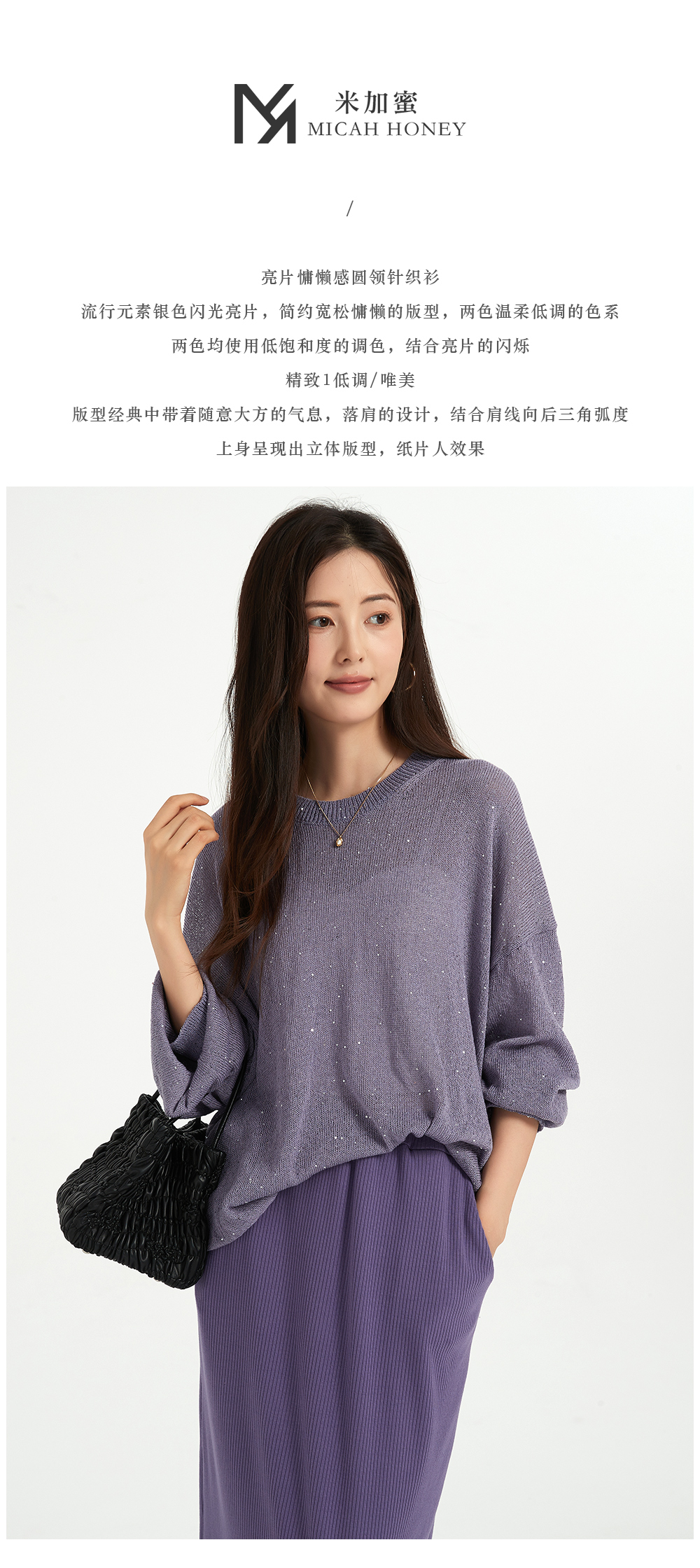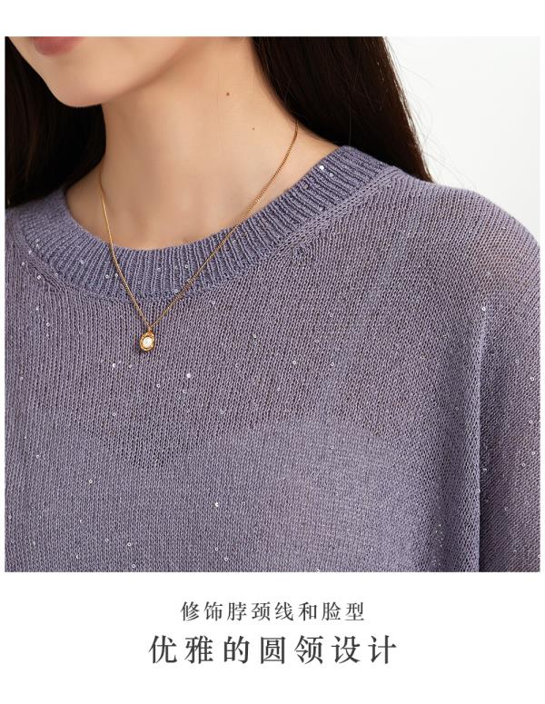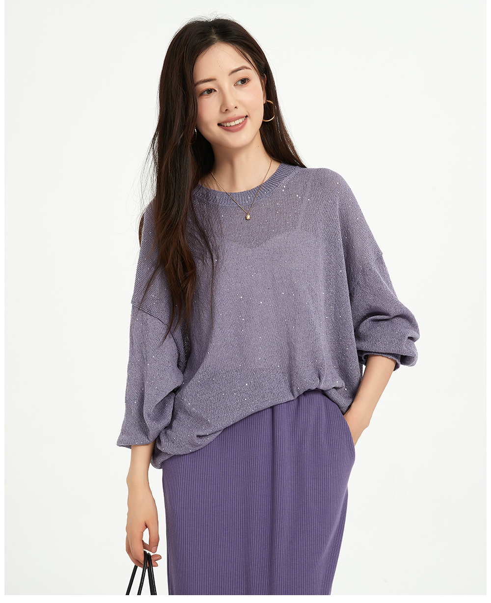 米加蜜慵懒感亮片落肩针织衫