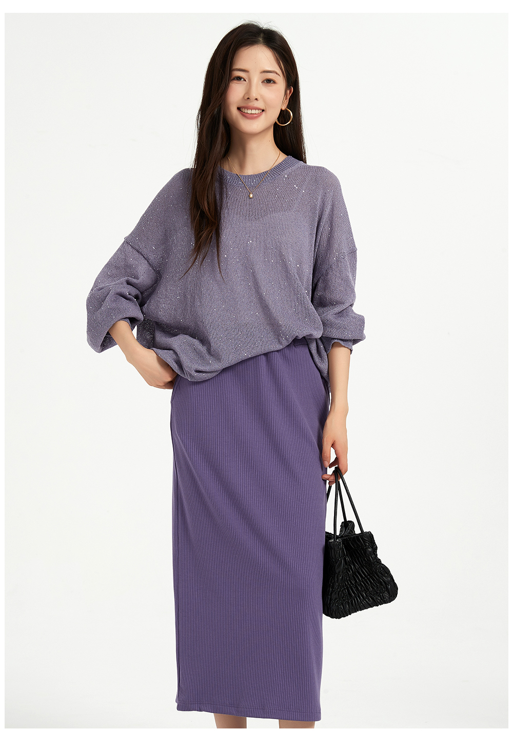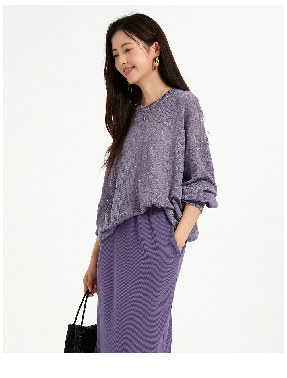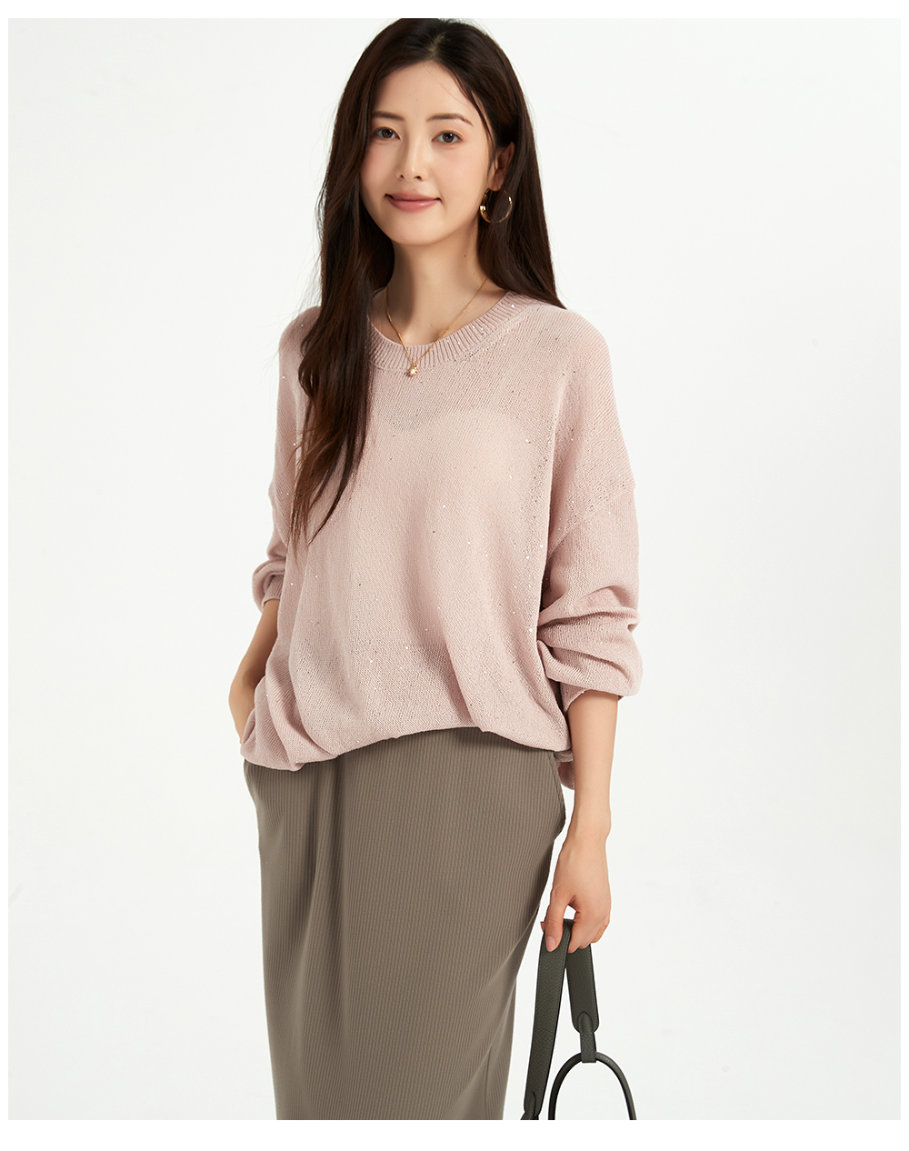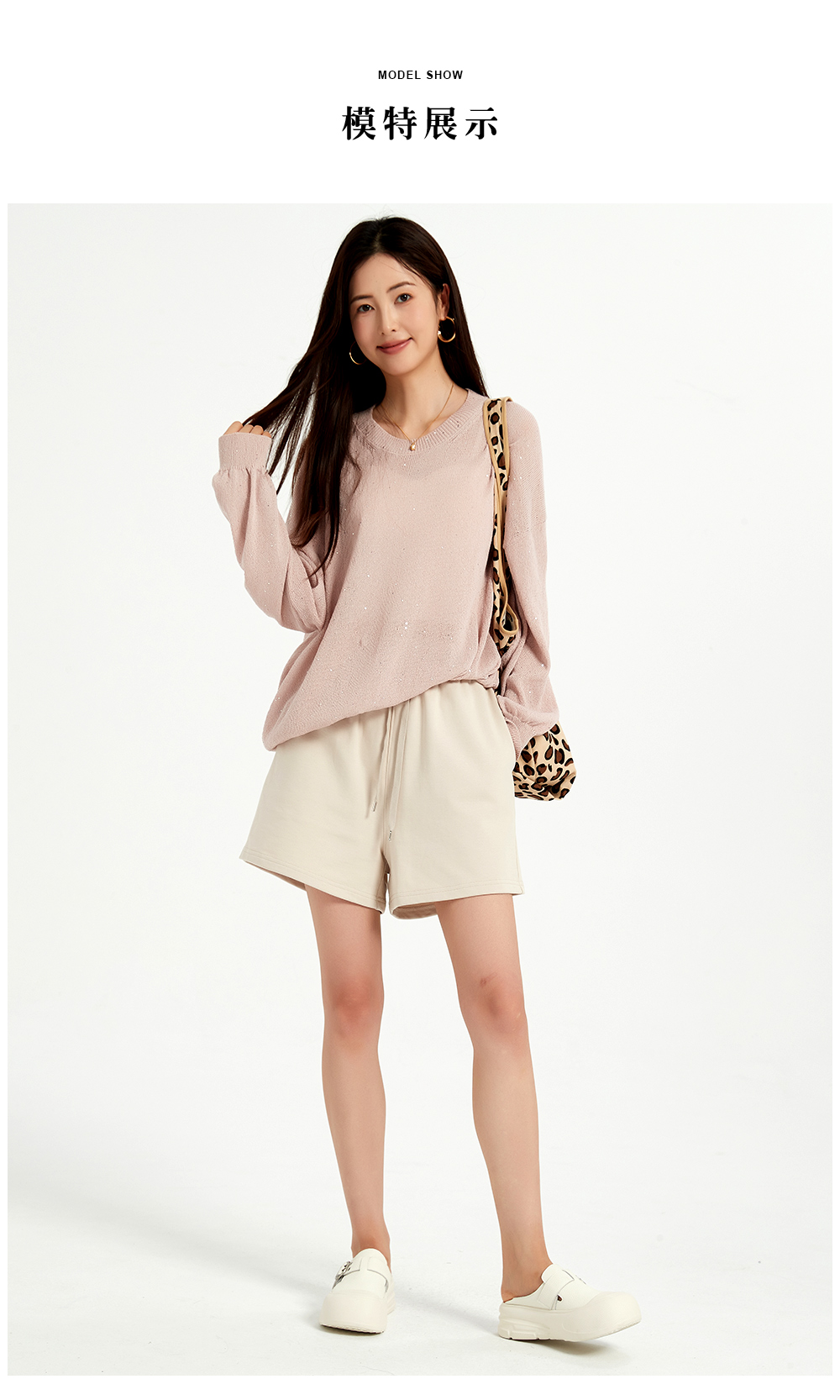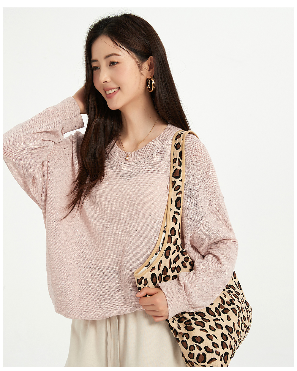 米加蜜慵懒感亮片落肩针织衫