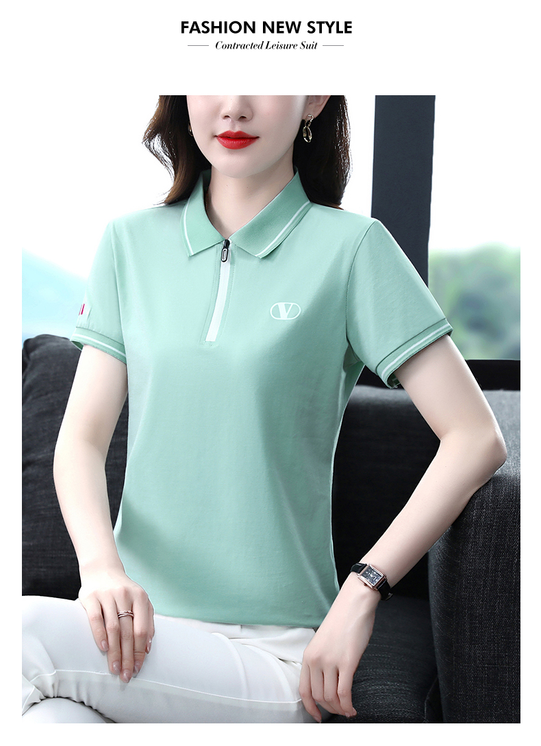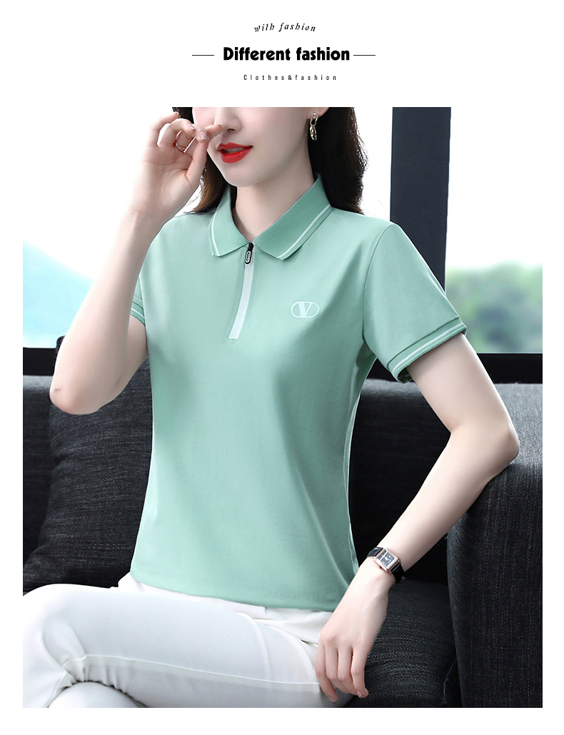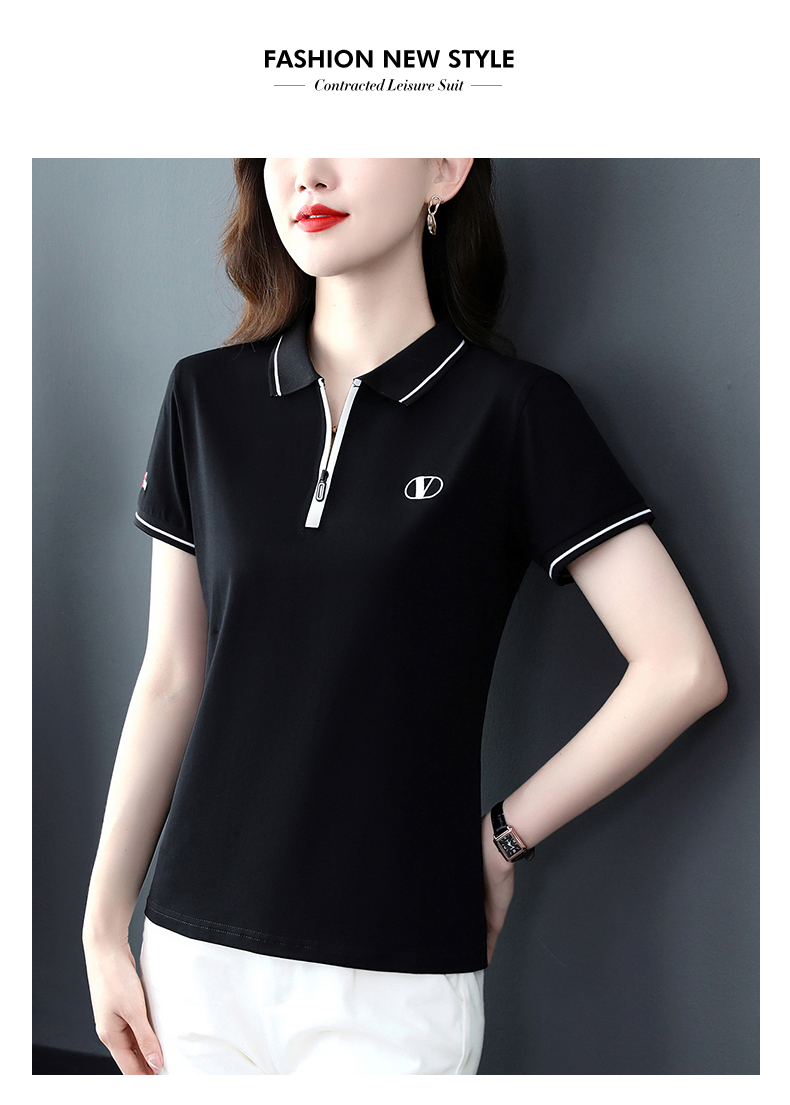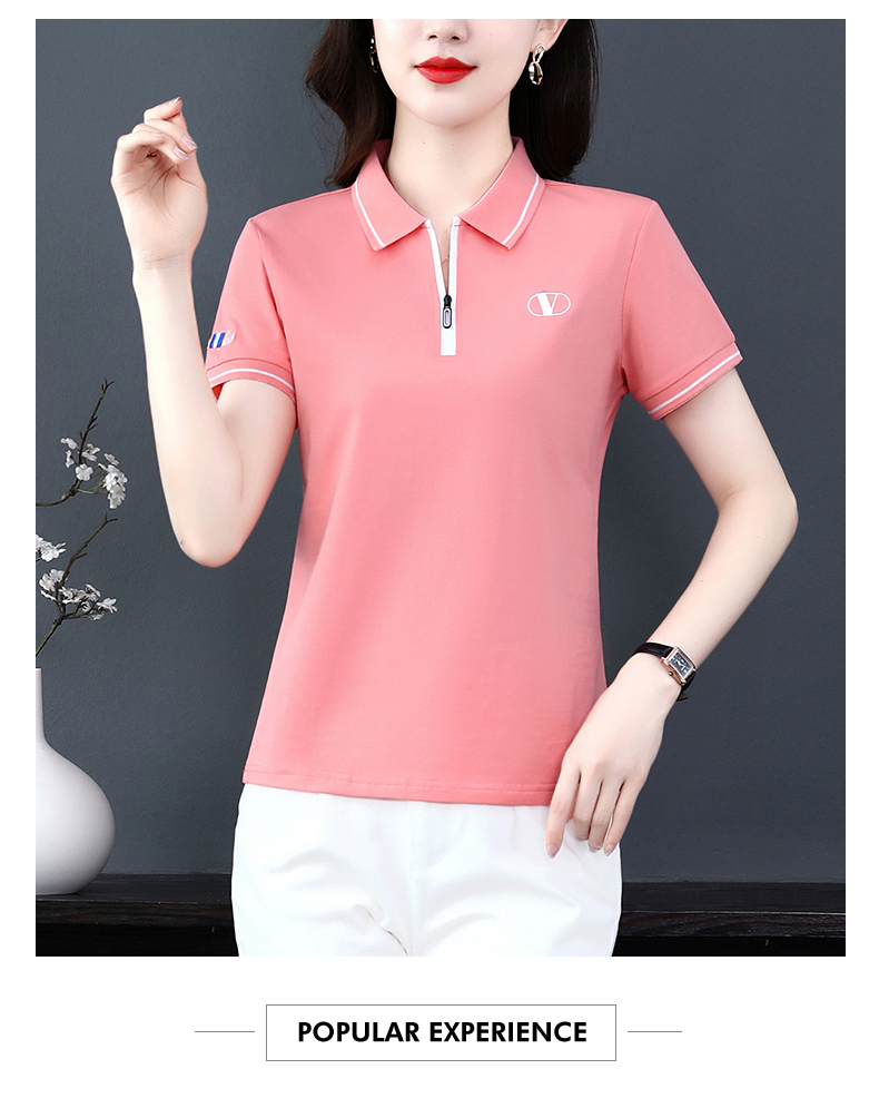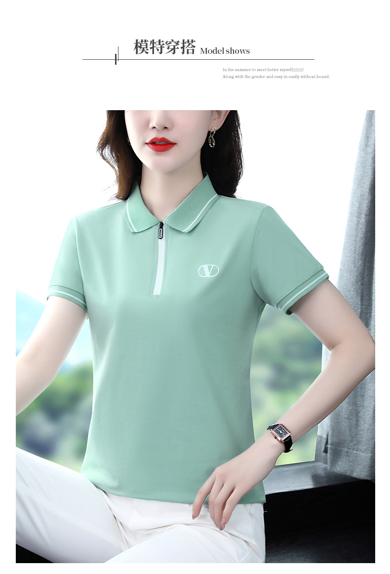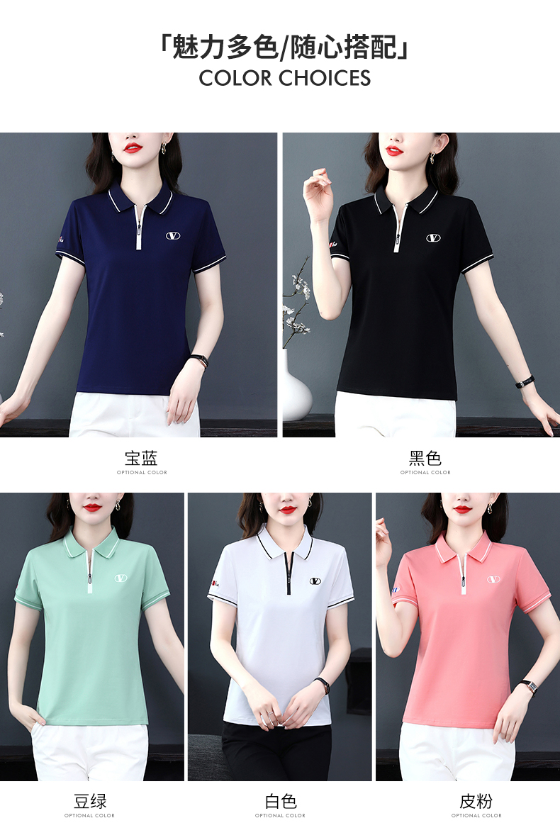 SP-106-908polo衫短袖t恤女休闲夏季衬衫2023新款带领显瘦中年妈妈翻领上衣