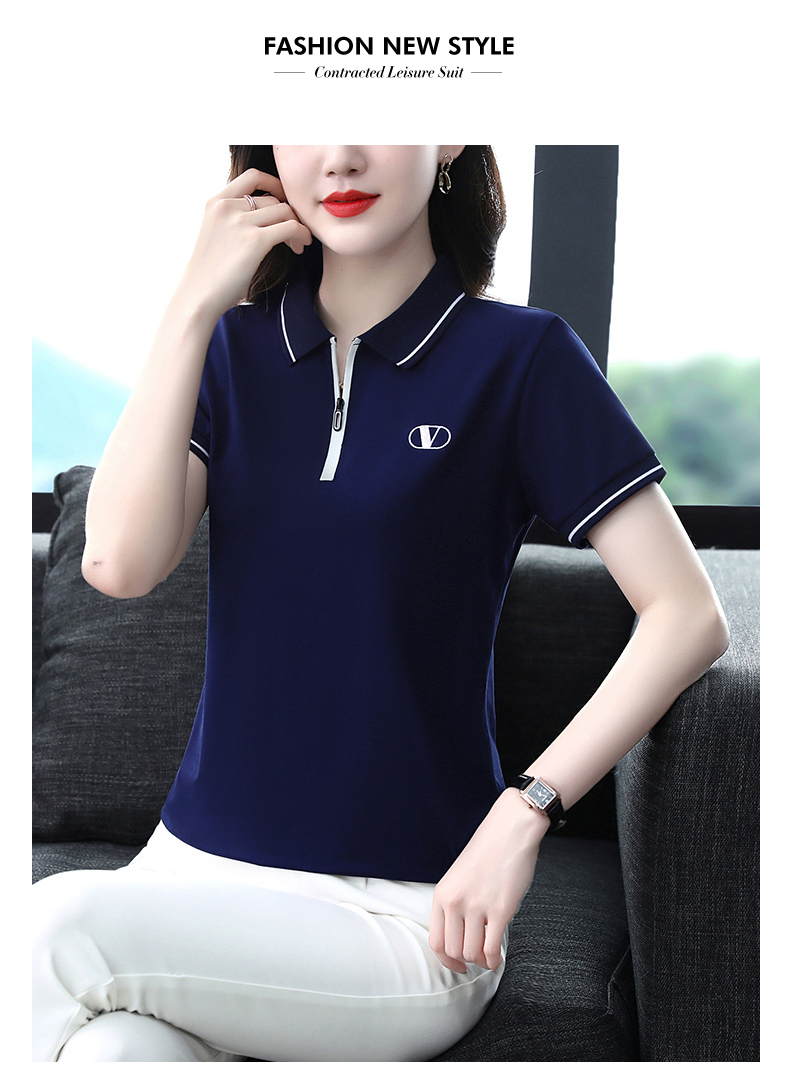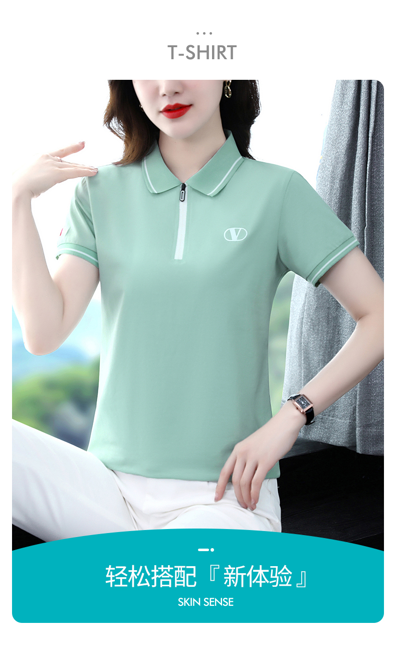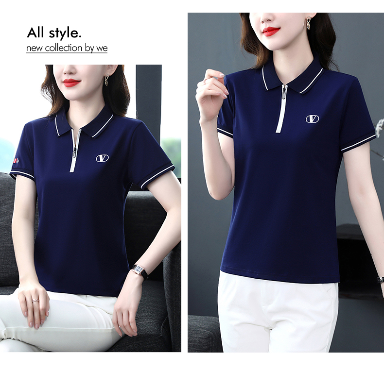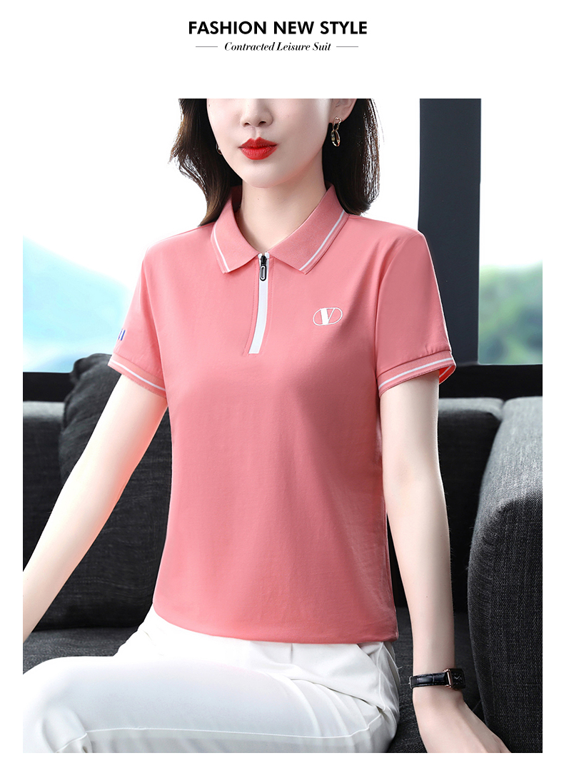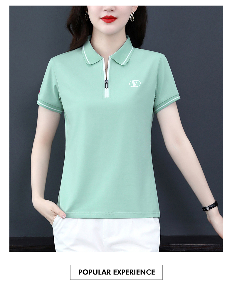 SP-106-908polo衫短袖t恤女休闲夏季衬衫2023新款带领显瘦中年妈妈翻领上衣
