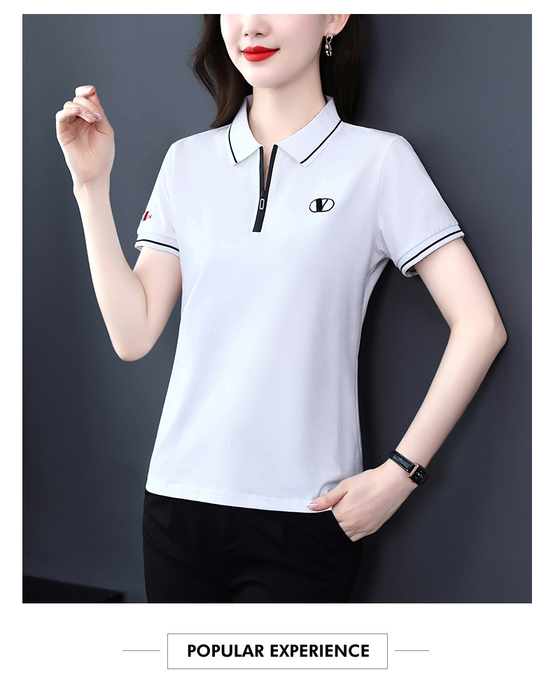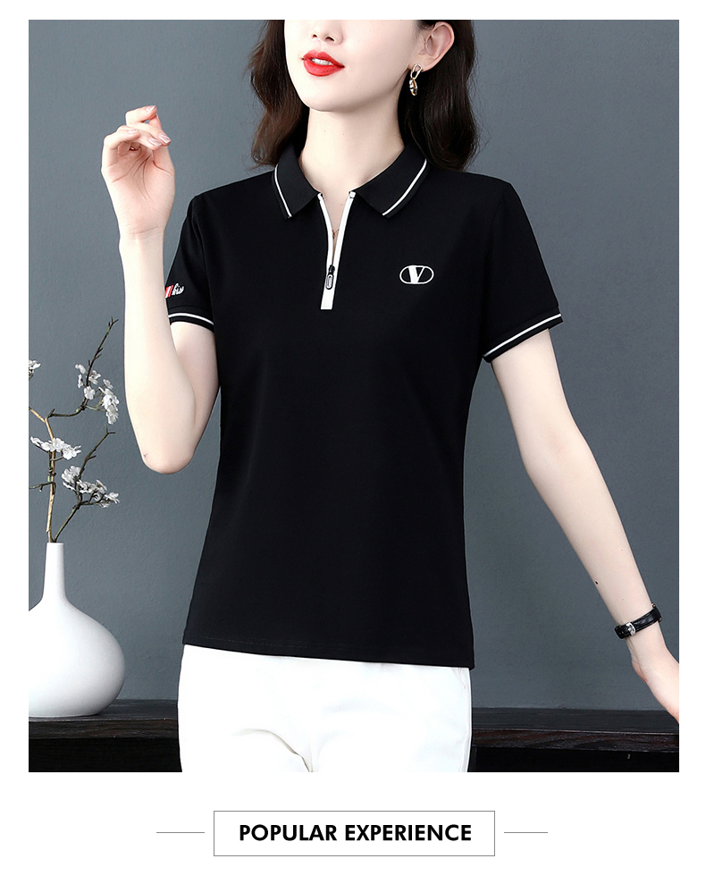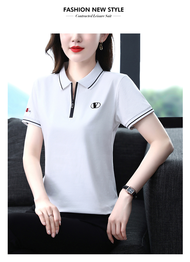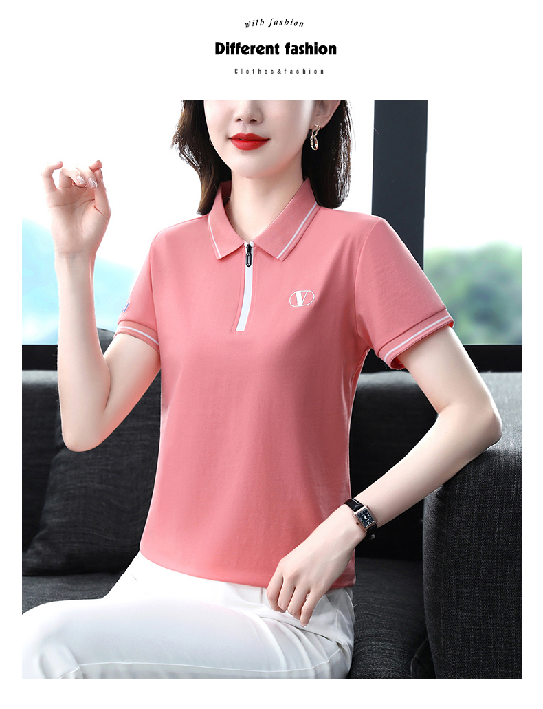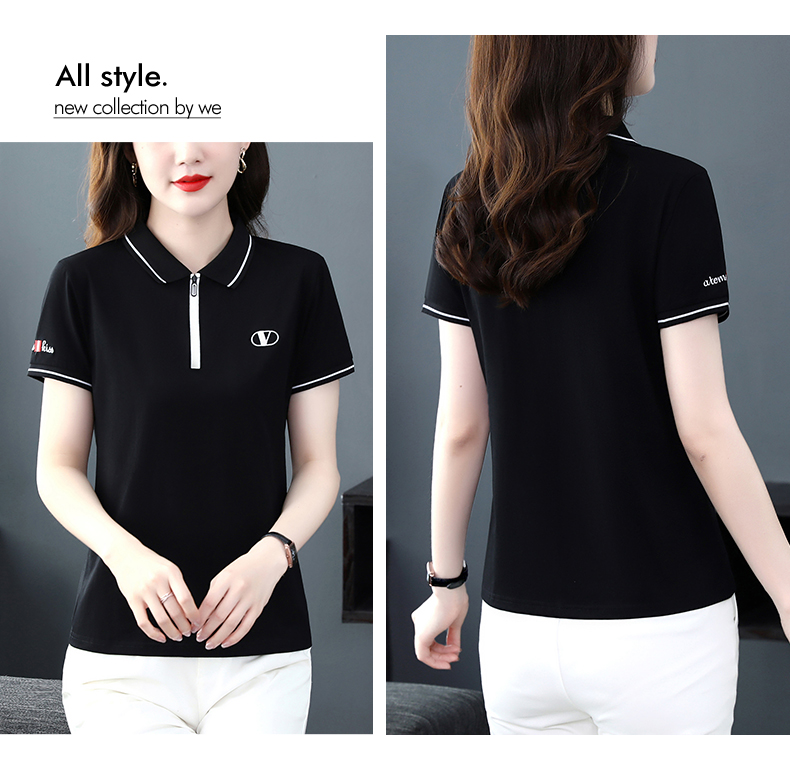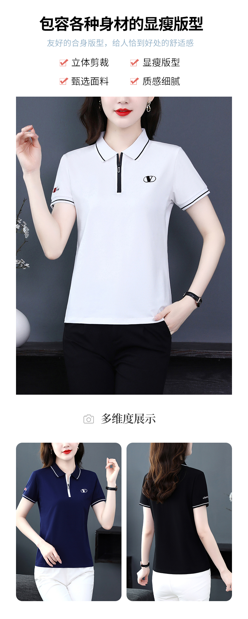 SP-106-908polo衫短袖t恤女休闲夏季衬衫2023新款带领显瘦中年妈妈翻领上衣