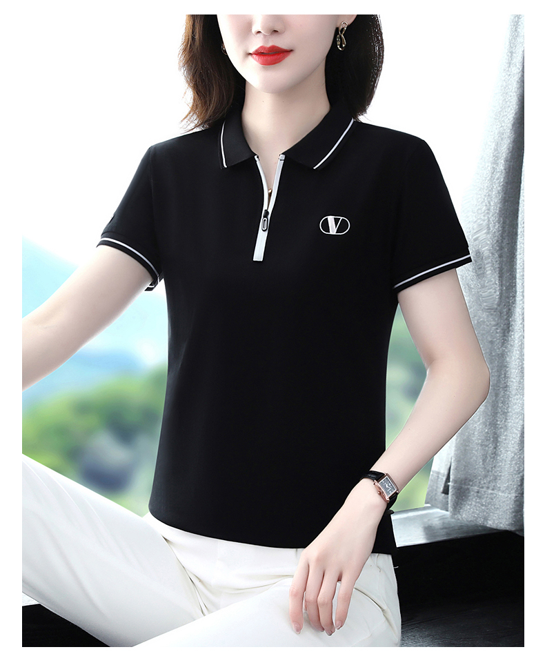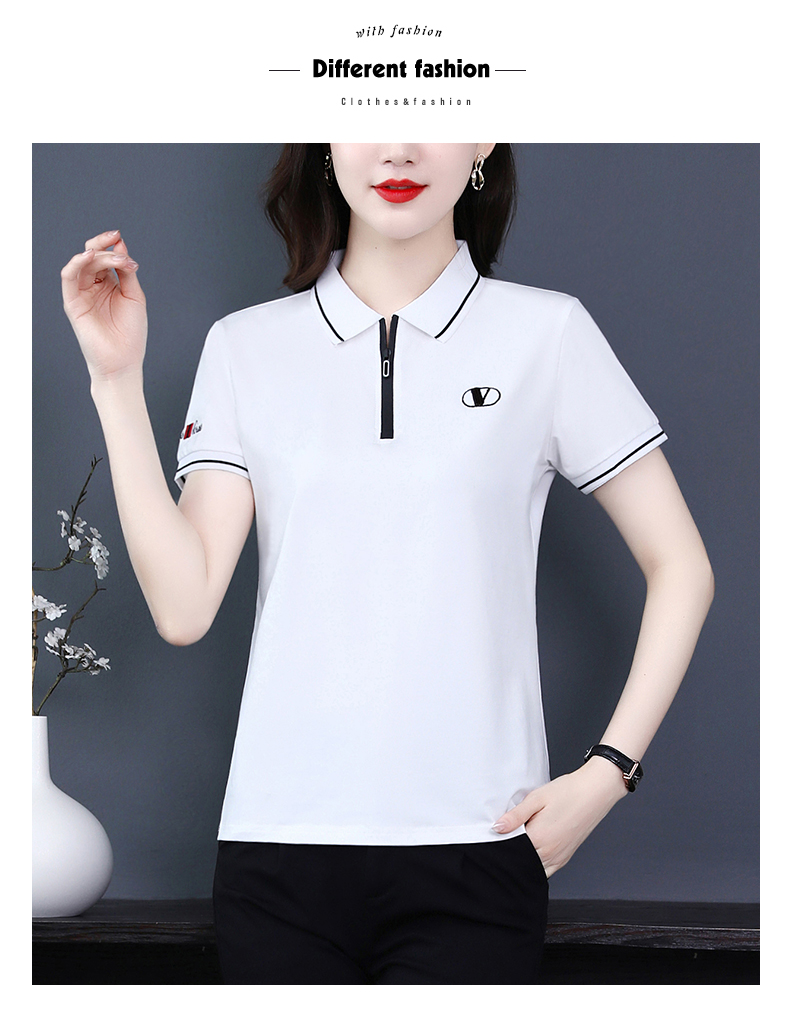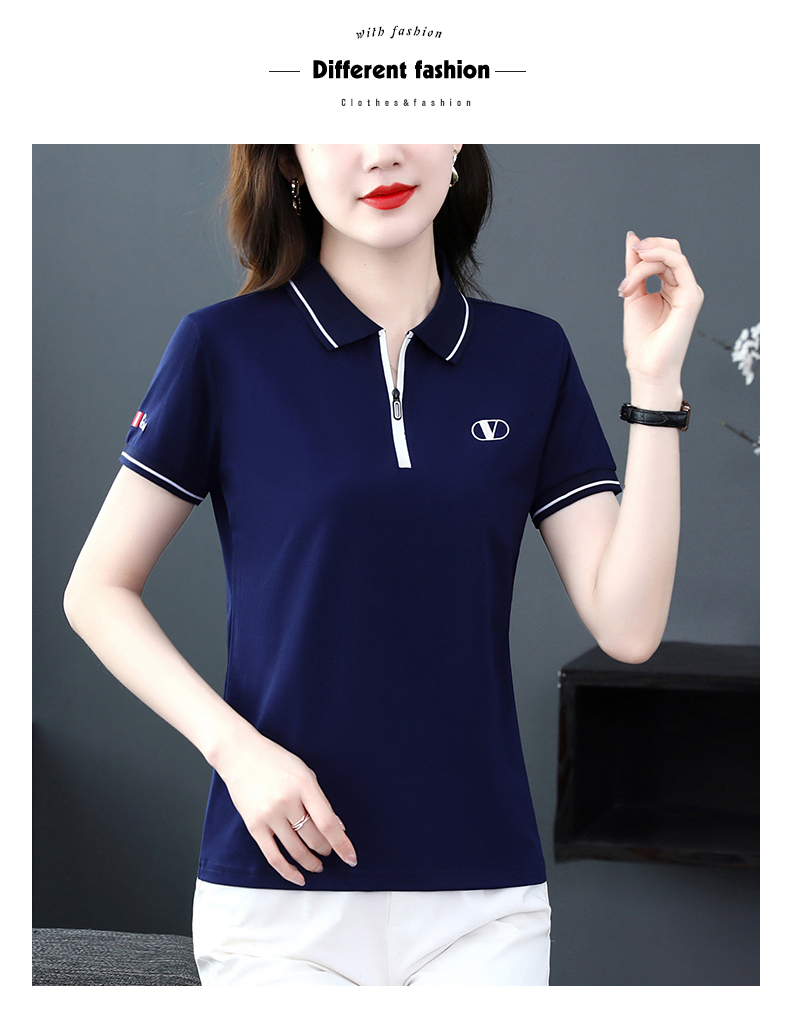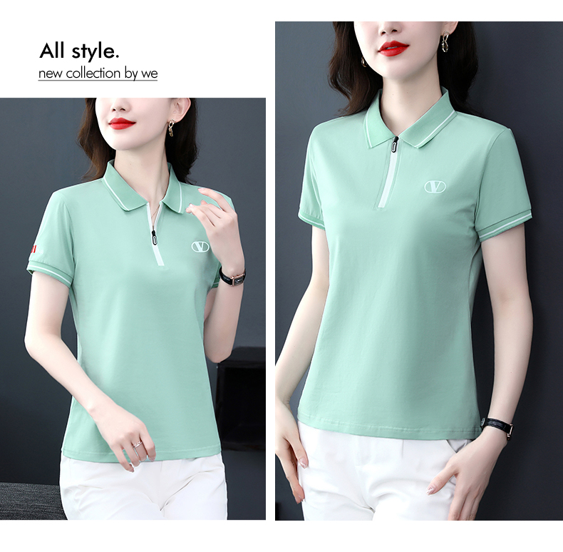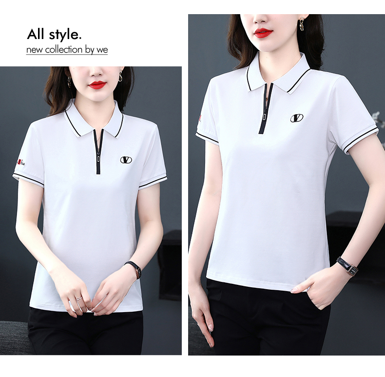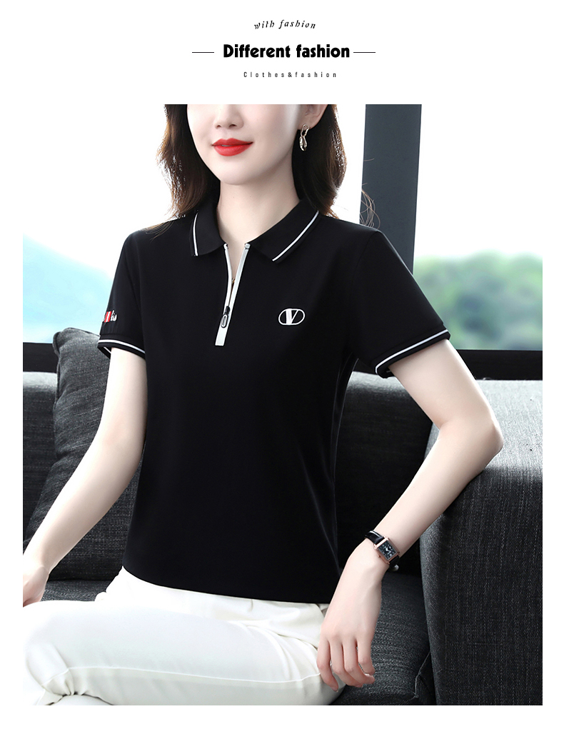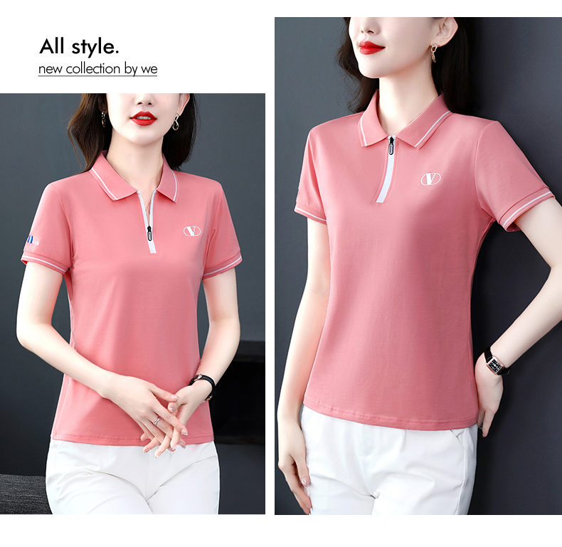 SP-106-908polo衫短袖t恤女休闲夏季衬衫2023新款带领显瘦中年妈妈翻领上衣