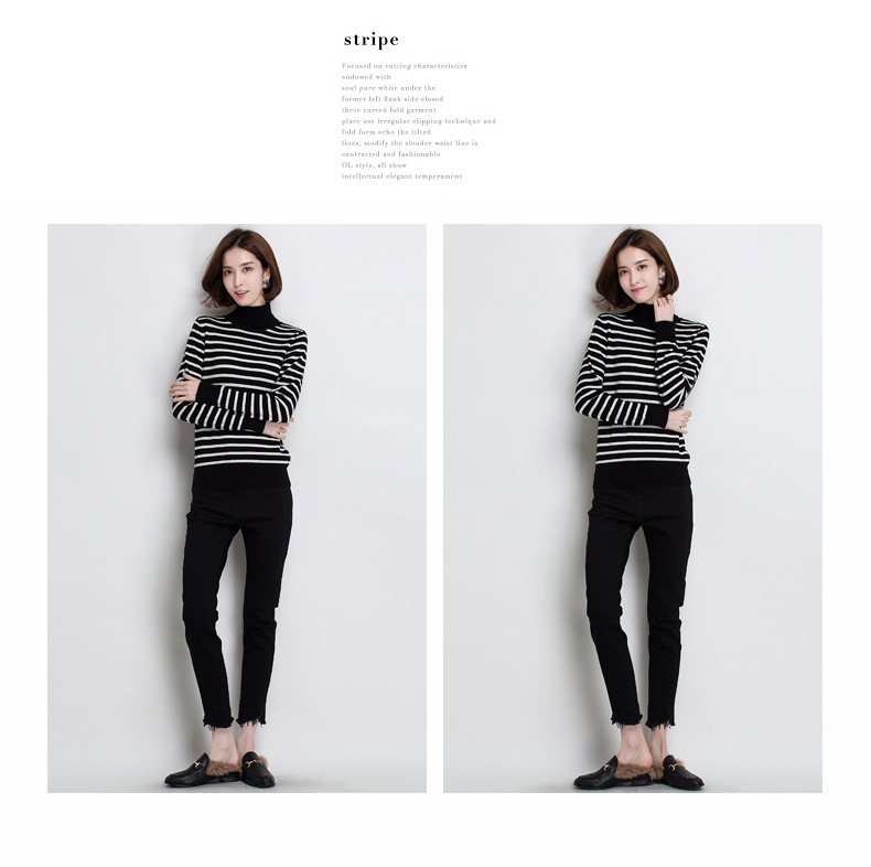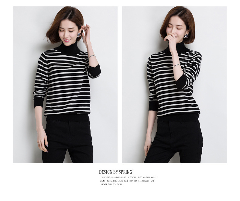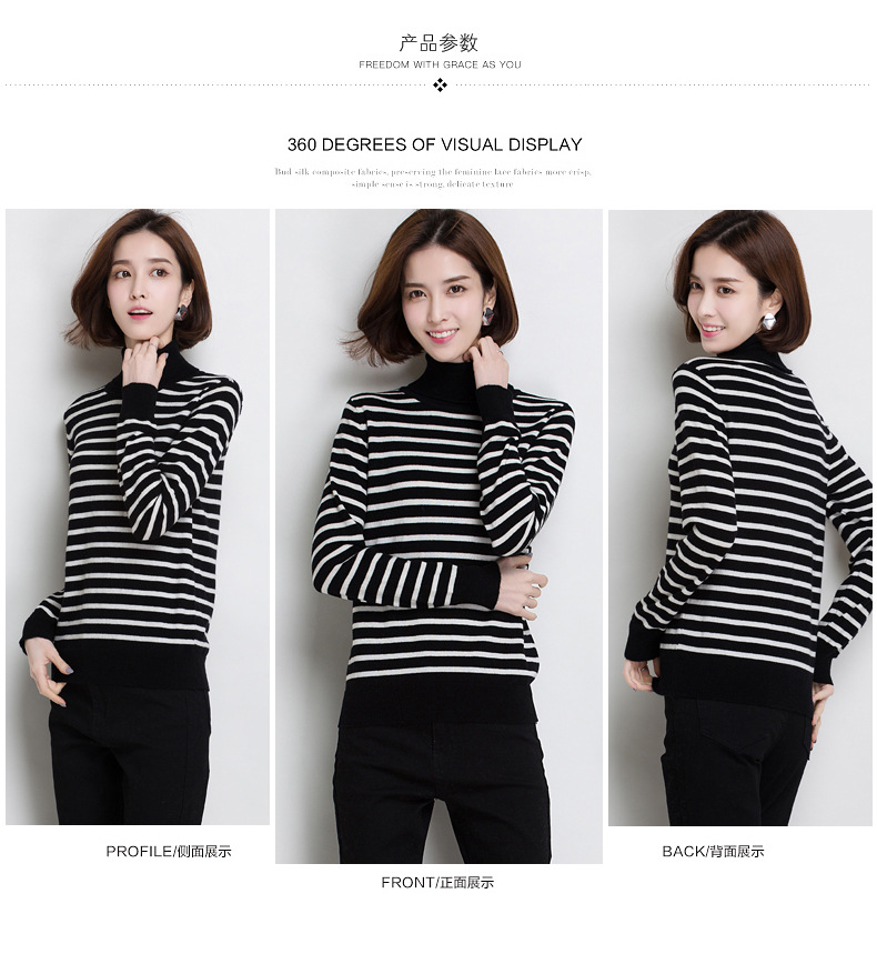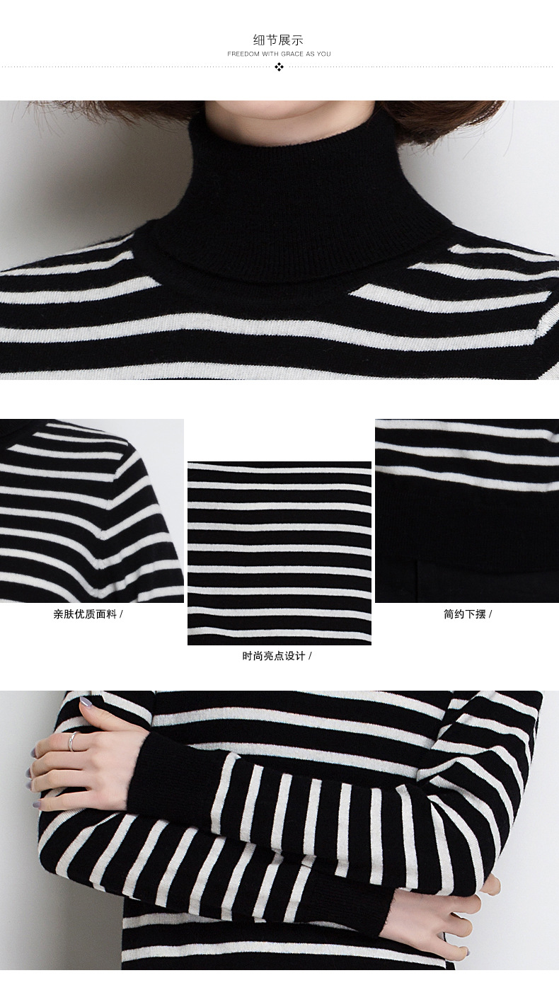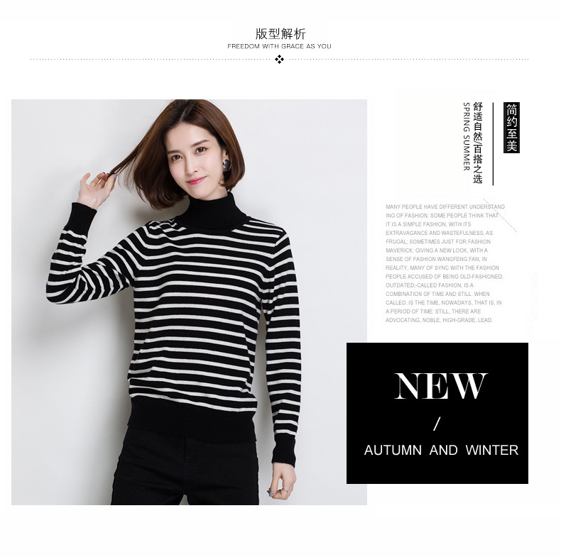 XDE-SX2818黑白条纹毛衣女高领短款韩版超细羊毛衫女2019新款秋冬修身打底衫
