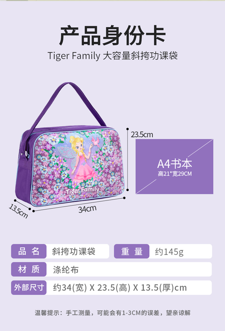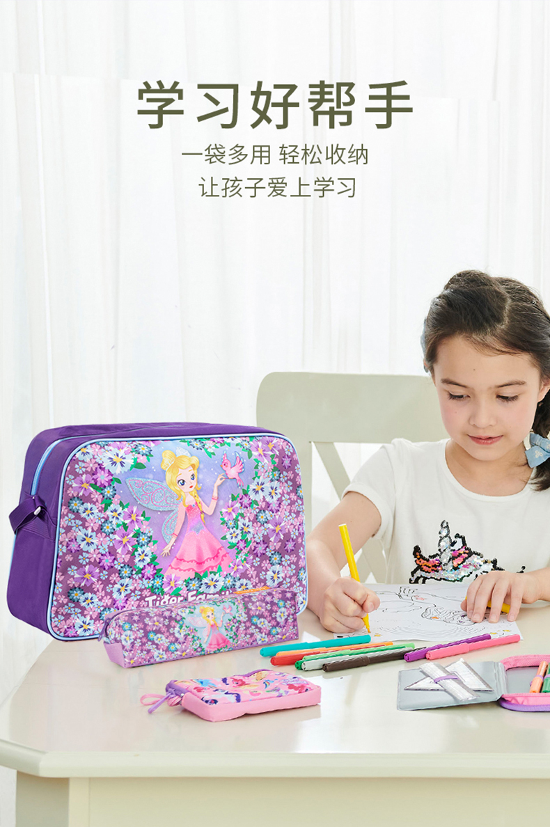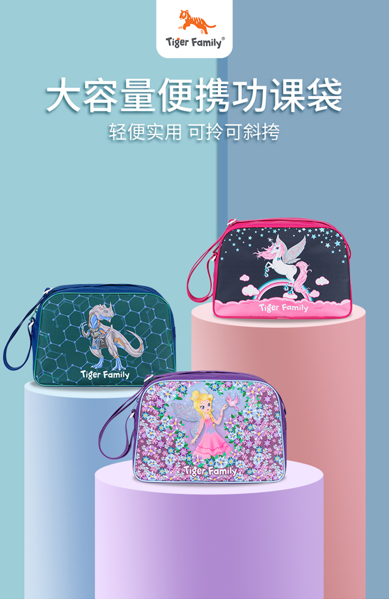 tigerfamily虎米 斜挎补习袋小学生功课袋男女孩儿童包包大容量美术包斜挎单肩包